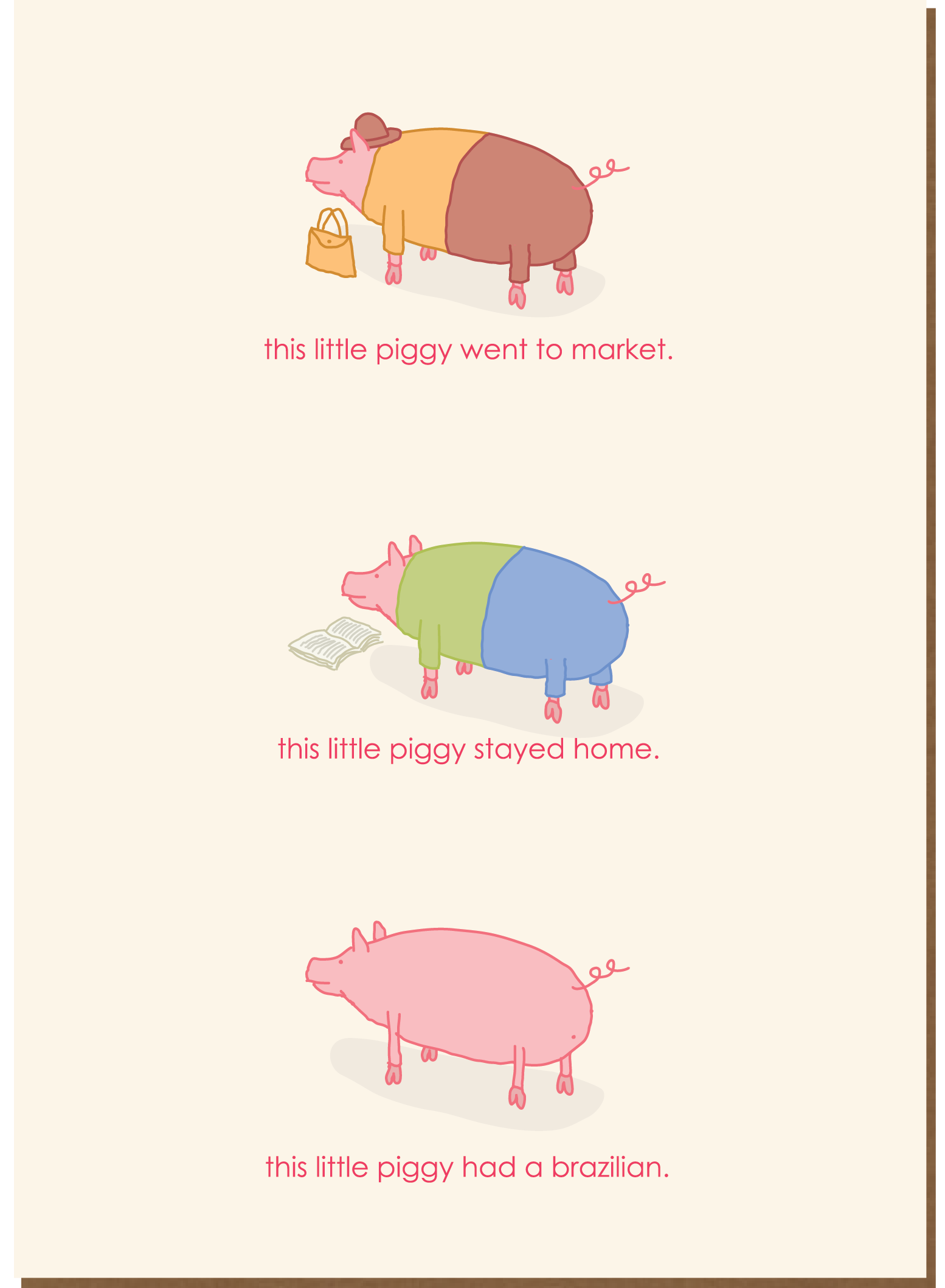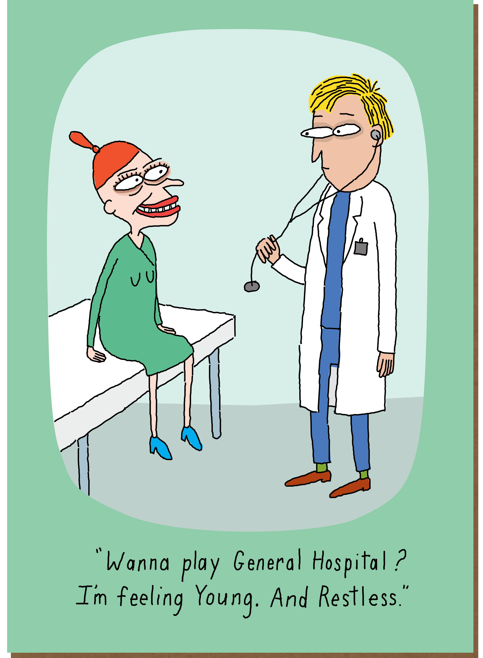 All cards are 5x7" and are priced at $4.95. Welcome to Clayboys. Makers of smart, dirty, dry, witty, over-the-top, deadpan, wicked, campy, irreverent, funny cards. Probably the thing about Clayboys cards that separates them from other cards is our 'three part narrative’. The artwork and the concept is carried through the entire card; the front, the verse and the back. You haven’t finished a card until you’ve looked at all three. Stores that carry Clayboys cards often say that they like having them because it’s so great to hear people laughing out loud. Take a look around, if we can get you to smile, make a wtf face, or even better, laugh out loud, then we are doing our job. Cards are printed in the USA on recycled paper. Cards and envelopes can be recycled.