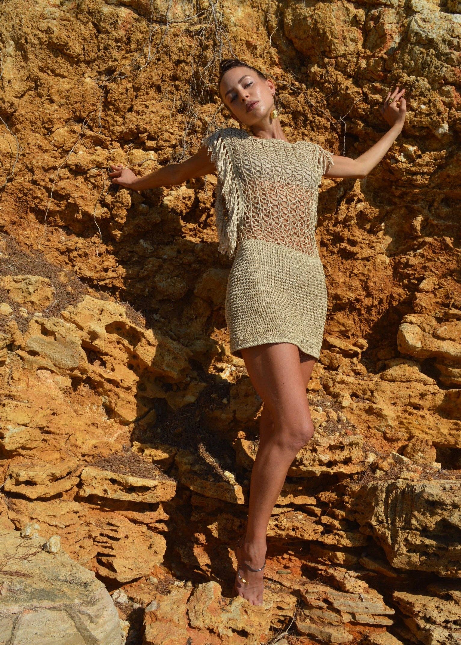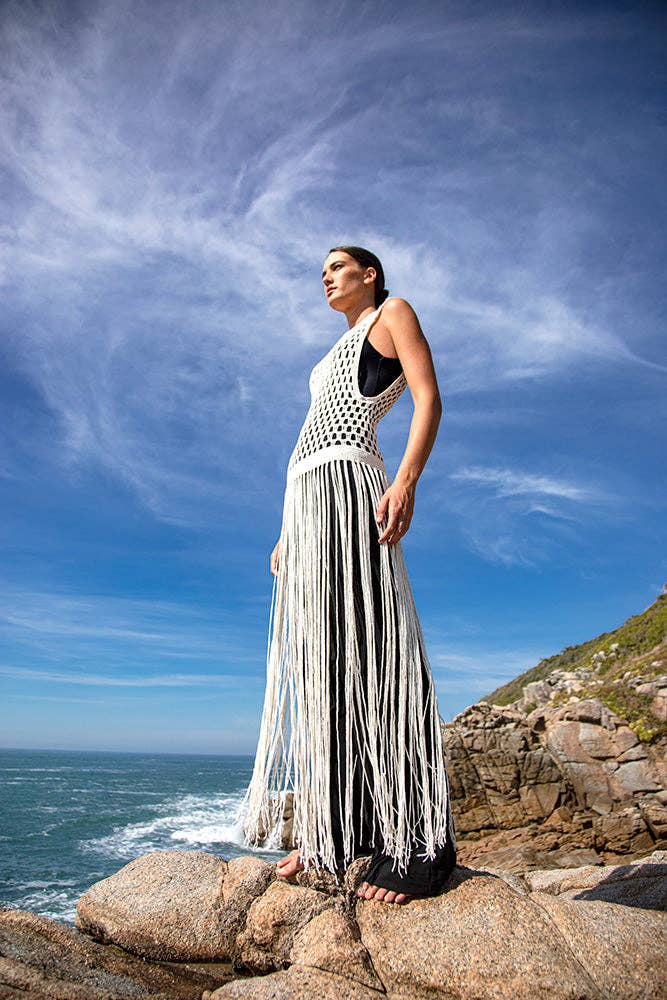 Leafy Natural Couture is a sustainable luxury brand dedicated to creating timeless yet original, modern, and conceptual handmade garments bringing together the ancient art of crochet and Silvia Vassão's contemporary design. Inspired by her gypset lifestyle, Silvia designs destination wear for hip and sophisticated women who value quality, sustainability and uniqueness. We create fashion made to last, versatile pieces that transition from day to night and from beach resorts to city. Leafy's Collections feature handmade crochet pieces carefully handcrafted from hand-spun silk yarn dyed with organic pigments (such as mate herb, eucalyptus fiber, coffee and urucum). Our dresses, kaftans, tops and swimwear are produced by women artisans living in small fishing villages in Southern Brazil. Since 2008 we have been fostering their economic independence while keeping alive traditional hand-weaving techniques. Leafy is 100% anti-industrialization. Other than exceptional artistry, it takes only two elements to make our clothes: a needle and the purest yarn.
