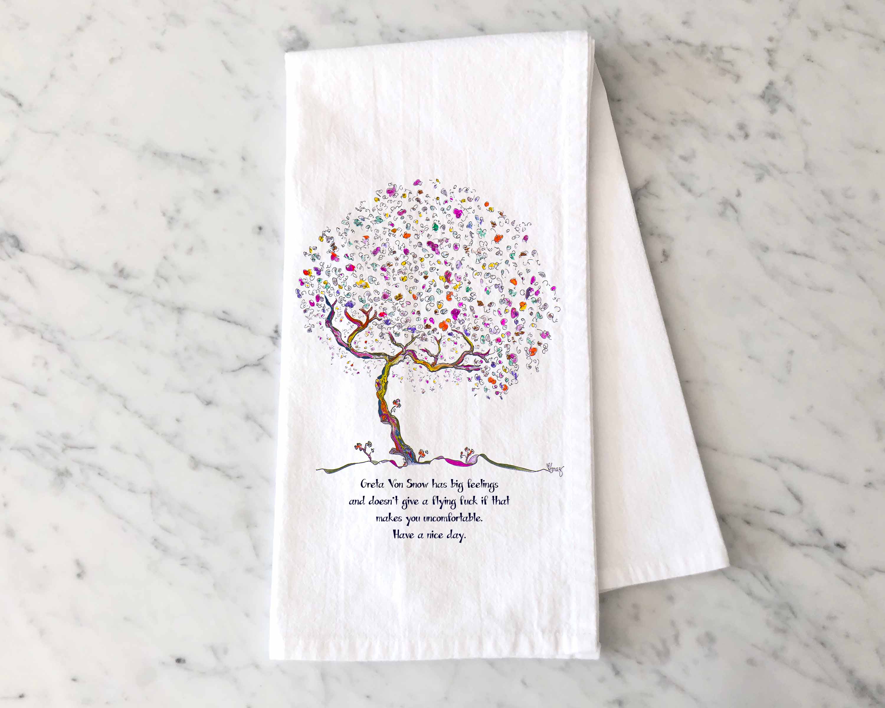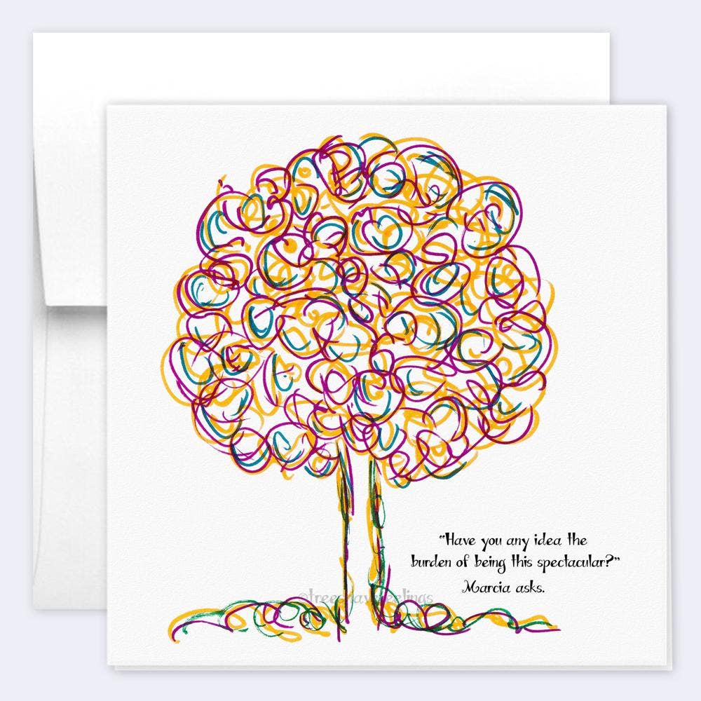 Trees Have Feelings is a magical forest of whimsical hand-drawn STORY TREES, and songbirds. Tracy Mazuer is a Bellingham, WA artist and uses an assortment of pen, ink, charcoal and water color to create each tree and songbird. In what she describes as a "magical process," their form, colors, name, and personal story emerge as the tree does, giving each of my trees a unique story and name, much like we all have. Until 2019 I did not know, or believe, that I could draw. For 30 years I had been a television producer, writer and director. My last show, in 2019, was in Phoenix and the work environment was incredibly toxic and dark. To not lose my mind I began doodling on my desk calendar and out of the chaos of the doodle trees emerged. Soon after, my husband closed his business, I left television and we literally followed the trees to Bellingham, WA. We landed the week that Covid shut everything down and didn't know a soul. We spent the time building our website and online store and finally began taking my art to local markets the last week of July 2021. What I have found the most rewarding is the connection that my art has made with people that come into the booth. We have had laughter, tears and the most magical moments.