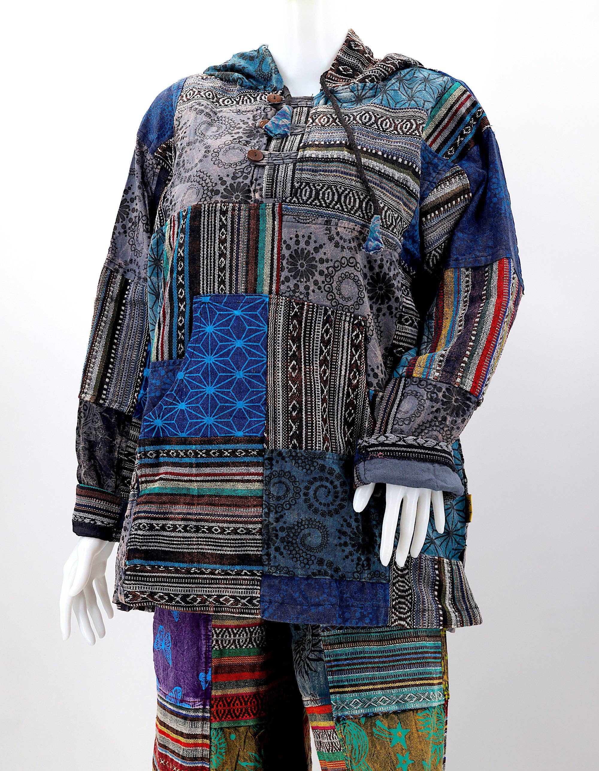 At Himalaya Handmade LLC, we have over 24 years of developing our exclusive designs, carvings, and fabrications – both for wholesale and retail purposes. Since 2001, we have been supplying our soft and warm clothing and beautiful handicraft items to satisfied customers all over the world. We are renowned all over the world for creating contemporary clothing that beautifully encapsulates Nepalese traditions and art, while incorporating Western influences and trends. Our products come in a diverse array of designs and colors. They feature multicolored Aztec patterns and are made from eco-friendly, natural handwoven cotton fabric, lovingly handcrafted in Nepal. Every handmade product item is meticulously handmade, reflecting the care and consideration put into their creation, resulting in unmatched quality. Because our products are handmade, the patchwork colors and patterns on each pair of trousers may vary, making each one unique. The provided image serves as a general representation of the product's appearance.