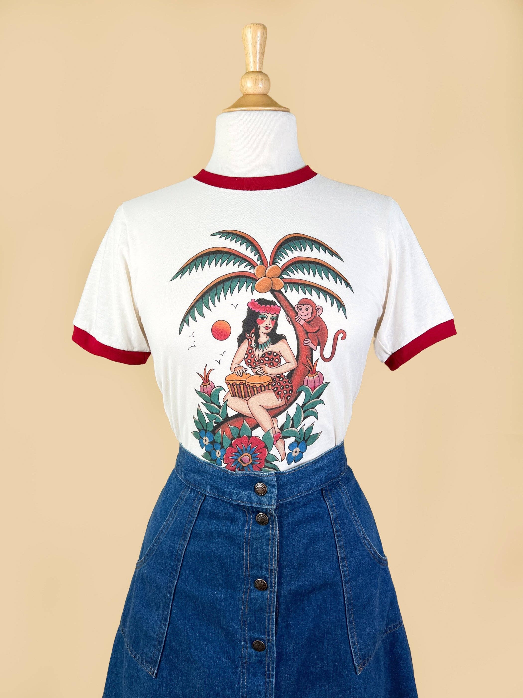![[UNISEX] Bongo Baby Ringer Tee in Natural/Pio Red for wholesale by Mischief Made](https://cdn.faire.com/fastly/2ff369eac493cd6e07cf997d69e8fb68238bfc11b442fa00d51bc44324a0fbc8.jpeg?bg-color=FFFFFF&dpr=1&fit=crop&format=jpg&height=960&precrop=1780,2373,x157,y291,safe&width=720)