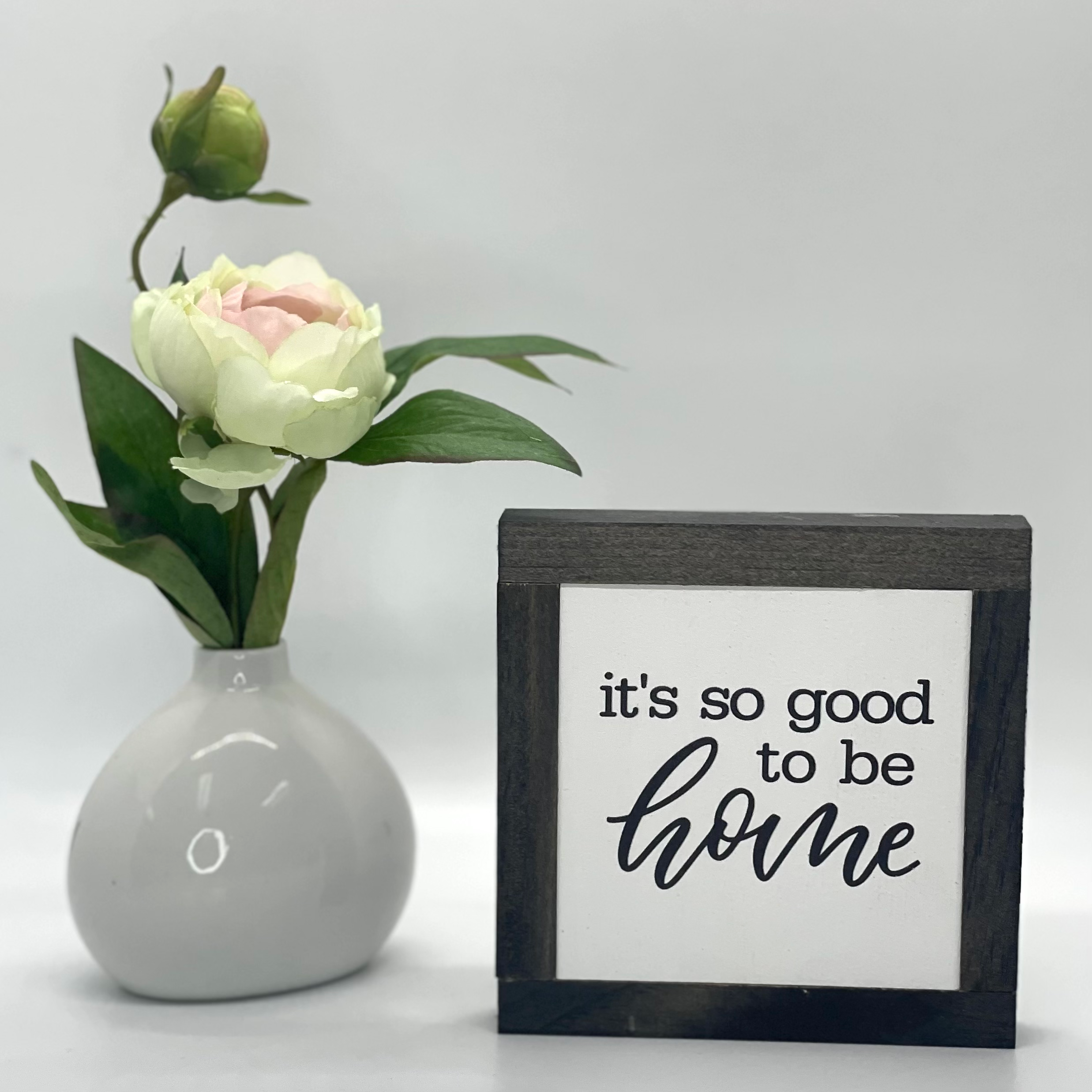 BOG ROAD DESIGNS items are entirely made in our Brick & Mortar located Downtown Concord, New Hampshire. The frame and background are handcrafted with local lumber, sanded and stained to specification. Phrases are printed directly onto the painted white background for a long lasting piece. What once started in our home on Bog Road has grown into a beautiful story. We hope to be apart of your story by offering several phrases and will remain made in the USA. We firmly believe that you are the author of your living space, it should tell your story. We offer the perfect size for decorating a tiered tray, freestanding on a shelf or added to a gift basket. They make the perfect gifts for friends and family. Enjoy! - BRD Family