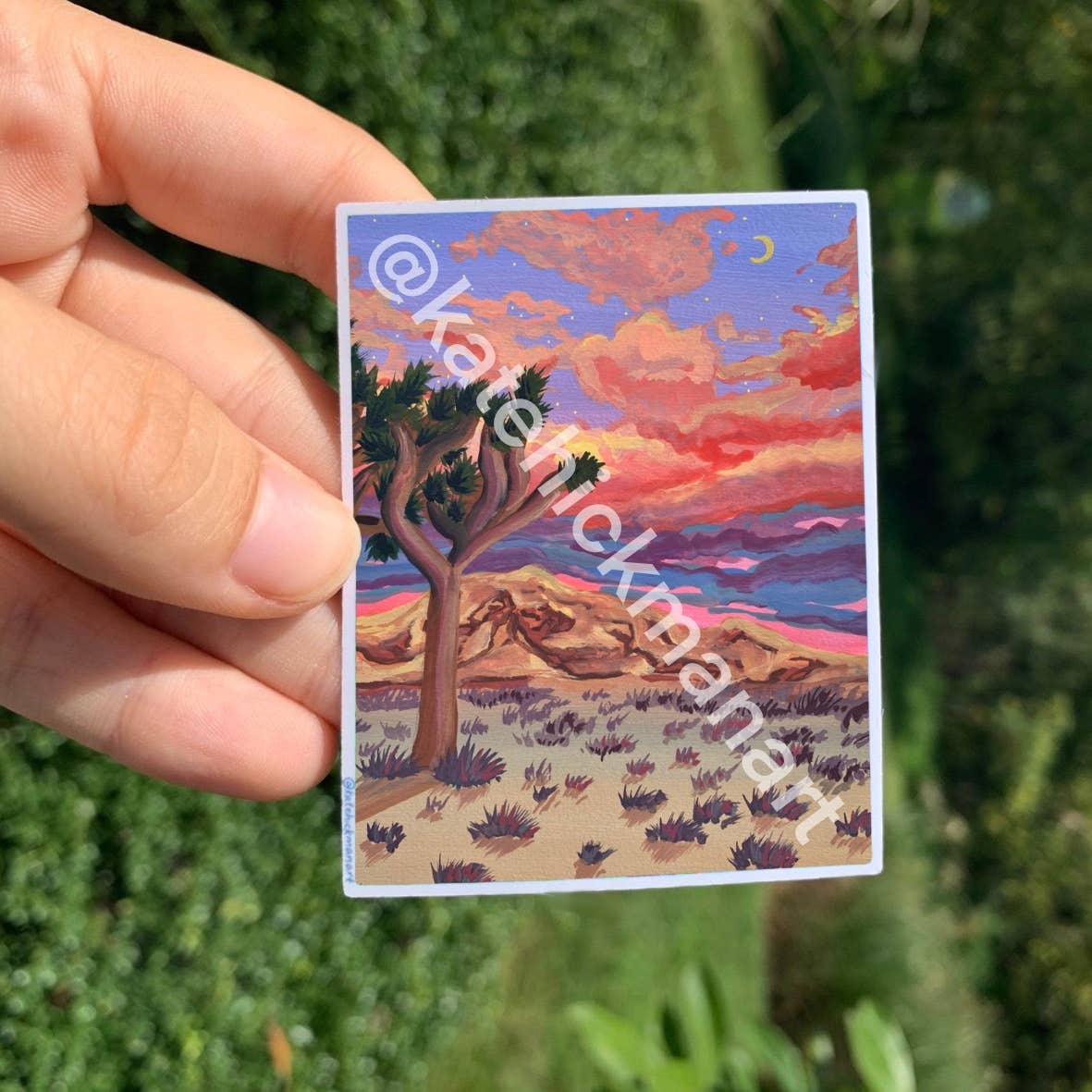 Kate is a vibrant landscape artist that brings the joy of every color of the rainbow into people's homes. Her art aims to show the beauty of the natural world and share it with others. In 2021 she moved across the country to chase her dreams as a small business owner, and encourages and empowers other artists to do the same. Some of the products she offers include: acrylic keychains, pins, notepads, journals, prints, stickers, and tote bags.