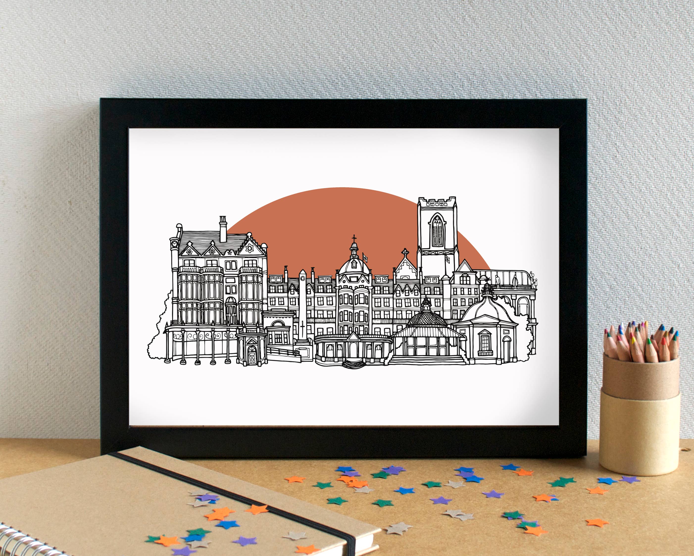 I'm an illustrator based in Liverpool, UK. I create greetings cards, art prints and giftwrap adorned with my illustrations. I have two main ranges: Alphabets, which are a series of themed alphabet illustrations featuring different food types or hobbies. Skylines - an ever-expanding series of black and white line-drawn illustrations of cities and towns - predominantly UK locations, but also some international locations. I've drawn over 190 skylines to date - have I drawn your town or city yet? I also have a range of funny food-based greetings cards. I am passionate about minimising waste, and aim to be as plastic-free as possible. My cards are all supplied with a low-adhesive sticker to keep the card and envelope together; my prints are supplied in biodegradable cello bags, with recycled greyboard and sealed with a sticker. I reuse packaging materials as much as possible. All my products can be recycled or repurposed after use.