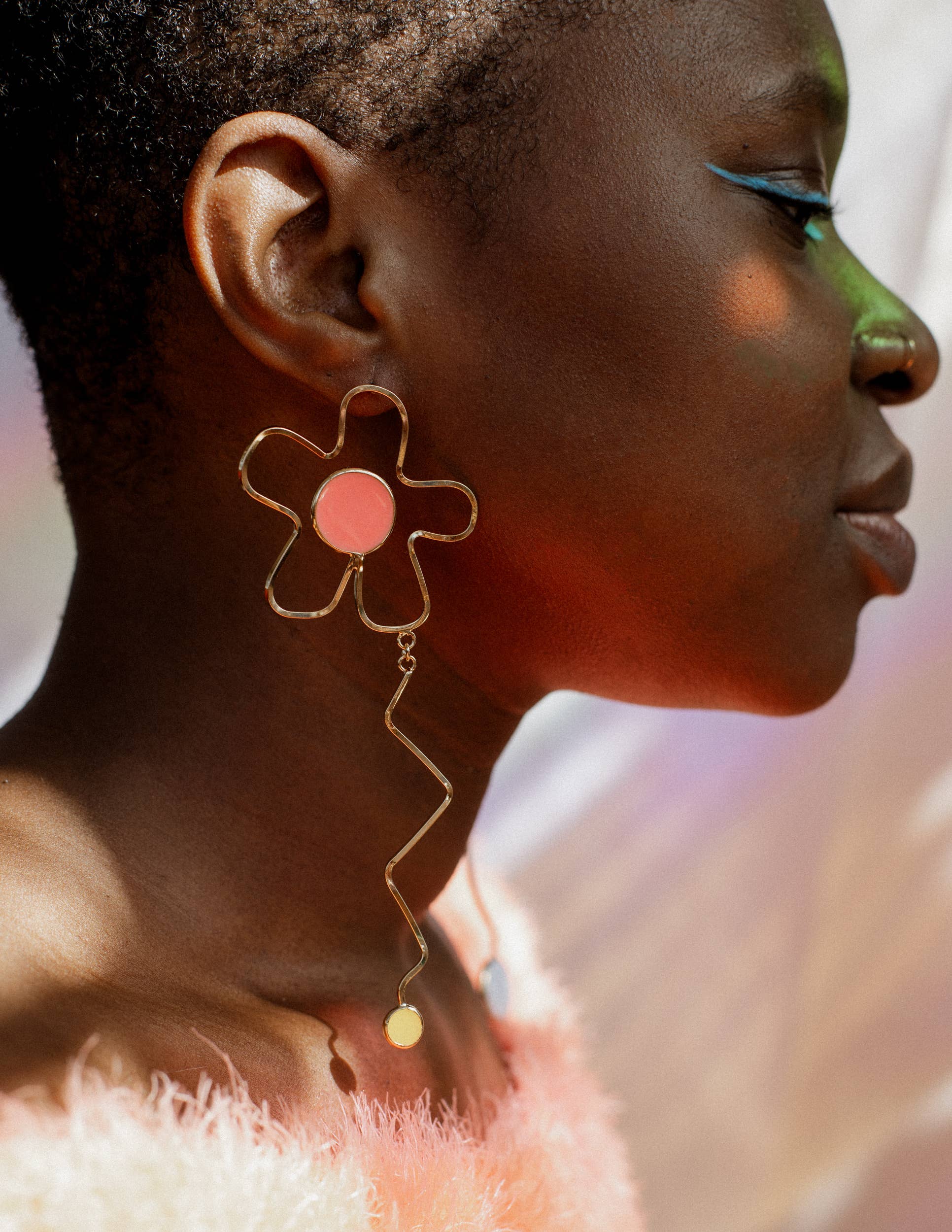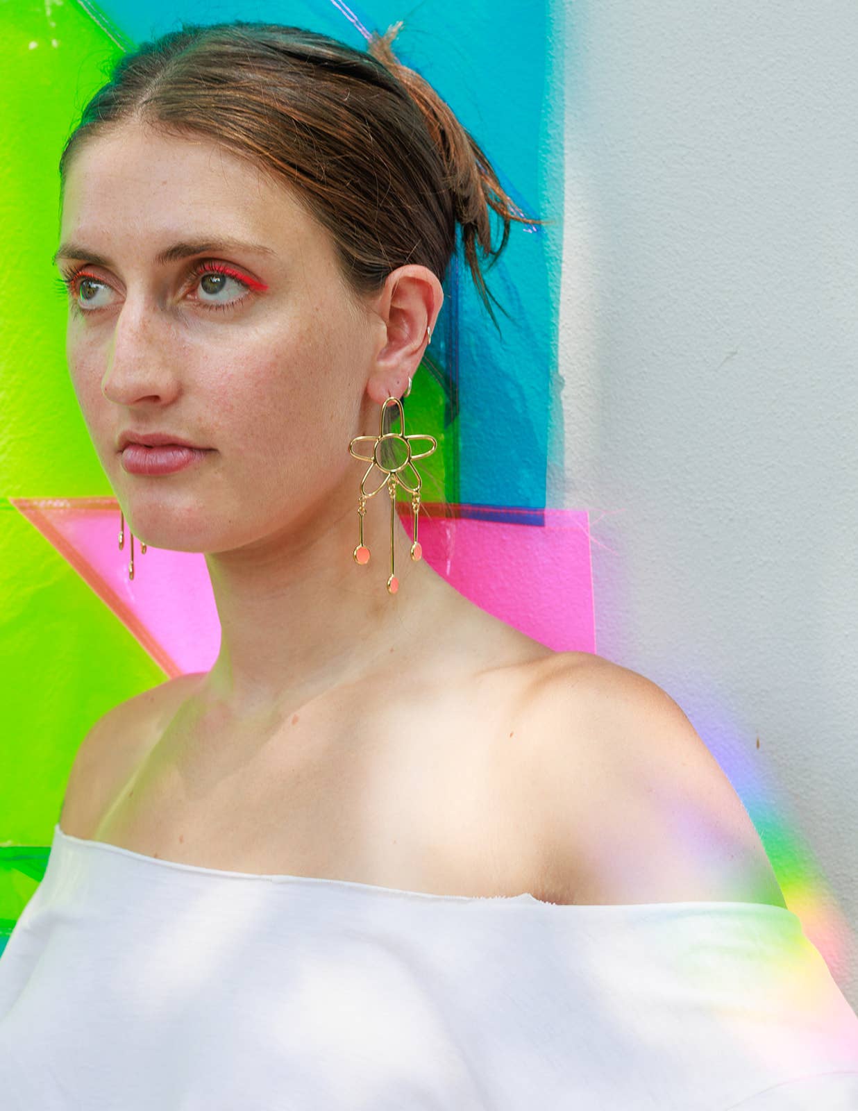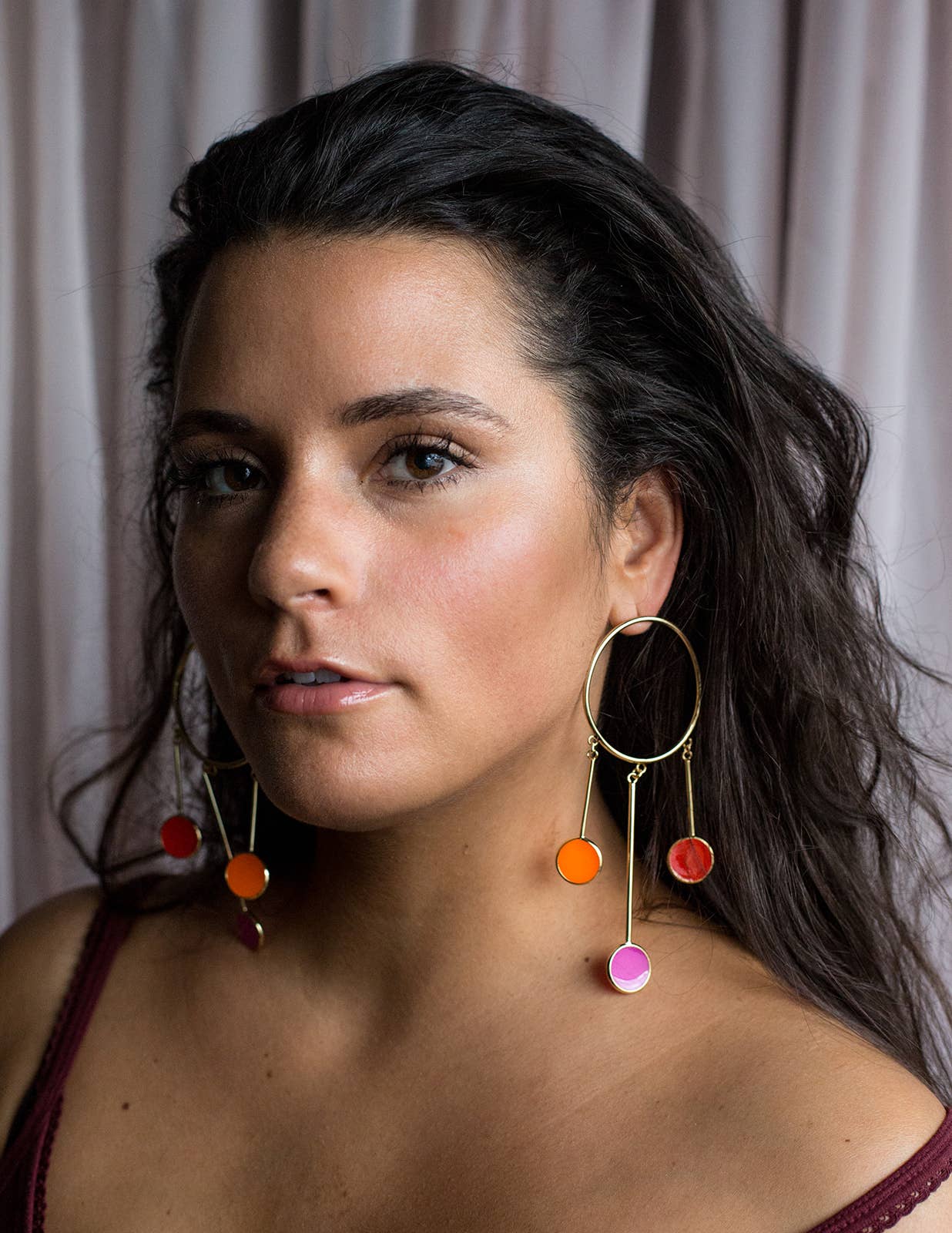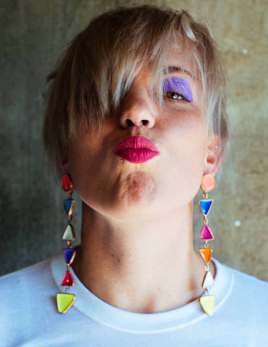 Sophia Sophia is a color-obsessed earring enthusiast who creates bold, handcrafted jewelry for anyone but wallflowers. Her statement pieces are known for their unapologetic use of vibrant color, playful proportions, and sculptural forms—wearable art meant to spark conversation. Each piece is treated as a true work of art. Sophia draws inspiration from a wide range of sources: her eclectic wardrobe of patterned garments, freshly sliced citrus, Memphis Design, 1950s modernist jewelry, summer memories, rainbow makers, CocoRosie, trolls, nail polish, homemade haircuts, mobiles, contemporary fashion design, Alice Neel paintings, Kraft mac and cheese, and above all—color. In a digital-first world, Sophia finds grounding in the analog: every piece is made by hand using traditional metalsmithing techniques that have been practiced for generations. Her work is constantly evolving and deeply personal—bold, eccentric, and unmistakably hers. While not made for everyone, each design reflects her creative spirit and vision—something she believes is essential to staying true as an artist. Sophia holds a BFA from Pratt Institute and an MFA from Rhode Island School of Design. She launched Studio Sophia Sophia in 2014, which is currently based in Binghamton, NY.