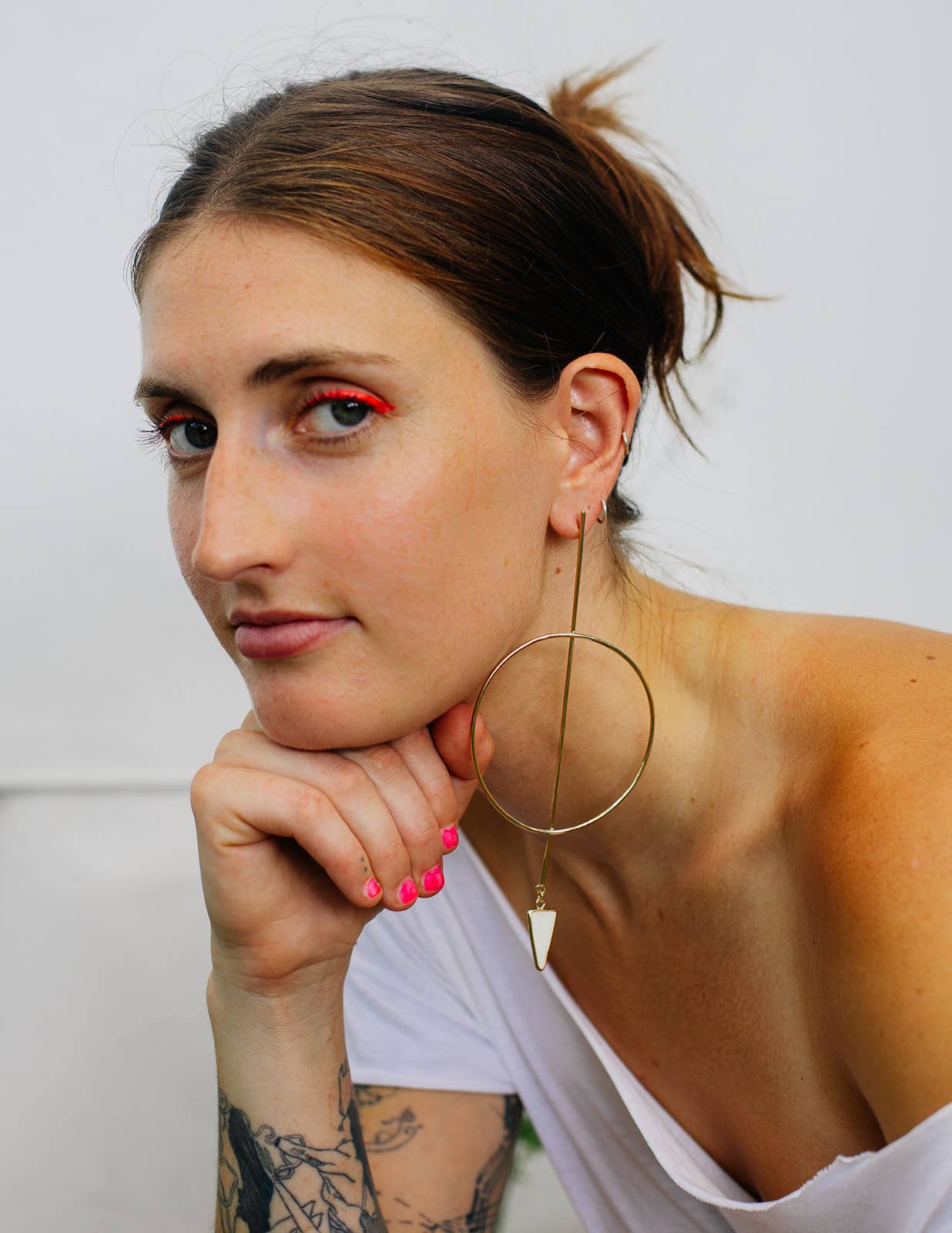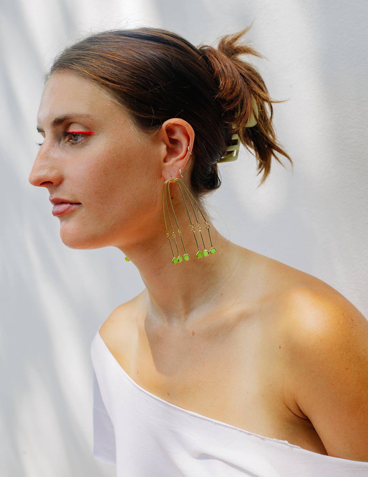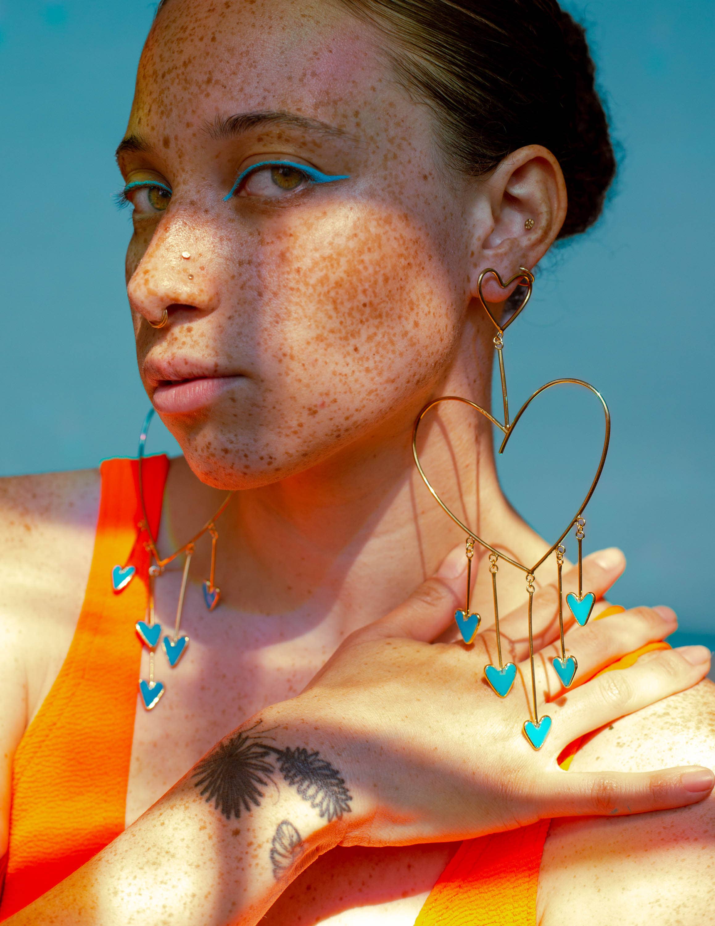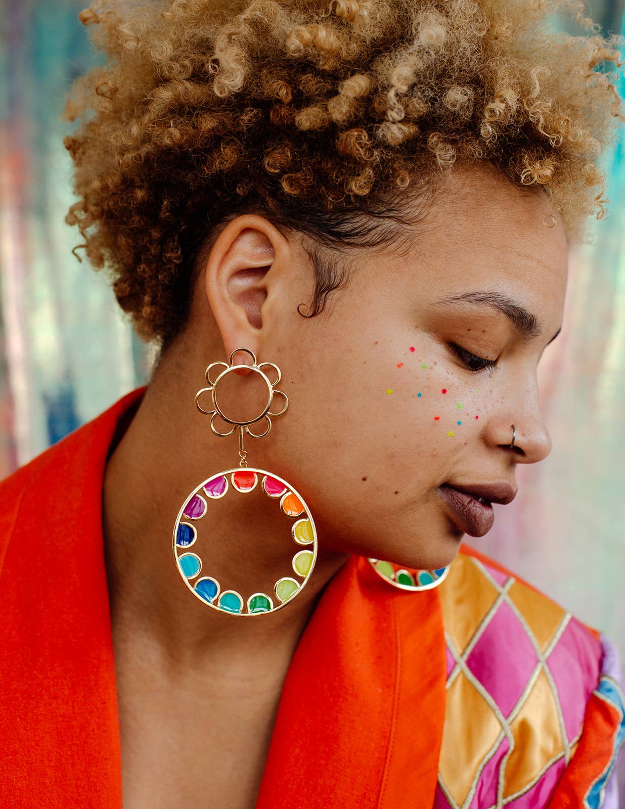 Sophia Sophia is a color-obsessed earring enthusiast who creates bold, handcrafted jewelry for anyone but wallflowers. Her statement pieces are known for their unapologetic use of vibrant color, playful proportions, and sculptural forms—wearable art meant to spark conversation. Each piece is treated as a true work of art. Sophia draws inspiration from a wide range of sources: her eclectic wardrobe of patterned garments, freshly sliced citrus, Memphis Design, 1950s modernist jewelry, summer memories, rainbow makers, CocoRosie, trolls, nail polish, homemade haircuts, mobiles, contemporary fashion design, Alice Neel paintings, Kraft mac and cheese, and above all—color. In a digital-first world, Sophia finds grounding in the analog: every piece is made by hand using traditional metalsmithing techniques that have been practiced for generations. Her work is constantly evolving and deeply personal—bold, eccentric, and unmistakably hers. While not made for everyone, each design reflects her creative spirit and vision—something she believes is essential to staying true as an artist. Sophia holds a BFA from Pratt Institute and an MFA from Rhode Island School of Design. She launched Studio Sophia Sophia in 2014, which is currently based in Binghamton, NY.
