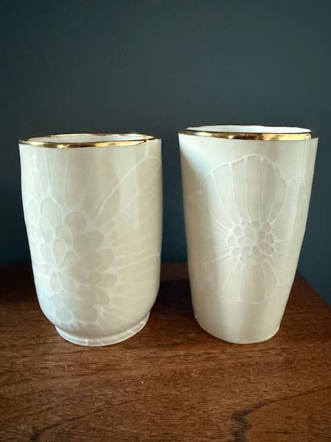 Nicole Hsieh creates timeless, handcrafted ceramics that carry a sense of quiet nostalgia and lived history. Influenced by a 1970s childhood surrounded by antiques, vintage textures, and heirloom forms, her work evokes the warmth and intimacy of objects passed through generations. Each piece is adorned with delicate, hand-drawn florals—Dahlias, Dogwoods, Roses—and softly kissed in 22-karat gold luster, adding a touch of opulence to everyday rituals. Made slowly and intentionally, her vessels celebrate imperfection, individuality, and the beauty of things made by hand. Hsieh describes her ceramics as pieces that feel as though they’ve already lived a lifetime—soulful, enduring, and meant to be held, used, and remembered.