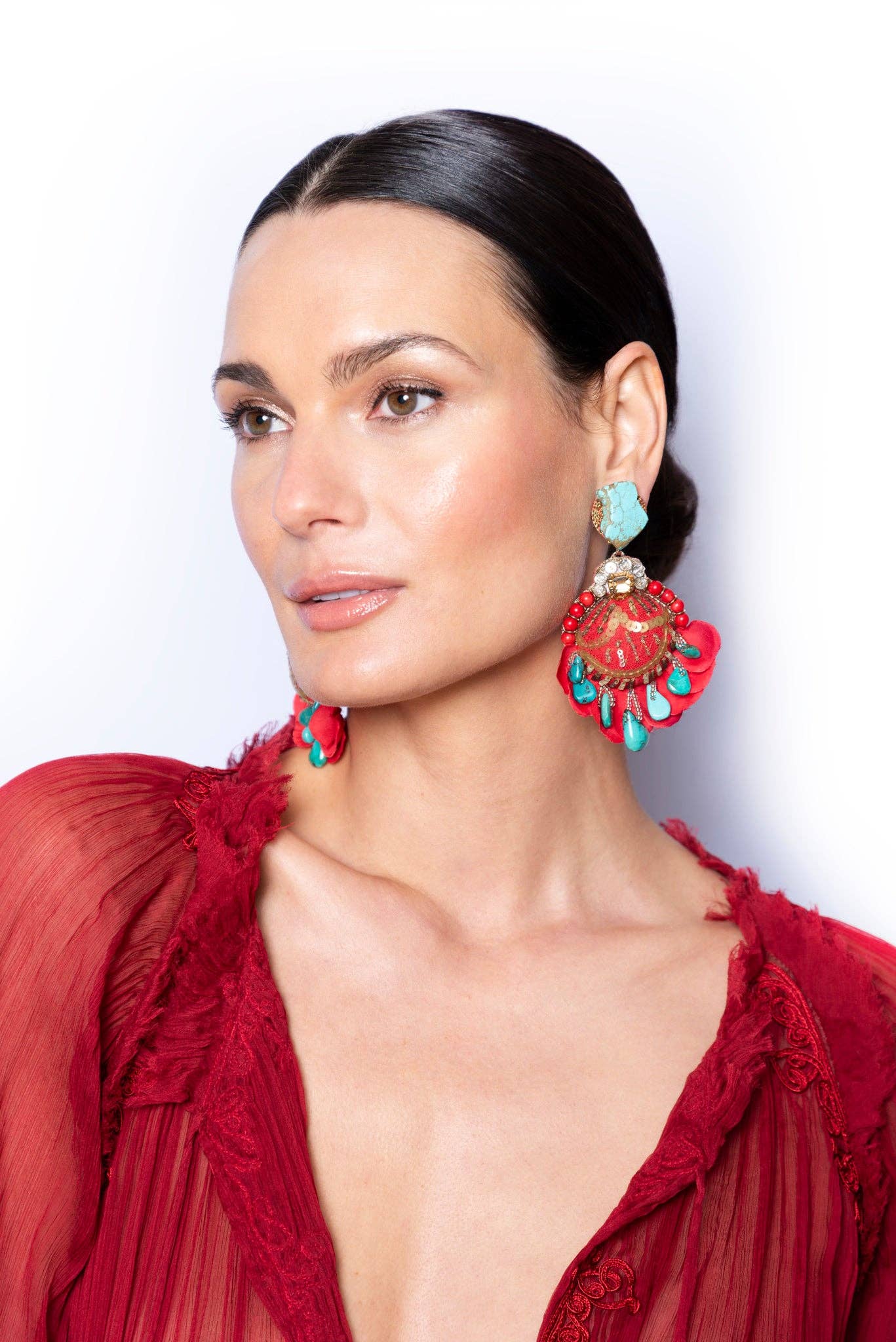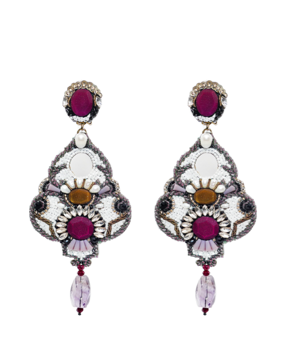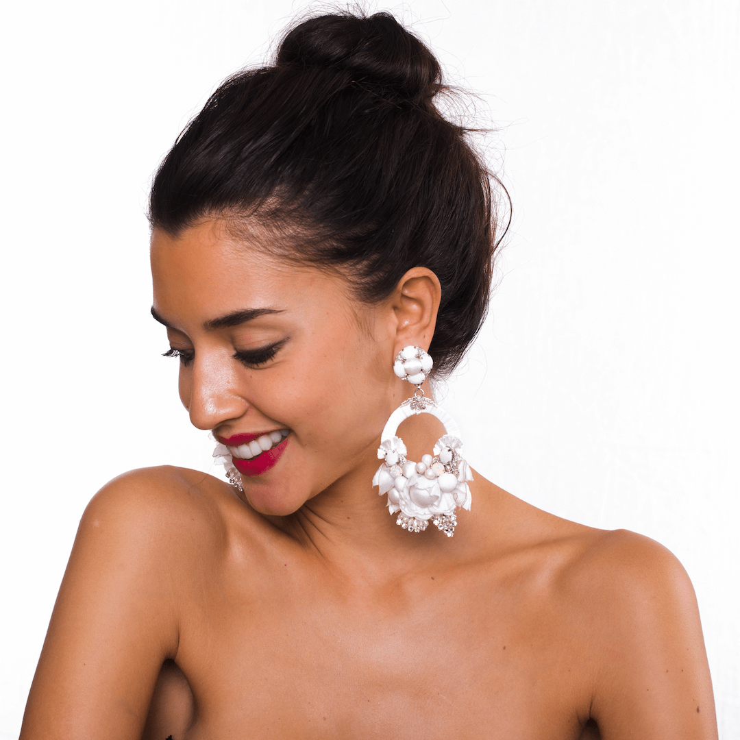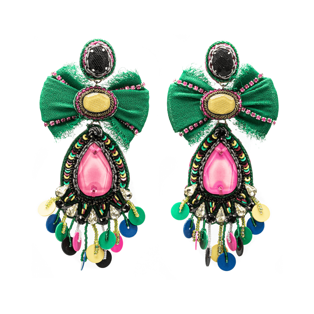 Ranjana Khan (RK) started her jewelry brand in 2008 after over two decades of work in the couture fashion industry. RK owned and operated Phoenix Hand Embroidery, a bespoke embroidery business, catering to Alexander McQueen, Jean Paul Gaultier Couture, Valentino, Jil Sander and Armani Privé, among others. She also collaborated with Lanvin to create the iconic tulle-wrapped pearl necklaces that were seen all over the runway. RK earrings are a mix of soft and hard materials, of organic shapes and some negative space. These earrings emphasize natural materials such as baroque pearls, spiraling shells, soft feathers, and iridescent beetle wings, to which other components such as vintage beads, Swarovski crystals, or semi-precious stones are added. Ranjana Khan jewelry is made to stand out. Our clients desire unique pieces, whether for an important event or casual daily wear. The earrings are decorated with an eclectic assortment of materials that are designed to stay light, while creating dynamic movement on the ear. There is a story behind each style. Some materials are found on Khan’s travels to exotic destinations, some are selected from vintage inventory, and deadstock. Because we upcycle a lot of what we use, some jewelry styles are only offered until that particular rare material has been entirely used. In the end, the designs are bold and whimsical—unconventional, yet classically beautiful. RK has gone from couture, to hand-made jewelry, and has expanded into the home