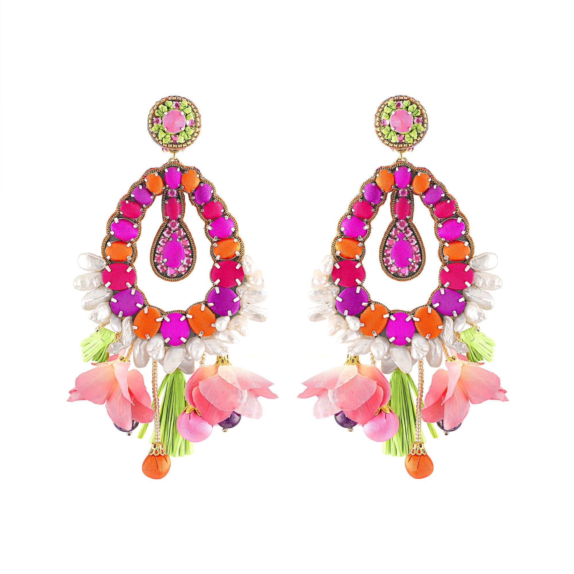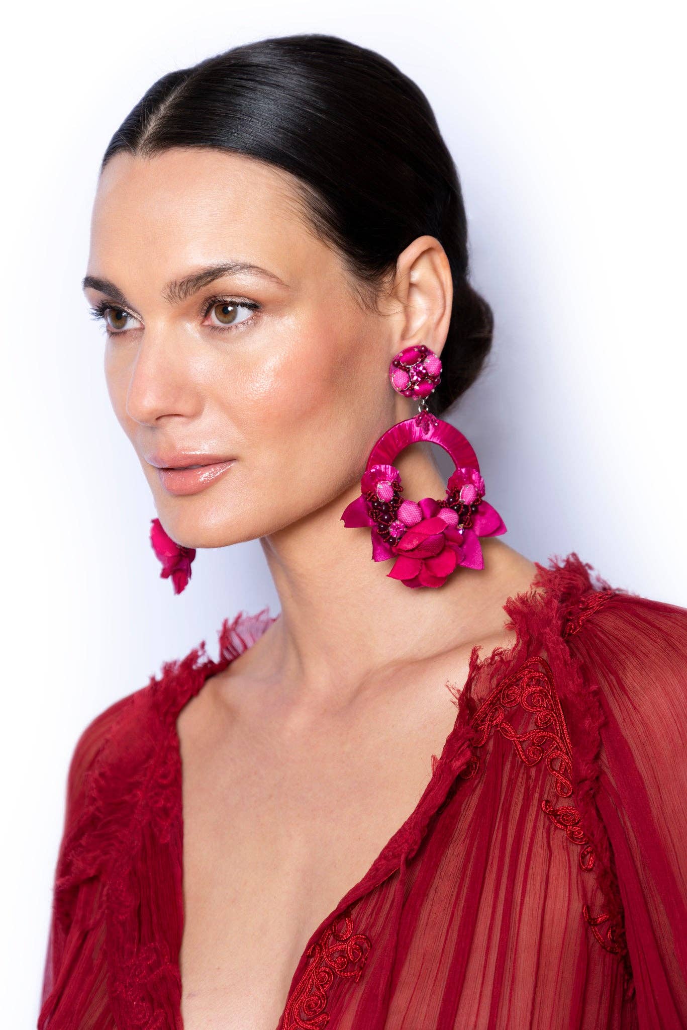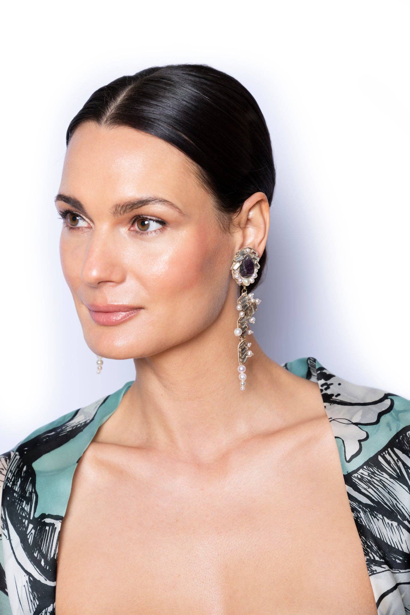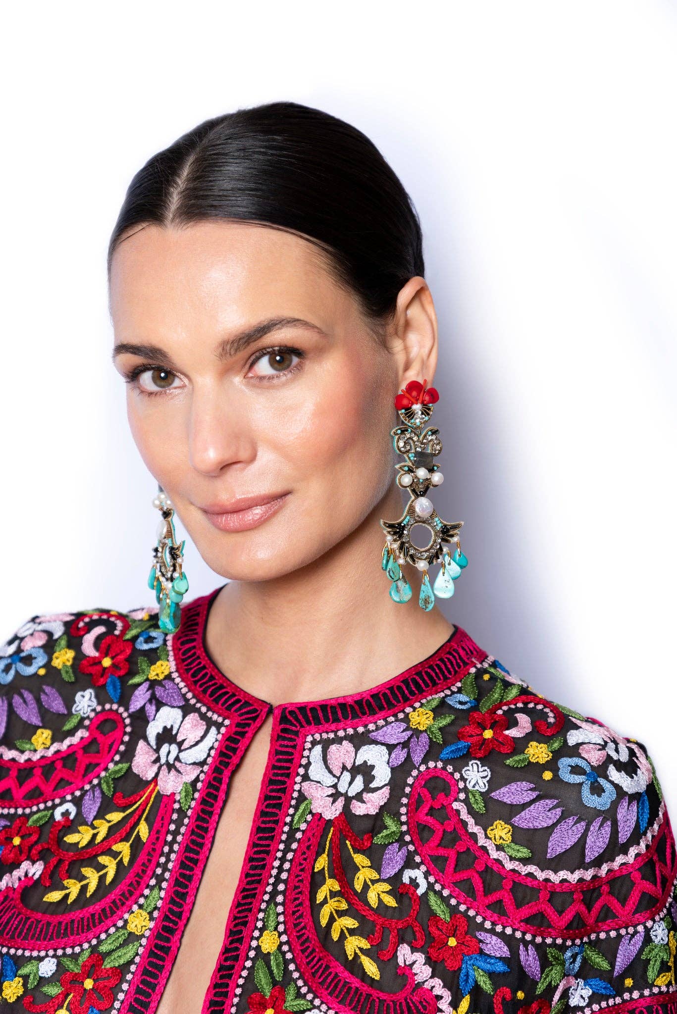 Ranjana Khan (RK) started her jewelry brand in 2008 after over two decades of work in the couture fashion industry. RK owned and operated Phoenix Hand Embroidery, a bespoke embroidery business, catering to Alexander McQueen, Jean Paul Gaultier Couture, Valentino, Jil Sander and Armani Privé, among others. She also collaborated with Lanvin to create the iconic tulle-wrapped pearl necklaces that were seen all over the runway. RK earrings are a mix of soft and hard materials, of organic shapes and some negative space. These earrings emphasize natural materials such as baroque pearls, spiraling shells, soft feathers, and iridescent beetle wings, to which other components such as vintage beads, Swarovski crystals, or semi-precious stones are added. Ranjana Khan jewelry is made to stand out. Our clients desire unique pieces, whether for an important event or casual daily wear. The earrings are decorated with an eclectic assortment of materials that are designed to stay light, while creating dynamic movement on the ear. There is a story behind each style. Some materials are found on Khan’s travels to exotic destinations, some are selected from vintage inventory, and deadstock. Because we upcycle a lot of what we use, some jewelry styles are only offered until that particular rare material has been entirely used. In the end, the designs are bold and whimsical—unconventional, yet classically beautiful. RK has gone from couture, to hand-made jewelry, and has expanded into the home