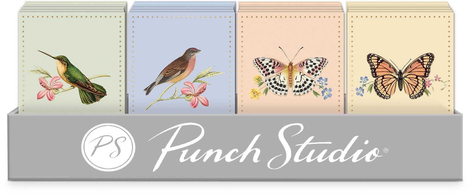 Welcome to the Punch Studio family of brands! Punch Studio: The past meets the present in the hands of Punch Studio designers combining original artwork and vintage ephemera with their own hand-painted watercolors. It comes to life in stationery, gift, home and office decor, and beauty and accessories. Molly & Rex: Come along for the ride with Molly & Rex putting a unique timestamp on modern-day accessories designed with a dash of quirky fun. The brand speaks to a new generation of paper and decor lovers that highlight their individuality with humor and a unique style. Kelly Green: Kelly Green is a new eco-friendly addition to the Punch Studio family of brands. These thoughtfully designed stationery collections feature 50-70% post-consumer recycled materials, soy-based ink, eco-friendly vegan leather, and tote bags and pouches made from recycled plastic bottles.