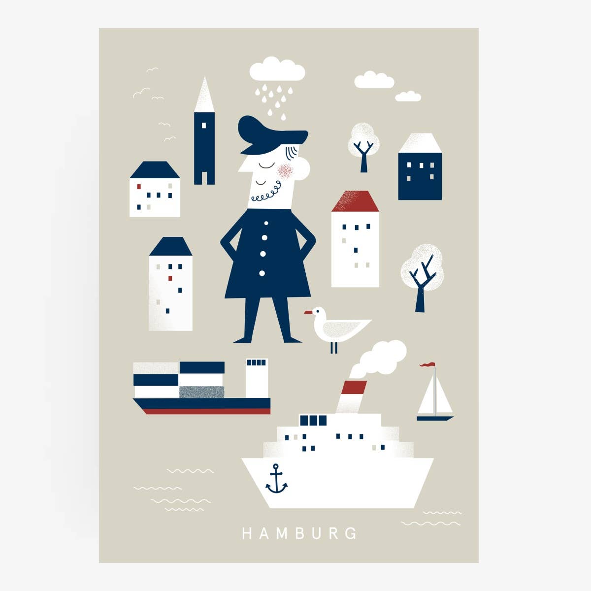 What do we think of when we think of Hamburg? At the harbor, huge container ships with colorful boxes, lots of dark gray water clapping against the harbor basins, seagulls screeching in the ears, the smell of motor oil and fish rolls, the Reeperbahn with its dazzling figures, where life only awakens at dusk, the Elbphilharmonie with its elegant wave roof, which sparkles in the sun on bright days and is loved by the people of Hamburg.” Elfie” was baptized, the culture in general, the many theaters and museums, publishers and agencies, hipsters and tough boys, merchants and celebrities, glamor and unscruffled cordiality. This is a declaration of love to Hamburg, the city we live in, which we also hate sometimes, for its arrogance, its overpriced rents, its rain-wet climate. But anyone who comes here stays. Falls in love with northern German brashfulness, which is straightforward and sometimes hurts. To the people who may be a bit more reserved than in the capital, but who become friends forever. Without question, Hamburg is an inspiring city. We love to roam the streets and discover new things over and over again... Let yourself be enchanted by our Hamburg collection, find out who is behind the Hamburger Leuden and breathe in harbor air with the posters that talk about big trips and faraway countries. Your Human Empire