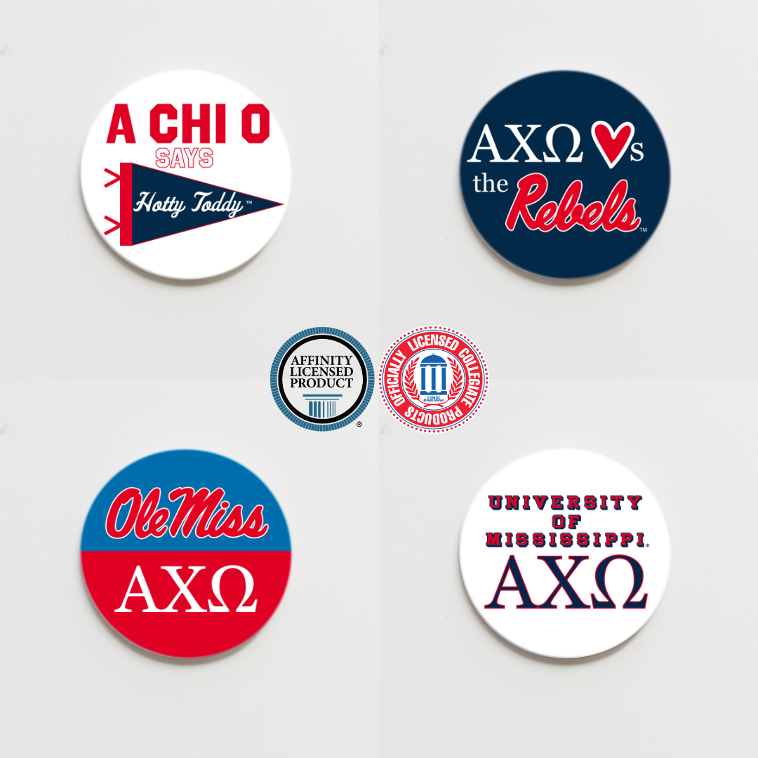 We are two sisters with a vision of helping every Panhellenic woman to share her organization with the world with style and confidence. Born and raised in Texas, but influenced by our college experiences in Mississippi and Alabama, we offer more than forty classic and trendy original pin-back button designs in a variety of sizes for the modern sorority woman. Good Vibez Collegiate (formerly known as M&V Greek Designs) has licensing arrangements with over 20 national organizations and all of our designs have been reviewed and approved by the appropriate licensing agencies. We continue to expand into collegiate gameday buttons and currently have licenses for 16 universities, including some of the biggest brands in college sports, with more to come. Our college buttons feature designs for every fan and unique college/sorority combination designs to allow sorority sisters to show their school spirit. To date we have shipped out over 50,000 buttons to retailers across the country. In September 2025, a new product line of college themed jewelry launched. You never have to worry if our merchandise is legit; every design is original and approved by the college/sorority and each product comes with an authentic hologram license sticker. Our pinback buttons and jewelry are made with spreading good vibez in mind! Note: Our CLC licenses for colleges are registered under our parent company - Nice Socks Consulting, LLC.