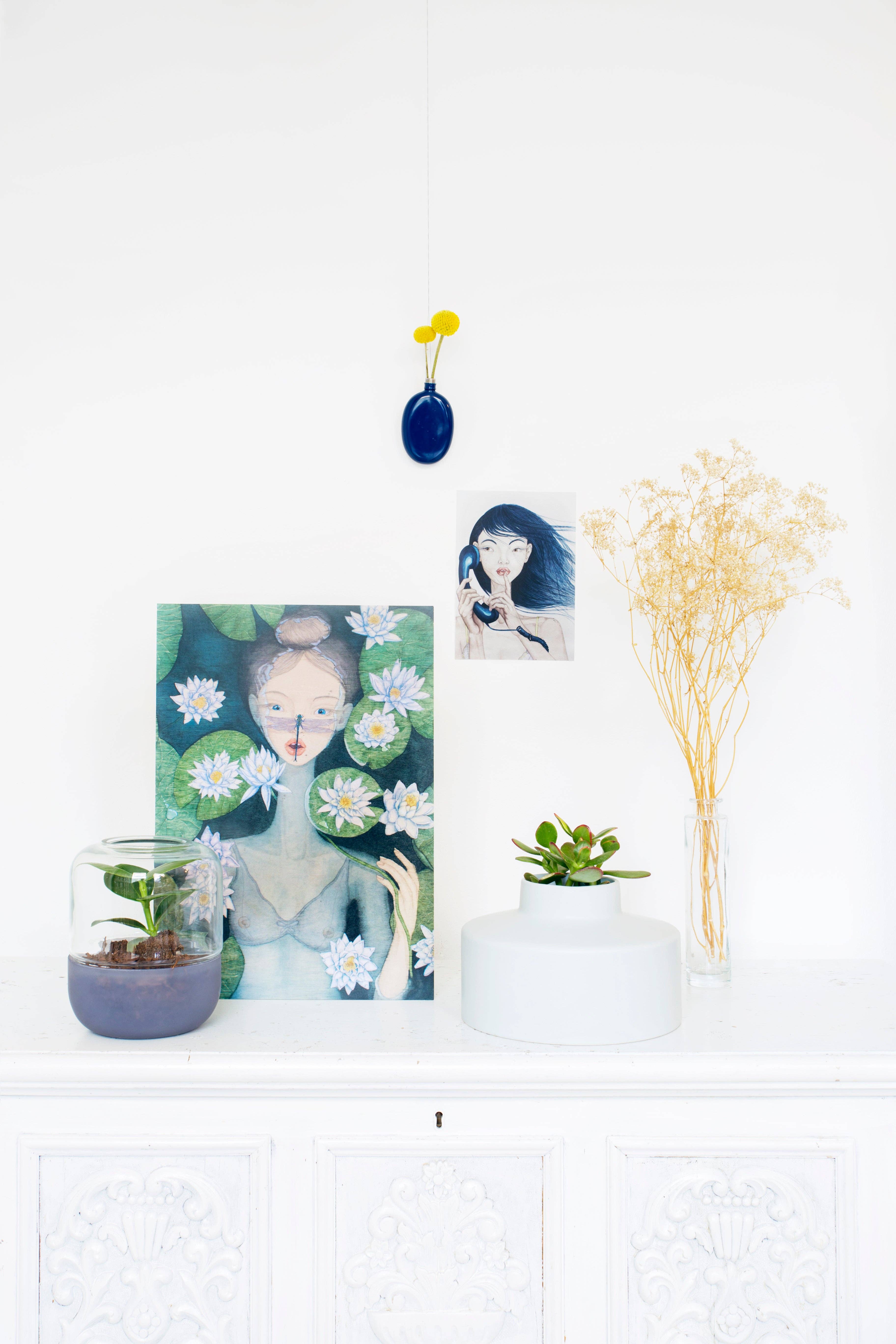 I have always been creavite for as long as I remember. When I was young, my mom asked me what I wanted to be when I grew up, to which I answered "someone who draws". I studied Fashion Design at the Art academy in Utrecht (HKU). I enjoyed my time there but decided if I pursued a career in fashion, I wouldn't be creating art I was truly passionate about. So in 2013, I made the best decision of my life: I decided to focus on bringing te dreamy wolds in my head to life on paper. Now, I only dress the girls I paint. I get to design the most beautiful fabrics and lace for them to wear. When I'm not painting my girls, I'm creating the happiest animal illustrations in silly situations.. My inspiration comes from my own life experiences, loved ones and everyday surroundings. And when I want a fresh perspective, I escape to new places around the world and enter into my 'painting bubble', where all I do is explore and create. I can't imagine a better way to spend my time. In my company, I use sustainable materials where possible and always keep looking for other options where there is room for improvement.