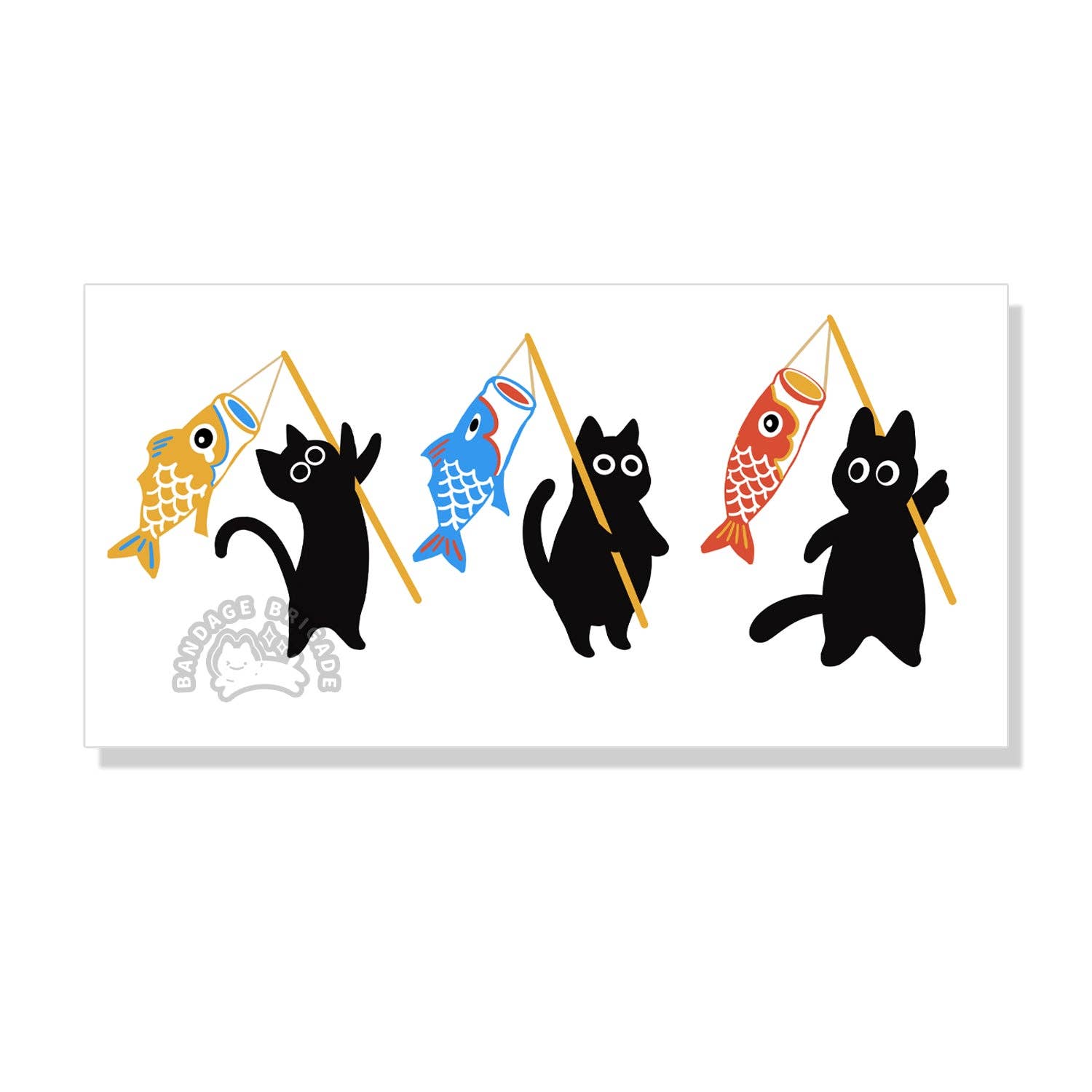 BANDAGE BRIGADE is an artist-owned apparel/lifestyle brand that specializes in creating silly original screen printed clothing and goods such as T-shirts, long sleeves, sweaters, jackets, hats, totes, socks, as well as offering paper goods such as stickers, enamel pins, decals, and charms. Their designs are inspired by black cats, long dogs, overripe bananas, cute ghosts, and strangely-shaped food.