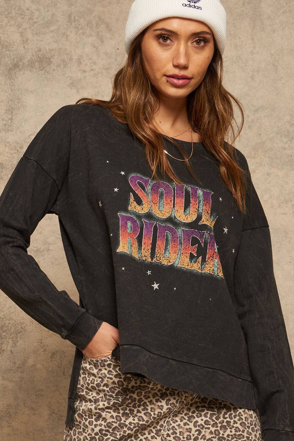 Vintage Canvas - tomorrow's trends with vintage roots. We're beyond excited to showcase our exclusive graphic tees! Our designers drew inspiration from classic rock-n-roll artwork and vintage store treasures. The result is retro-chic with a timeless sense of style. Each one undergoes a unique, premium mineral washing process. This produces the collection's signature vintage look and irresitibly comfy, ultra-soft feel! All of our graphic tops are printed here in California. The graphics are bold and attention-grabbing with a beautifully distressed finish. Your customers will fall in love with the vintage-glam vibe of our exclusive graphic tee collection. You'll certainly appreciate the value it brings. Due to the high demand we expect each design to sell out soon. Get them now while you can!