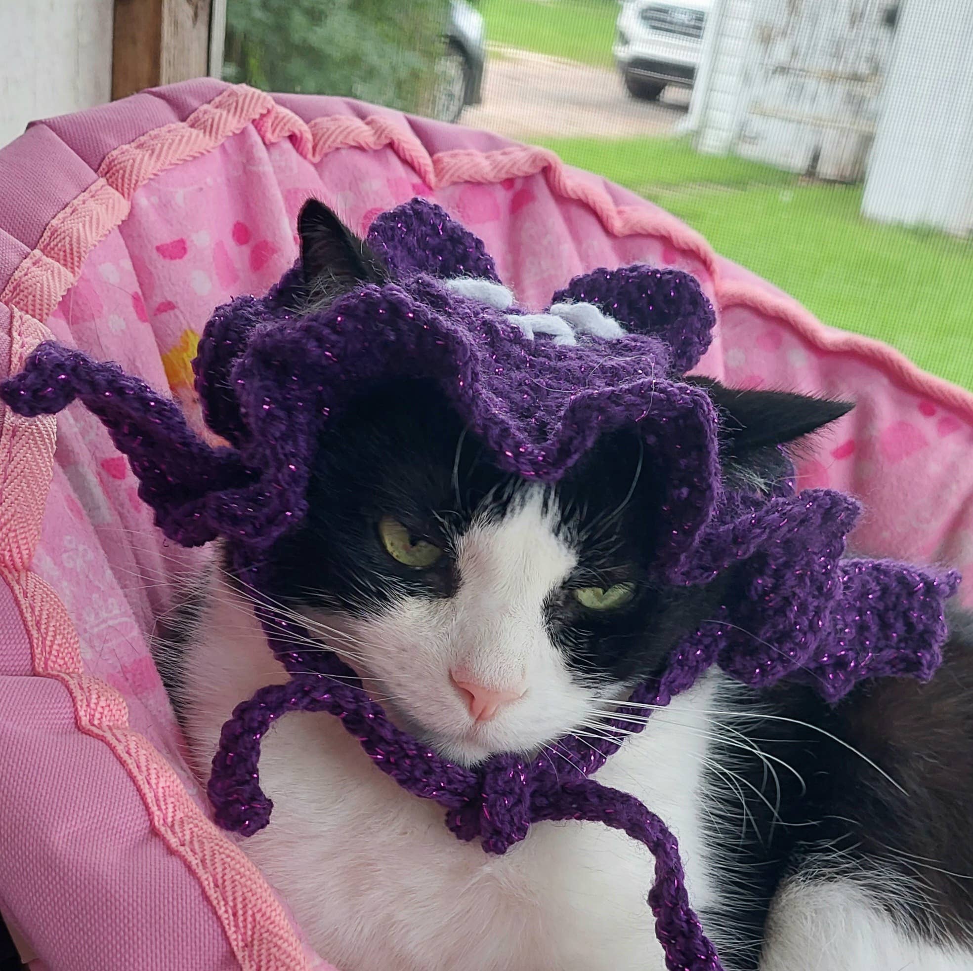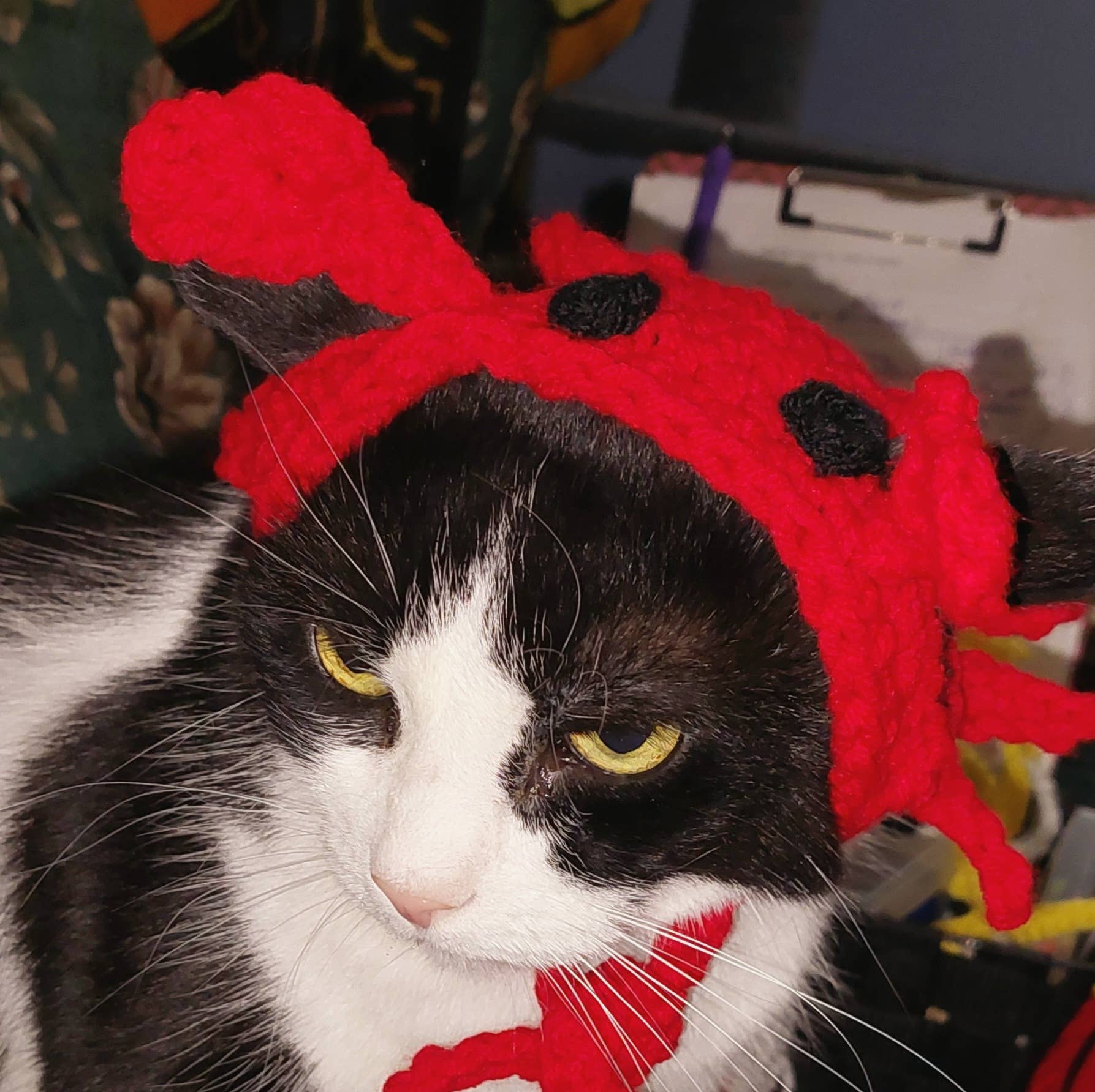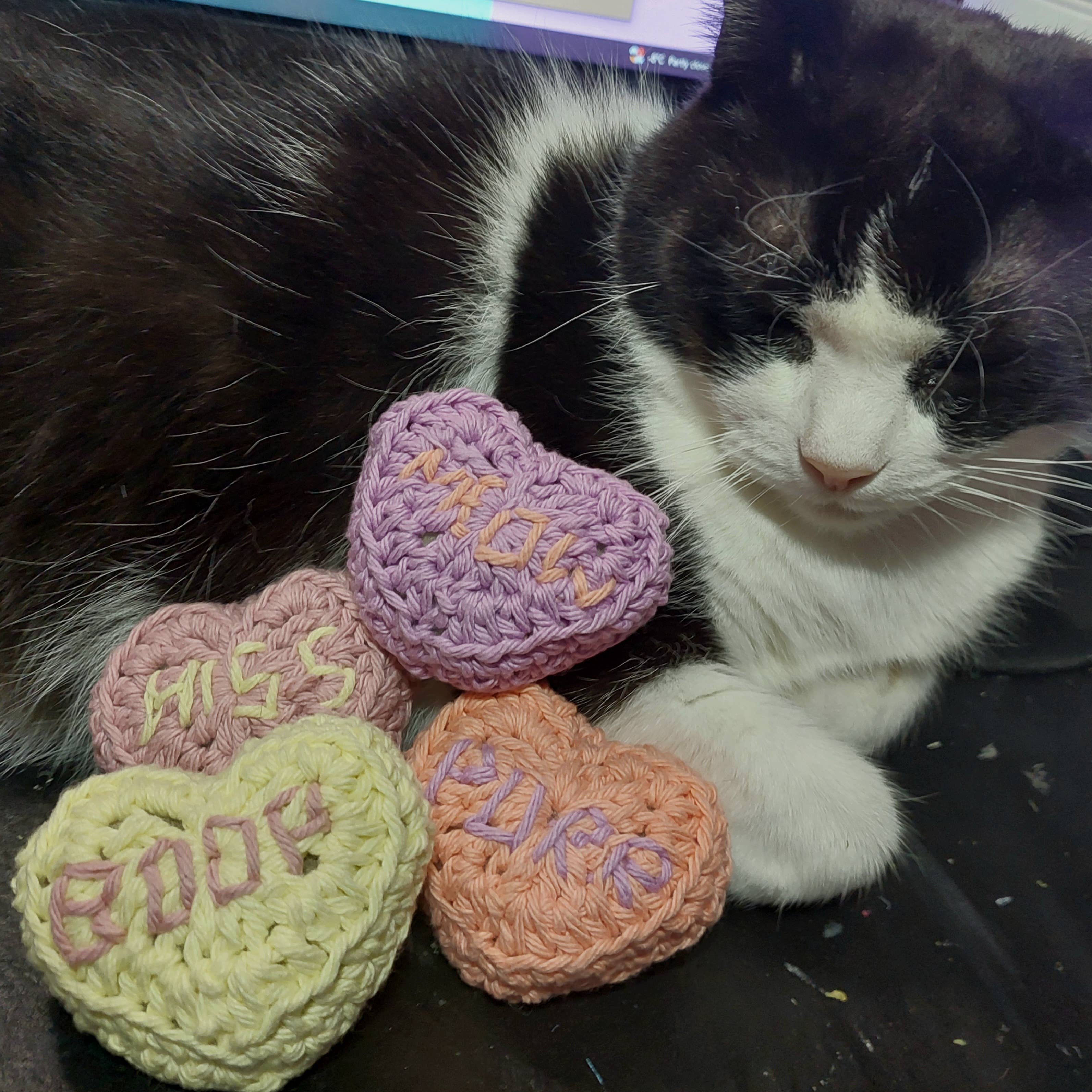 Stickers are all hand made in house and designed by me. Accessories are handmade , my artwork and some are crochet. I also offer a variety of pet accessories and catnip toys.
