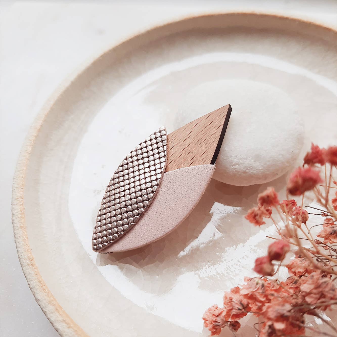 Bois éco-responsable - Cuir Upcyclé - Pierres Naturelles Nous sommes très sensibles aux choix de nos partenaires et à la provenance de nos matières premières, nobles et éthiques. Nous créons et fabriquons des bijoux en cuir upcyclé mêlés à du bois de Hêtre éco-responsable et des pierres naturelles. Chaque pièce de notre collection est le résultat d’un travail artisanal de qualité, que nous réalisons à la main dans notre atelier-boutique au coeur du 20ème arrondissement de Paris. Notre marque Ni une ni deux est labellisée ‘Fabriqué à Paris’ depuis 2017 par la Ville de Paris.