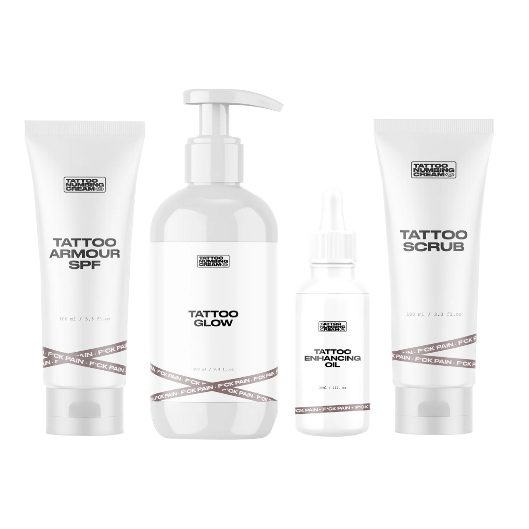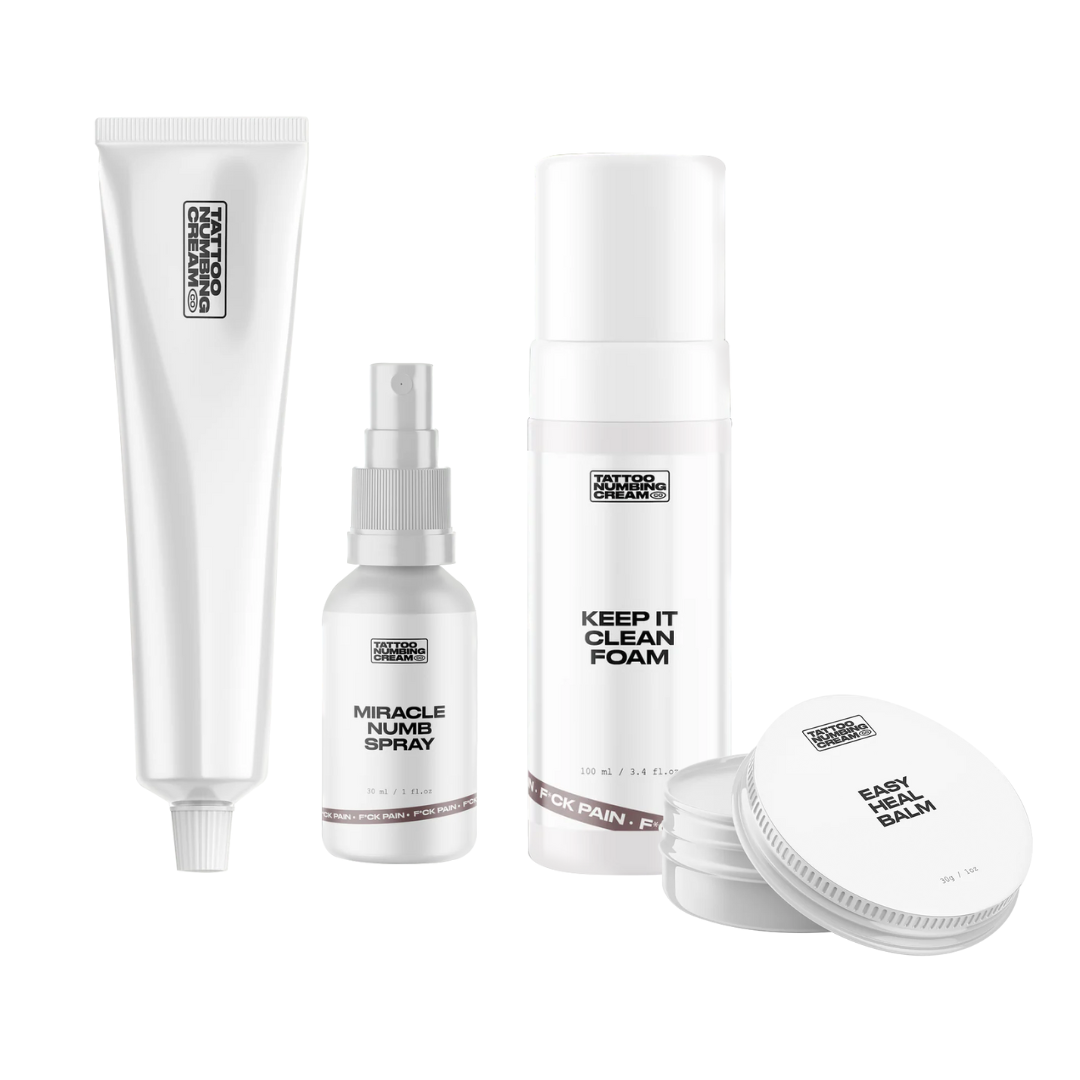 PAIN-FREE TATTOOS — WITHOUT COMPROMISE At Tattoo Numbing Cream Co., we believe tattoo pain is optional. Your customers deserve to collect their dream ink, without gritting their teeth through every line. That’s why we created our signature formula: a numbing cream that actually works — no BS, no gimmicks. Designed specifically for tattoo sessions, it’s strong enough to dull the pain, yet gentle enough to leave stencils, ink, and skin integrity untouched. Whether it's a small flash or a full-day sleeve, our formula can be reapplied mid-session without affecting the tattoo quality. No smudges. No issues. Just more time under the needle — comfortably. But we don’t stop at the session. Our tattoo aftercare range helps keep fresh ink clean, calm, and looking bold for years to come. From our gentle cleanse to deep hydration, we’ve covered the full tattoo journey — start to finish. We’re obsessed with making tattooing better for artists, collectors, and shops alike. The proof? Over 500,000 5-star reviews, happy customers (and growing fast), and a cult following that swears by our products. If you’re looking to stock a tattoo care line that delivers — you're in the right place.