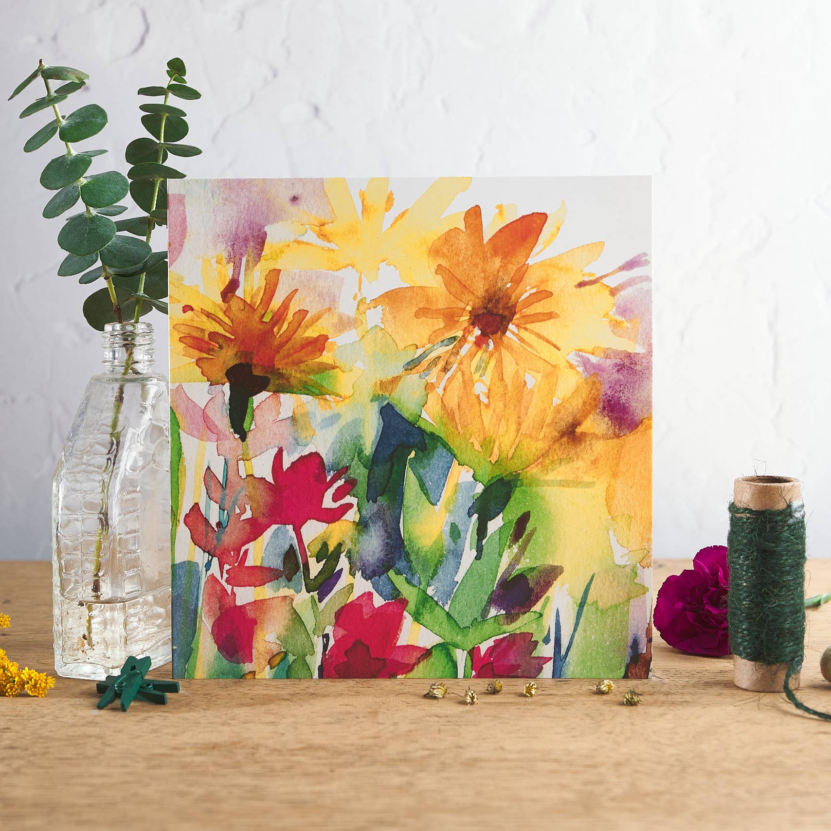 Hi, I’m Diana, welcome to my Studio. I paint and design from my garden studio in the Leicestershire countryside, helped by my cats who like to invade the studio at frequent intervals. Since 2008, I've designed cards for all occasions, often inspired by the garden I work in. I have an affinity for bright, contemporary colours and work towards card designs that inspire happiness and creativity, sunshine you can send by post! Flowers bring me such happiness, and I try to capture that feeling through my products, which are made with care and attention in the UK. The Studio has supplied cards to retailers in the UK and Europe and I was especially excited to see my designs in the Courtauld Art Gallery store in London - not quite next to a Monet but near!