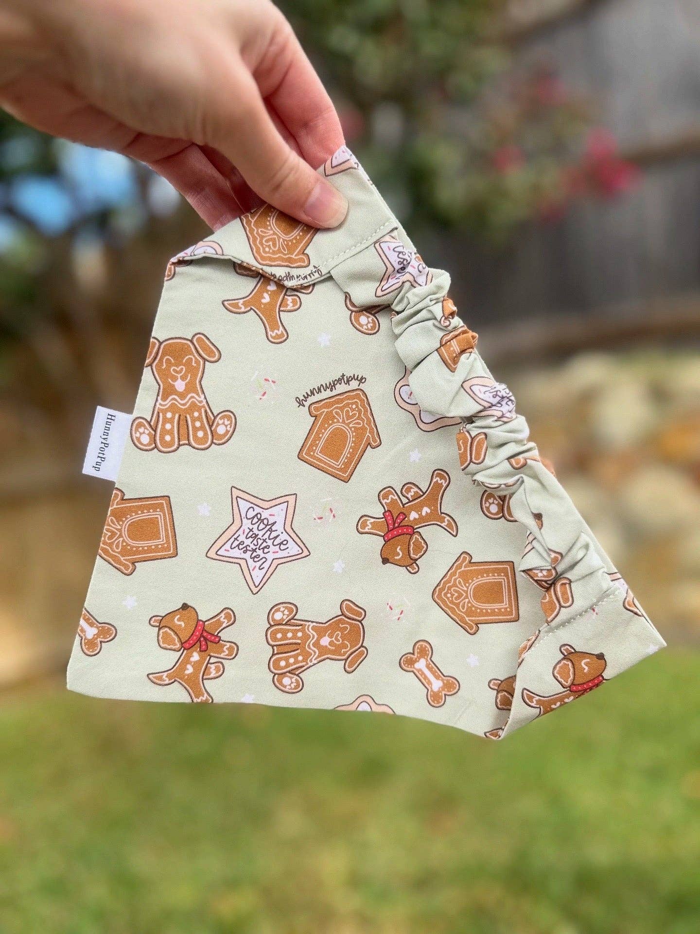 Hi Hunny's!! I'm Sarah and I created the Scrunchiedana®! HPP is my fulltime job- you can catch me behind a sewing machine 24/7! Winnie and Hunny are my first babies and I'm also a toddler mom. I started HPP in 2020 out of pure desire to have cute bandana's for Winnie that were fashionable, yet functional. I'm driven by my passion to include my pups in all life's seasons and celebrations, and I love helping other dog mamas do the same! Here at HPP all dogs are family. In 2020 I quit the corporate world and hand stitched my first bandana for my golden, Winnie, just for fun. I enjoyed it so much that my husband surprised me with a sewing machine. From there I spent 3 months designing the first Scrunchiedana® prototypes before I began selling on Etsy. I created this scrunchie style because the tie-on bandanas always fell off and the over the collar bandanas were too much of a hassle for me. I wanted something that would be more functional and easier to use while simultaneously comfortable and cute for Winnie. The Scrunchiedana® is made with elastic that makes it super easy to slip on and off your pups head. No collar or tying needed, and they don't bunch up or fall off. Our goal is to help your pup feel included throughout ever season of life with a cute, yet functional, Scrunchiedana®.