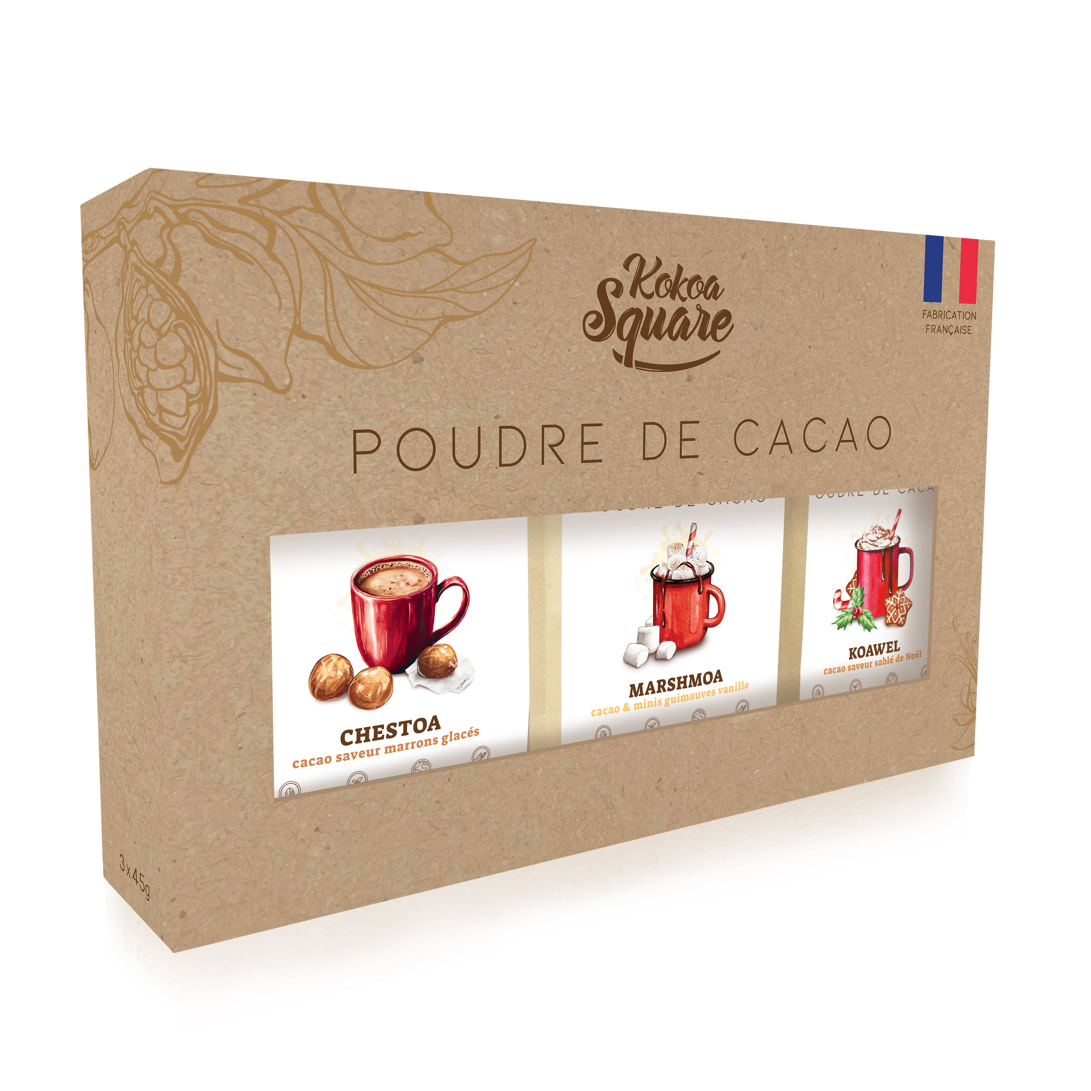 We have created organic flavored cocoa powders ... without flavorings! With only real natural ingredients for more than 40 delicious recipes with a pure and authentic taste. Where does our organic cocoa come from? From the family cooperative, located in the rural regions of Madagascar, which cultivates cocoa trees according to the principles of organic farming, at the heart of the ethical and supportive sector. Our cocoa directly contributes to local development while ensuring total traceability. What species of cocoa? At Kokoa Square, we celebrate the purity and authenticity of exceptional cocoa. We work exclusively with Criollo cocoa, a rare and fine variety, recognized for its naturally complex aromatic profile. Our non-degreased and non-alkalized powder is made without any industrial process or chemical additives: it thus preserves all the richness of the authentic taste of cocoa: slightly tangy, without artificial bitterness. A pure cocoa, respectful of the earth and people, to rediscover the true taste of chocolate. Our cocoa powders are pure: without lecithins, without additives, without preservatives, and without flavorings. All our recipes are handmade in France, in the Loire, in our small workshop in Ste-Foy-St-Sulpice.