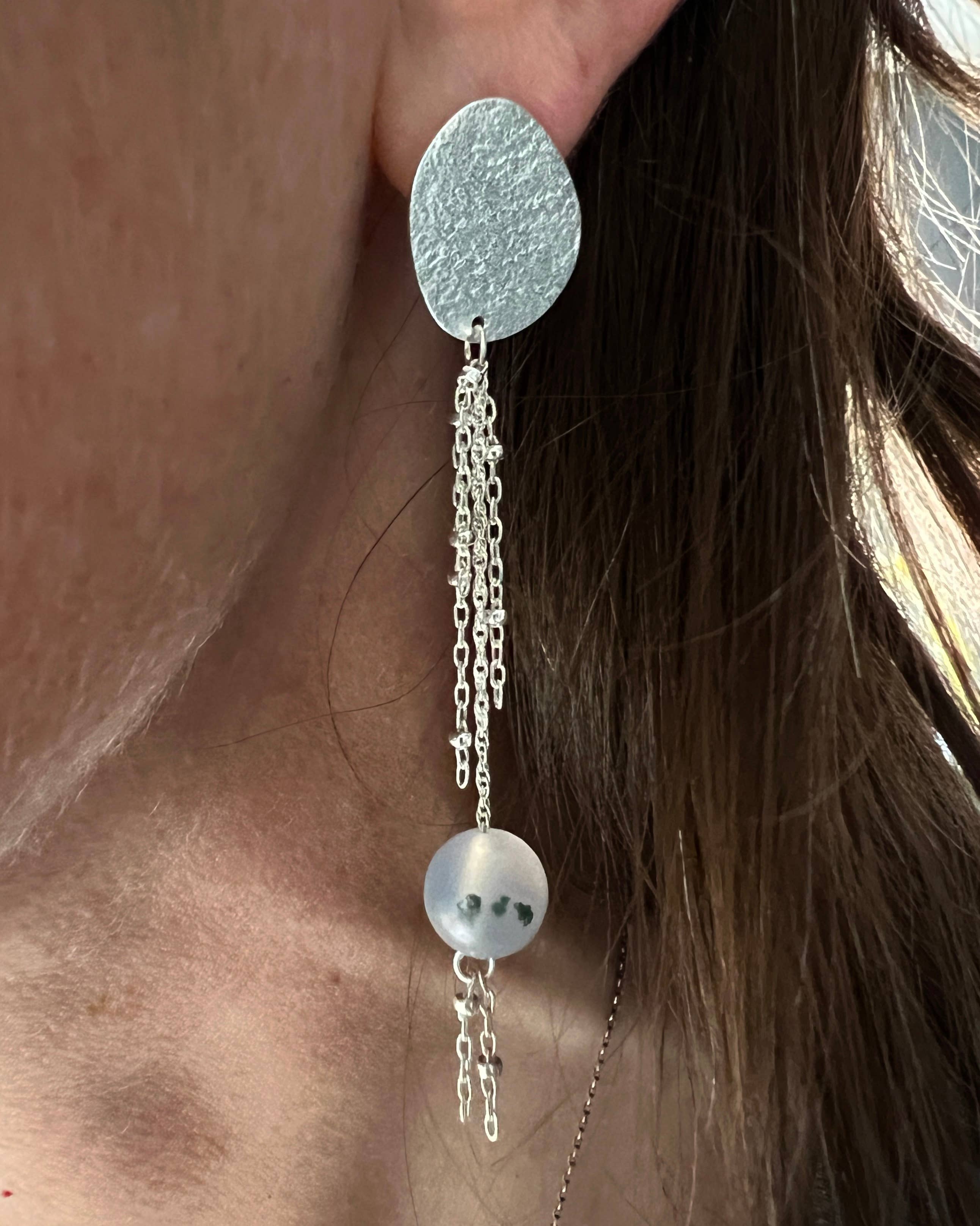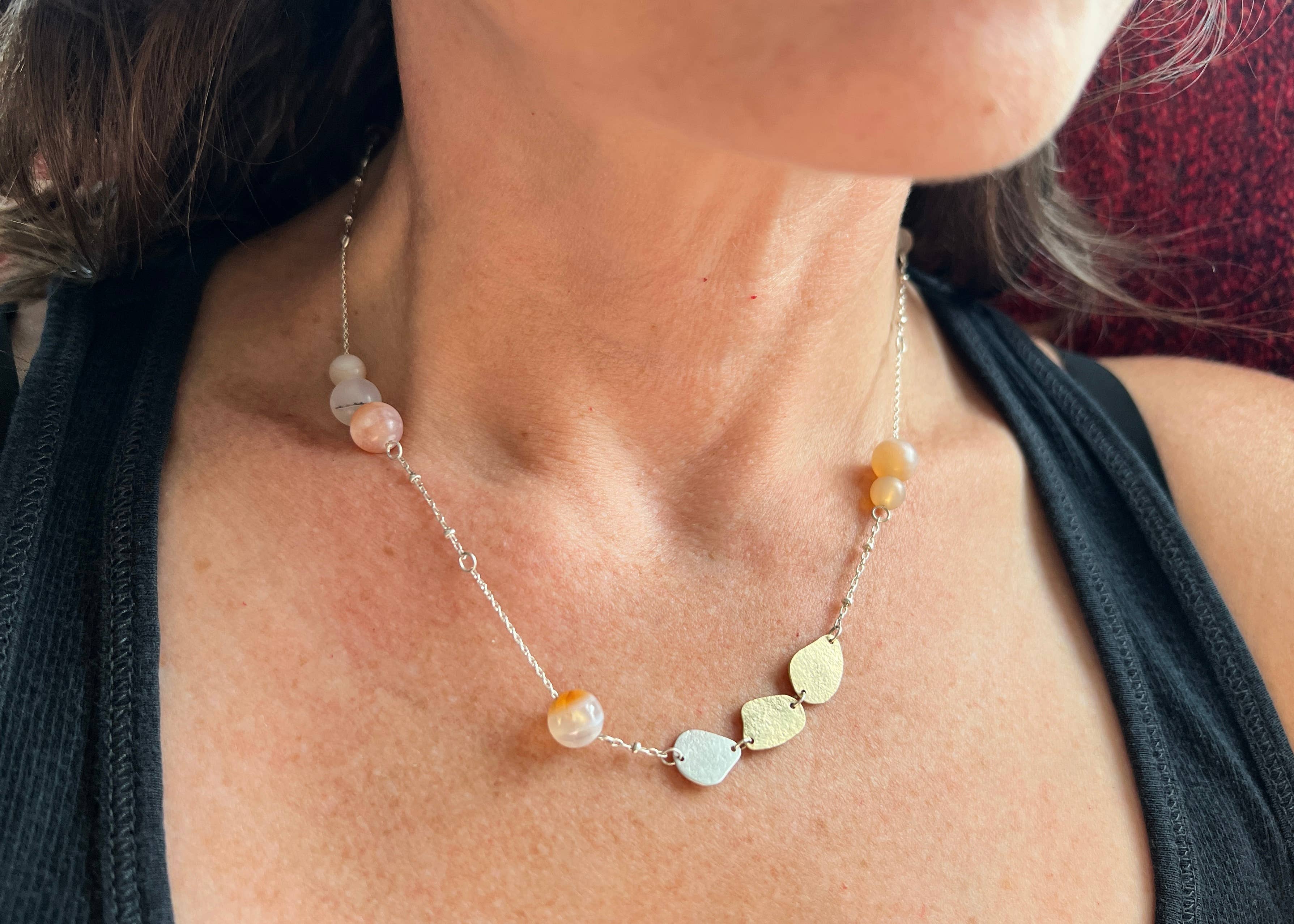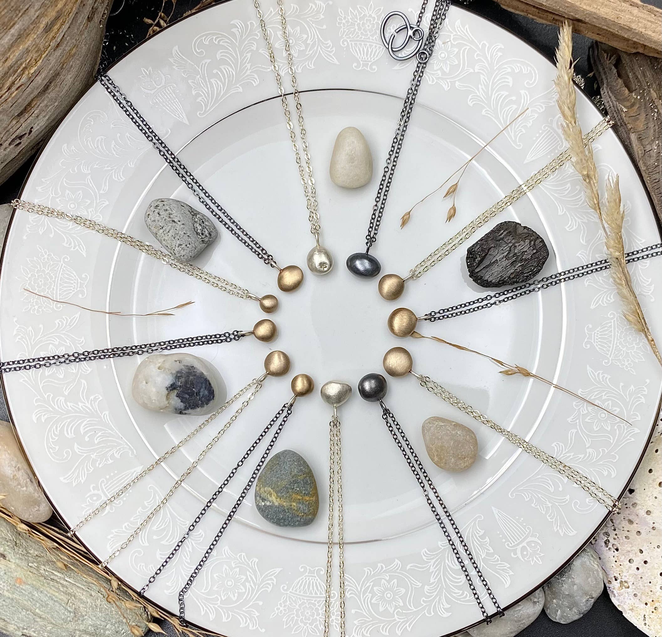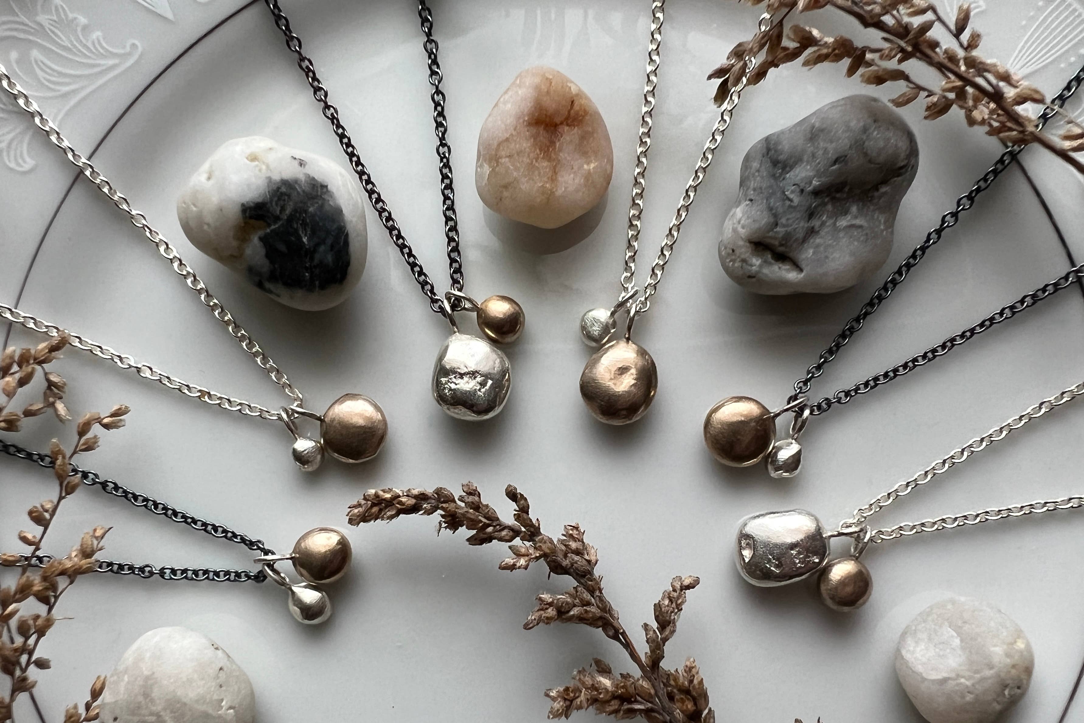 I am someone who likes to get my hands dirty, wearing away fingernails as I hold metal objects which I sand, file, texture and enamel to make into a wearable art. Out of the chaos and loudness of metal banging on metal, torches hissing and tools whirling comes seemingly delicate, soft jewelry. Jewelry which seems simple yet is rich in detail, be it texture impressed by old hammers, power tools, a scribe in my hand or glass enamels added to give pops of color, or mixing metals to add a subtle detail.