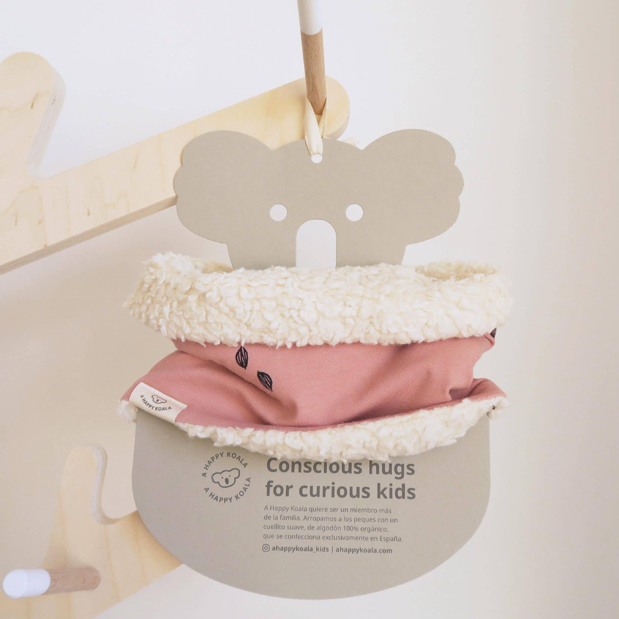 HAPPY KOALA WANTS TO BE ANOTHER MEMBER OF THE FAMILY. WE COVER THE KIDS WITH A SOFT HAIR, MADE OF 100% ORGANIC COTTON, WHICH IS MADE EXCLUSIVELY IN SPAIN. Our philosophy is based on commitment. We care that children enjoy their experiences in any everyday environment, in the park, walking around the city or in the countryside with mom or dad. But it is essential that they do so with the warmth and well-being of a design that protects their necks while taking care of their skin. Our hair does not include synthetic fabrics or dyes that are harmful to the environment. And with its round, very enveloping shape, there is no risk of getting snagged. We love to think that A Happy Koala is like a hug. Just as nice, just as affectionate.