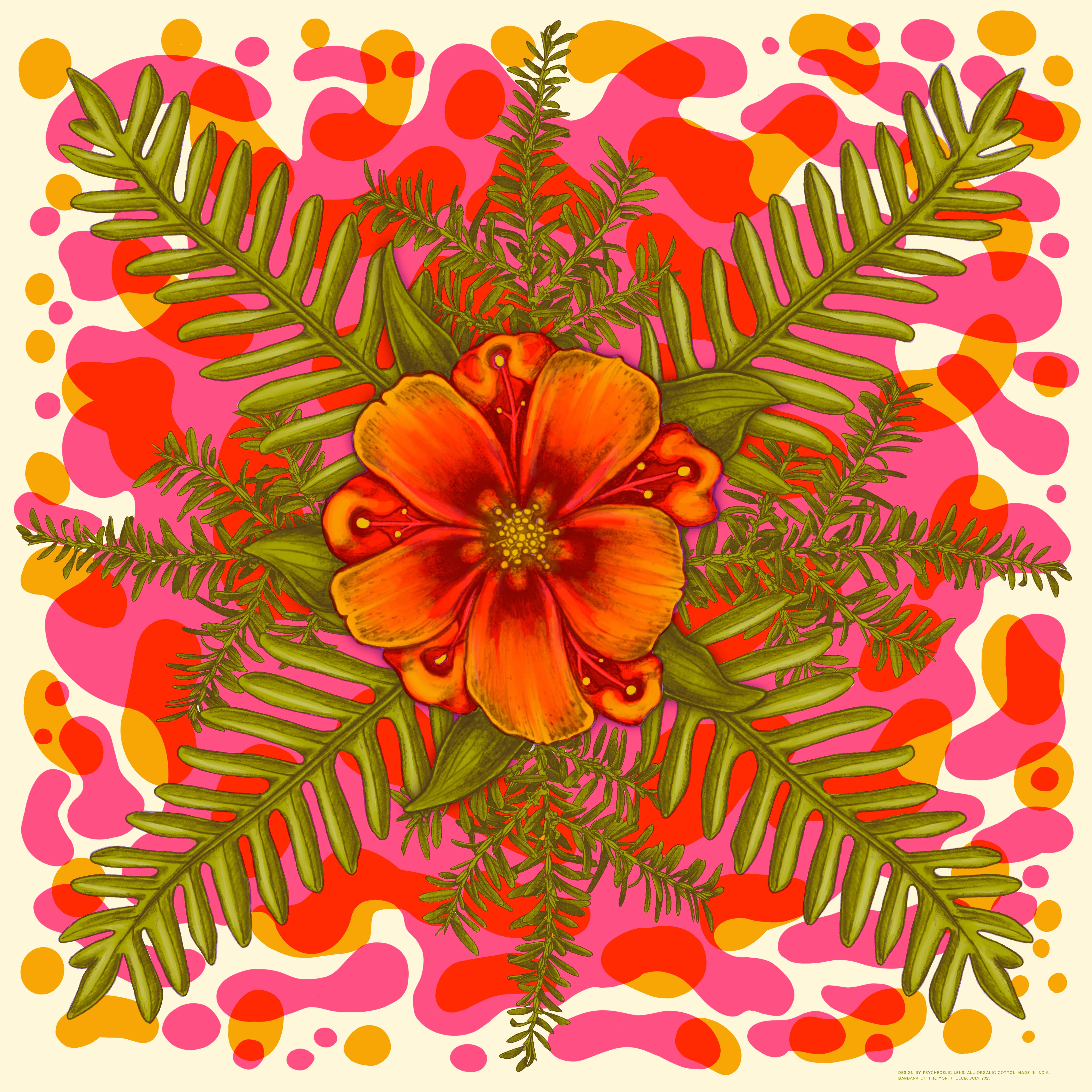 At heart, Bandana of the Month Club is a monthly subscription club. But we also sell our past designs to individuals and to boutiques, art galleries, garden shops, and more. Our bandanas are 100% cotton and printed using water-based ink for a super soft yet durable product. Each month we work with a different artist to create a unique piece of functional art. All of our designs are limited edition, so once we sell out of a particular design- it is never reprinted.