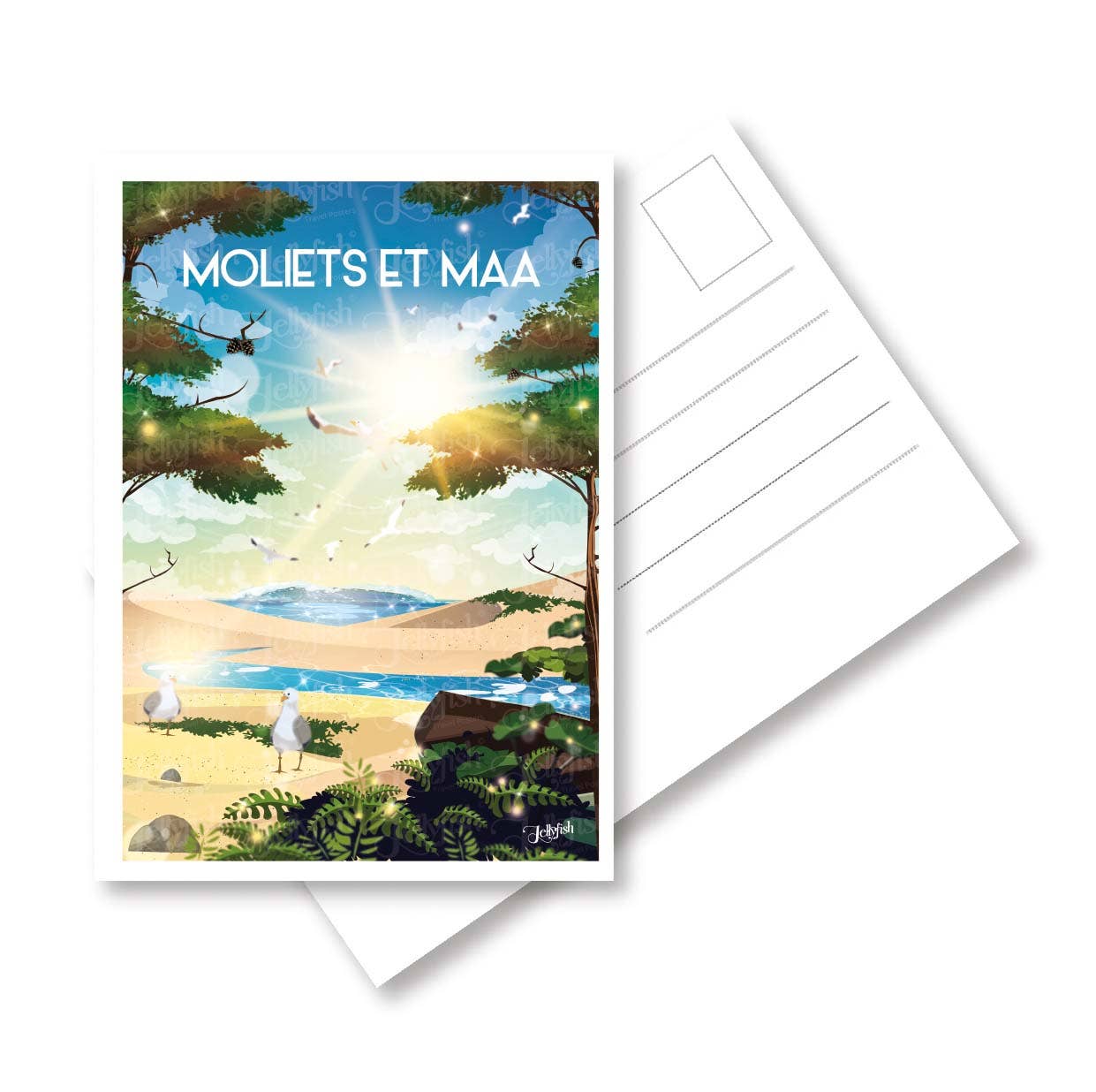 Aurélie Evrard combines her studies in Applied Arts, which she pursues in her hometown of Le Mans, with an insatiable passion for travel. From the sunny landscapes of the Caribbean to the impressive fjords of Norway, via the North Cape and Spain, she explores the subtleties of colors and the richness of cultures. Her journey takes her to Angers, where she earns a degree in Graphic Design at the École Supérieure des Arts et de Design. During her training, she deepens her knowledge in illustration, photography, perspective, contrasts, play of shadows and light, hyperrealism, visual creation, and computer graphics. Her career begins in a communication agency in Paris, where she immerses herself in the advertising world. Backpack on her shoulders, she then heads to Annecy to market Fine Arts products. Today, Aurélie is a freelance Graphic Designer and illustrator, based in Lit et Mixe, in the Landes. In homage to the blue and cosmopolitan jellyfish that bears her name, she adopts the alias Jellyfish. Her mural art, including posters called "Travel poster," merges vintage and modernity, offering a unique vision of her travels.