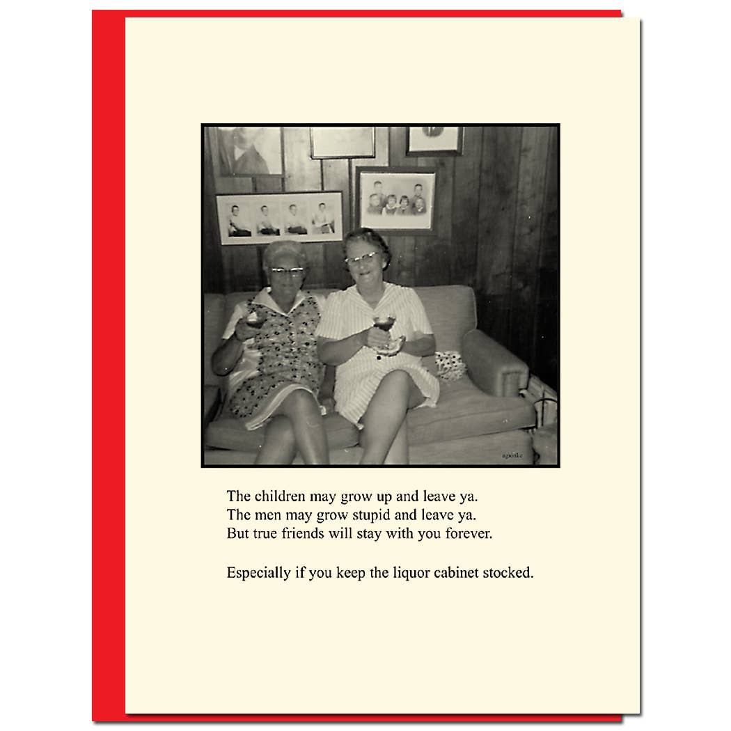Bloodshot Press was originally created by screenwriter Alicia Gronke. Alicia desperately turned to writing when her kids were on a particularly neurotic spree during Spring Break 2002. They were bored and doing the usual sibling thing: "She's LOOKING at me!" "He's pulling my HAIR!" Alicia could have followed the advice of any number of parenting books and made an attempt to mediate their dispute. Fortunately, she instead chose to tune them out and start writing. The sarcastic, occasionally bitter, often emotional results were the first Bloodshot cards. Alicia took these fruits of her labors to a local card shop. The owner took a long look. Her response? "What took you so damn long?!" In 2010, Mackenzie Jeans, owner of fellow card company Allport Editions and friend of Alicia, adopted Bloodshot Press. Since then “BS” has become known as the naughty little sister of the Allport Editions family. Using mostly family photos and a few dashes of wry wit, Bloodshot your go-to line for wicked humor. As Alicia always says: “laughter is contagious—infect someone today!”