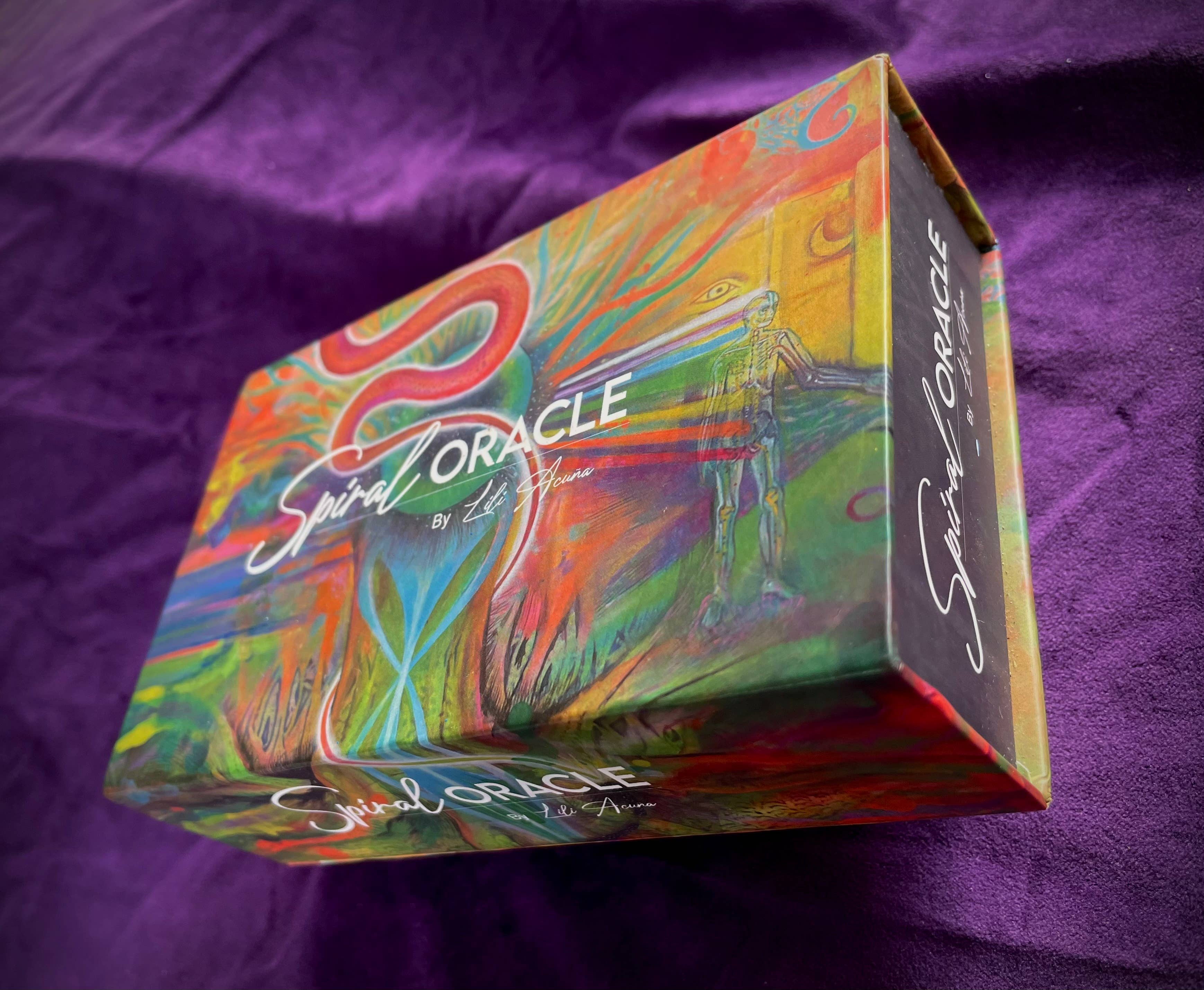 The Spiral Oracle is a deep and loving tool created with the intention that you can explore yourself, hear your inner voice and find clarity. Thus establishing an honest and caring dialogue with you and the world around you. Each card is a mirror of your inner world with the potential to reveal valuable information that lives within you. This Oracle includes a special selection of 62 pieces of art by visionary artist Lili Acuña and a guide book with the inspirational messages of each card. Lili is originally from Chile, and her career has taken her to many different countries such as New Zealand, Argentina, USA, Peru, Italy, England and Thailand. Today she resides on the east coast of Australia. She has degrees in Visual Arts and Pedagogy, as well as a diploma in Systemic-Strategic Coaching and is also studying Traditional Amazonian Medicine.
