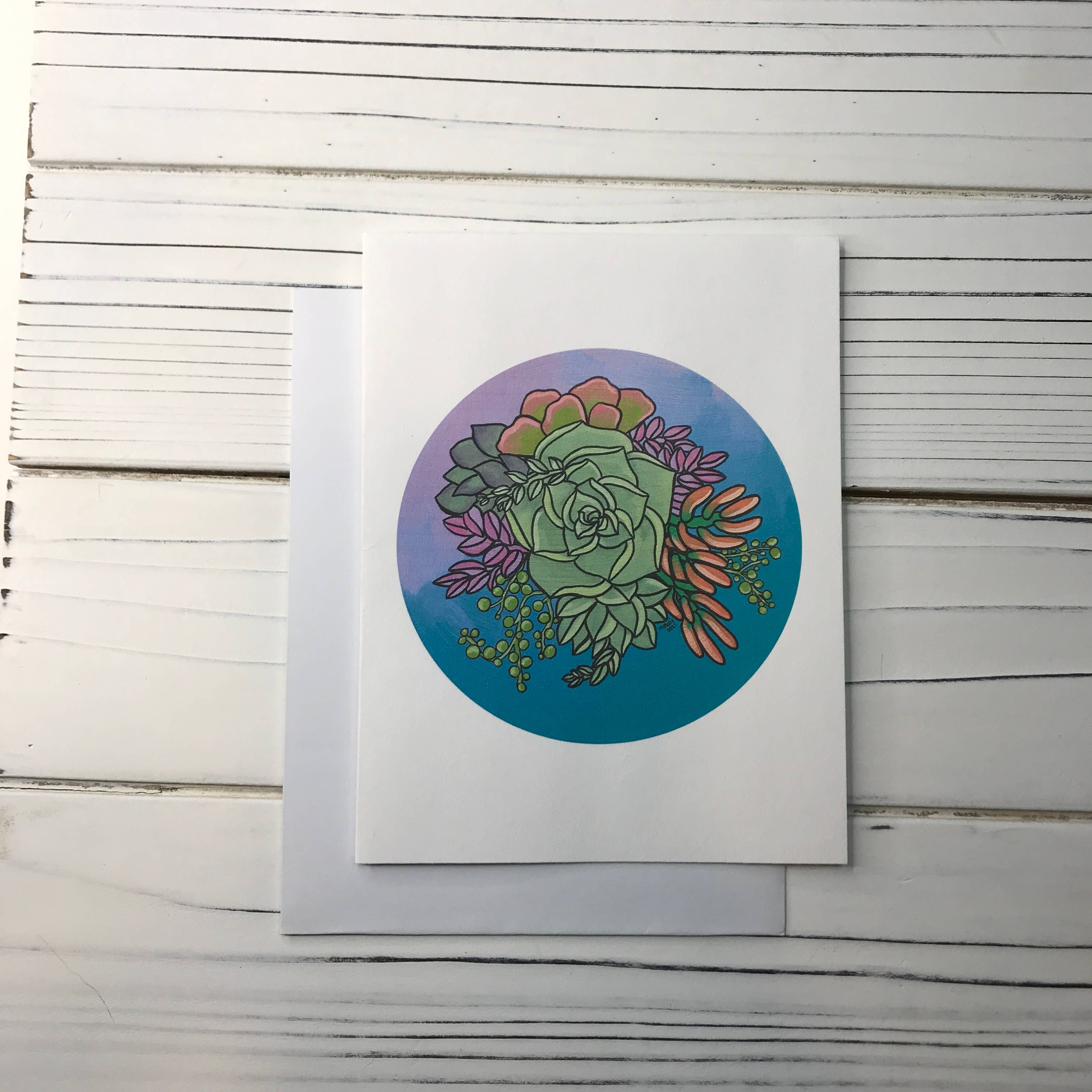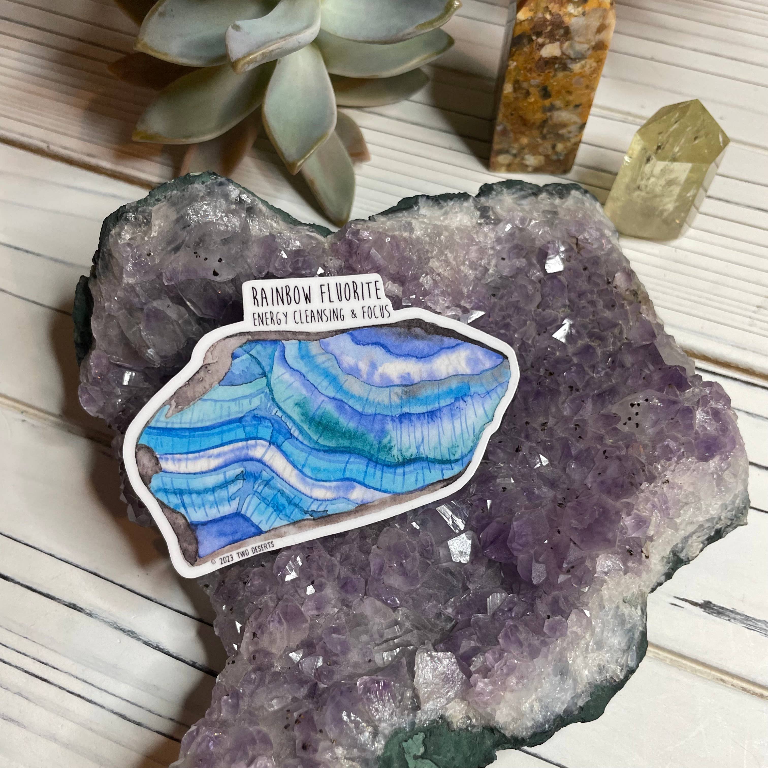 Two Deserts specializes in desert themed stickers and greeting cards. Mixed media artist Melissa Mercilliott uses ink, watercolor, and acrylic paint to create fun and colorful illustrations. The finished illustrations are scanned, cleaned up and resized to be used on vinyl stickers and greeting cards that celebrate the beauty of life in the desert.