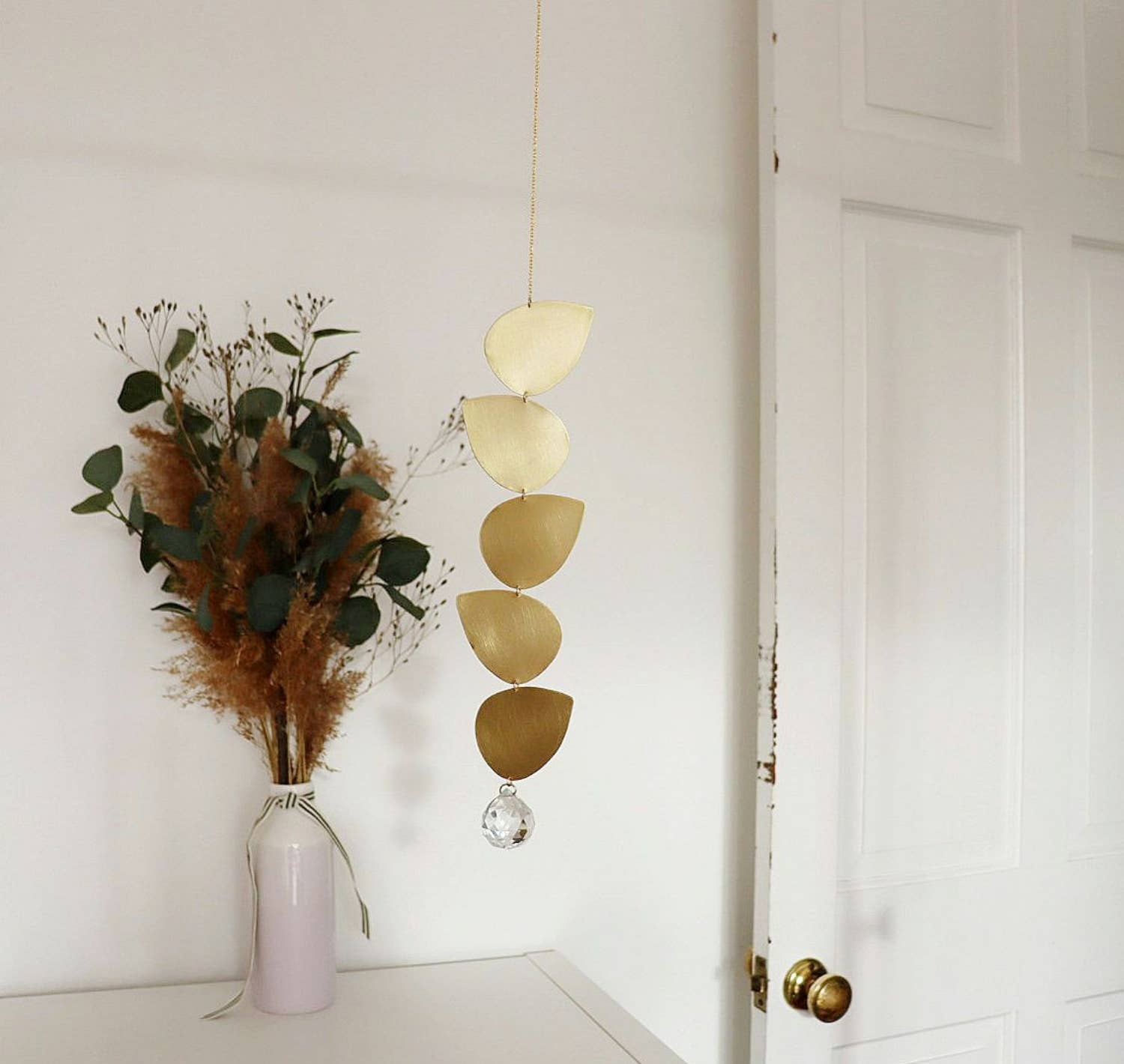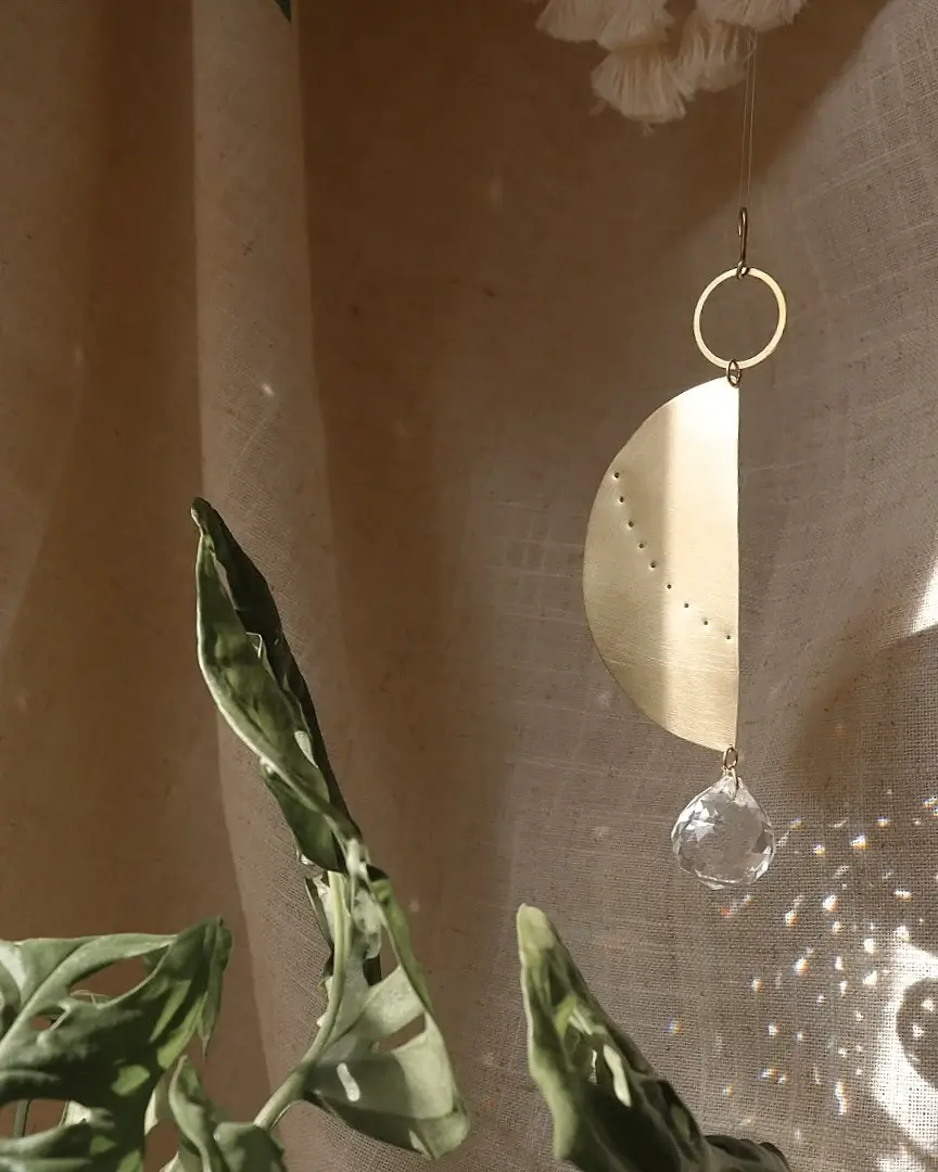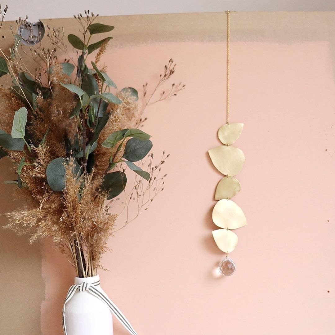 I'm Samantha and am the designer-maker behind Peppy Sun. Having grown up in the Northwest of England, I am now based in Hampshire. I design and make all of the mobiles, wallhangings and homeware you can see in my shop. Inspiration for my work comes from walks in the local countryside, the coast and Victorian design- ironwork, geometric shapes and floral patterns in particular. I enjoy working with metal so much and completed my degree studying goldsmithing in Manchester in 2010. I find working with metal almost meditative which allows me some time each day to recharge when I've been running around after my three children!