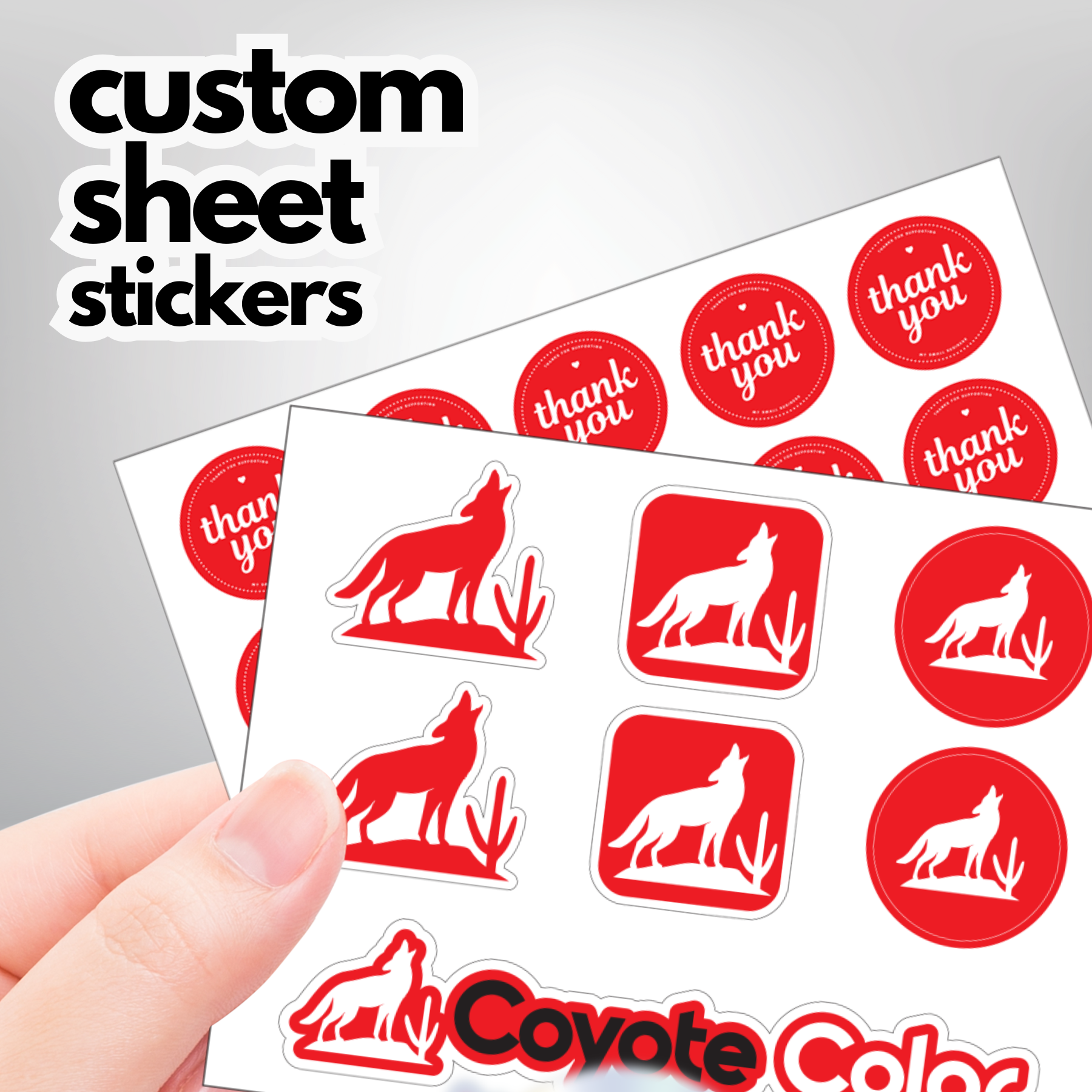 Coyote Color started with a simple idea: creating meaningful, custom-made print products that reflect the heart and soul of every small business, family, and creative spirit we work with. For over 30 years, we’ve poured our passion into every order, ensuring that each print helps build brand loyalty for our customers and is as unique as the people behind it. What began as a family dream has now become a trusted partner for customers far and wide—though our roots remain firmly in Arizona. We may be small, but that’s what makes us special. When you choose Coyote Color, you’re supporting a family-owned business that treats every customer like part of the family. We believe in offering that warm, neighborly service with the cool, creative edge of a shop that’s always ahead of the curve. We print high quality, premium stickers (die-cut, kiss-cut, matte, glossy, clear, transfer, rainbow holographic, and sheet stickers), roll labels, product labels, posters, banners, and more! Big companies may have the volume, but we have the heart—and the capacity! Whether you’re placing a small order or need thousands of products, we’re equipped to handle it all with great pricing that fits every budget. Plus, with easy online ordering, fast, free proofs, quick turnaround times, and free shipping, we make it simple to bring your ideas to life without breaking the bank or wasting time.