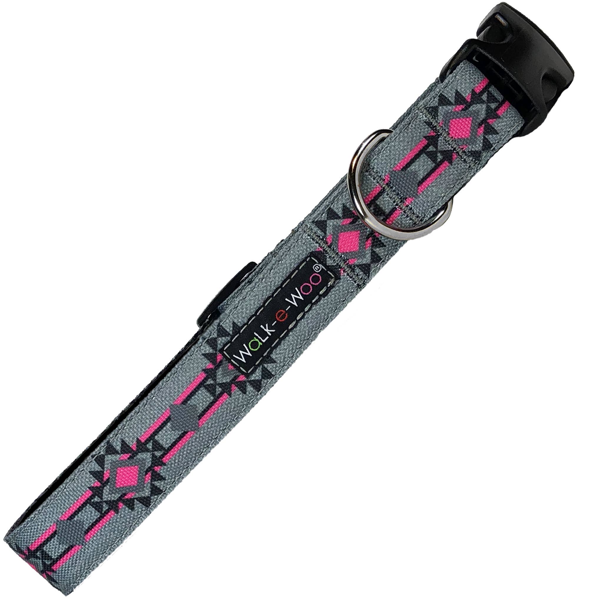 Dog collars, leashes & accessories for your furry friend. 100% Guaranteed (yup, even if chewed:) It's time for a Walk-e-Wooo! Trusted quality since 2002. All original designs! Printed on our proprietary and highly durable outdoor fabric. Fade, dirt and water-resistant! Walk-e-Woo was started in 2002 by Wendy Jones, a stay-at-home mom and former marketing consultant. Unable to find unique dog collars at affordable prices, Wendy began sewing the collars by hand and selling them to local boutiques in Denver, Colorado. "I'm an admitted crazy dog lady," says Wendy. "I wanted my dogs to have fun collars, but also very durable. I like to let them run free, jump in a stream, have a good roll in the grass and not worry about their collar getting worn out. To top it off, I'm a bargain shopper." Yes, you CAN have beautiful quality and design...at reasonable prices." Walk-e-Woo was born! Walk-e-Woo is still a family-owned business. We've grown in leaps and bounds, attributing most of our growth to customer referrals. Many of our retailers have been with us for years and years! Whether it's our best-selling Signature Dots, our classic Plaids or our latest Southwestern collection, we truly have something for everyone. Most styles come in 5 collar sizes, 2 leash widths and matching bows. We strive to ship most orders within 48 hrs. And just wait til you experience our customer service. Whatever it takes, always for our customers. Thank YOU!