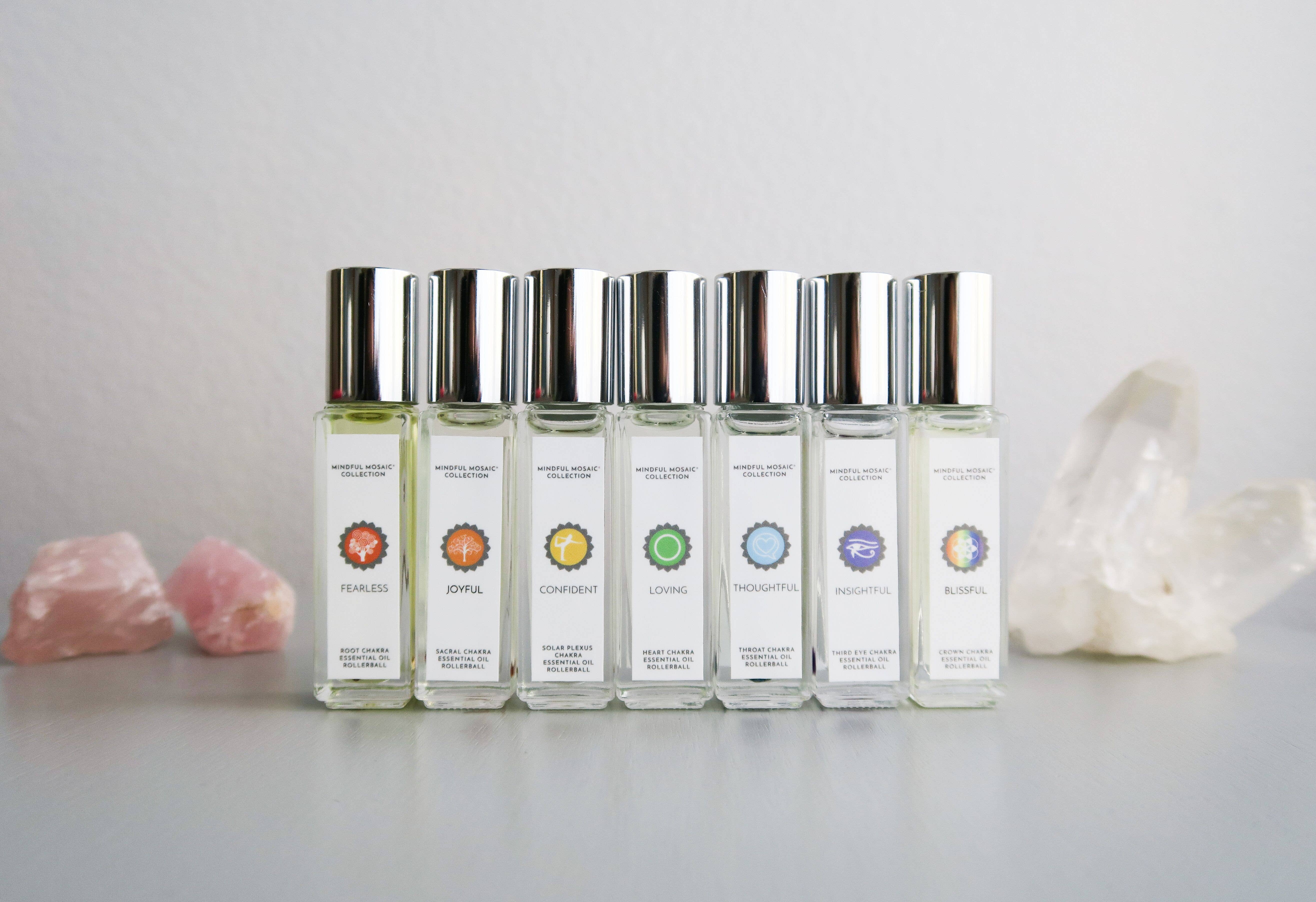 As a holistic nutritionist & energy worker, I've used flower essences, crystals and oil for over 15 years. They are incredibly healing-assisting with pain, immunity, digestion, hormonal imbalances, healing the emotions and more. They are a huge part of my work with clients, so I've created my own line, Mindful Mosaic, based on the chakras! They can help with finding joy, fearlessness, grounding, communication, creativity, self-esteem, confidence, heart opening, finding love and so much more!
