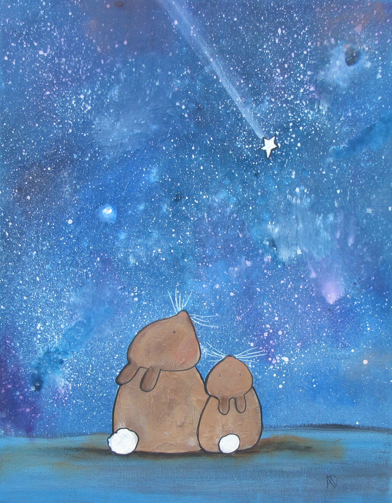 Working primarily with acrylic paint on canvas, Andrea attempts to capture the essence of a storybook. The characters she creates in her work are simple, but full of expression and adventure. Every piece has a story to go with it, like it's the page ripped from a book. Andrea Doss discovered that there were stories hiding in her paintbrush, and has been bringing them to life with her art ever since. In college, she studied English and Art, and decided to spend her life doing what she loves: creating storybook art for children.