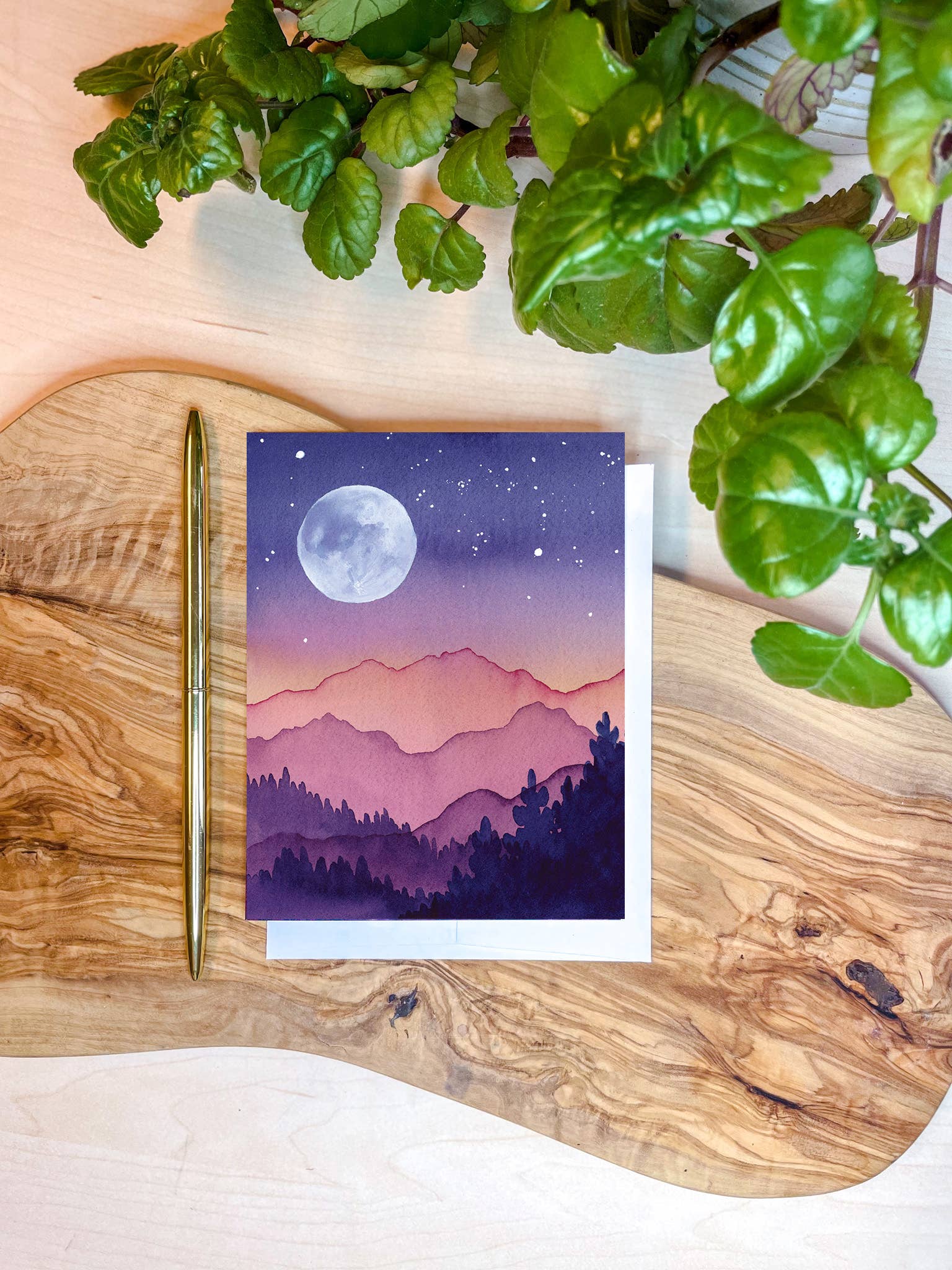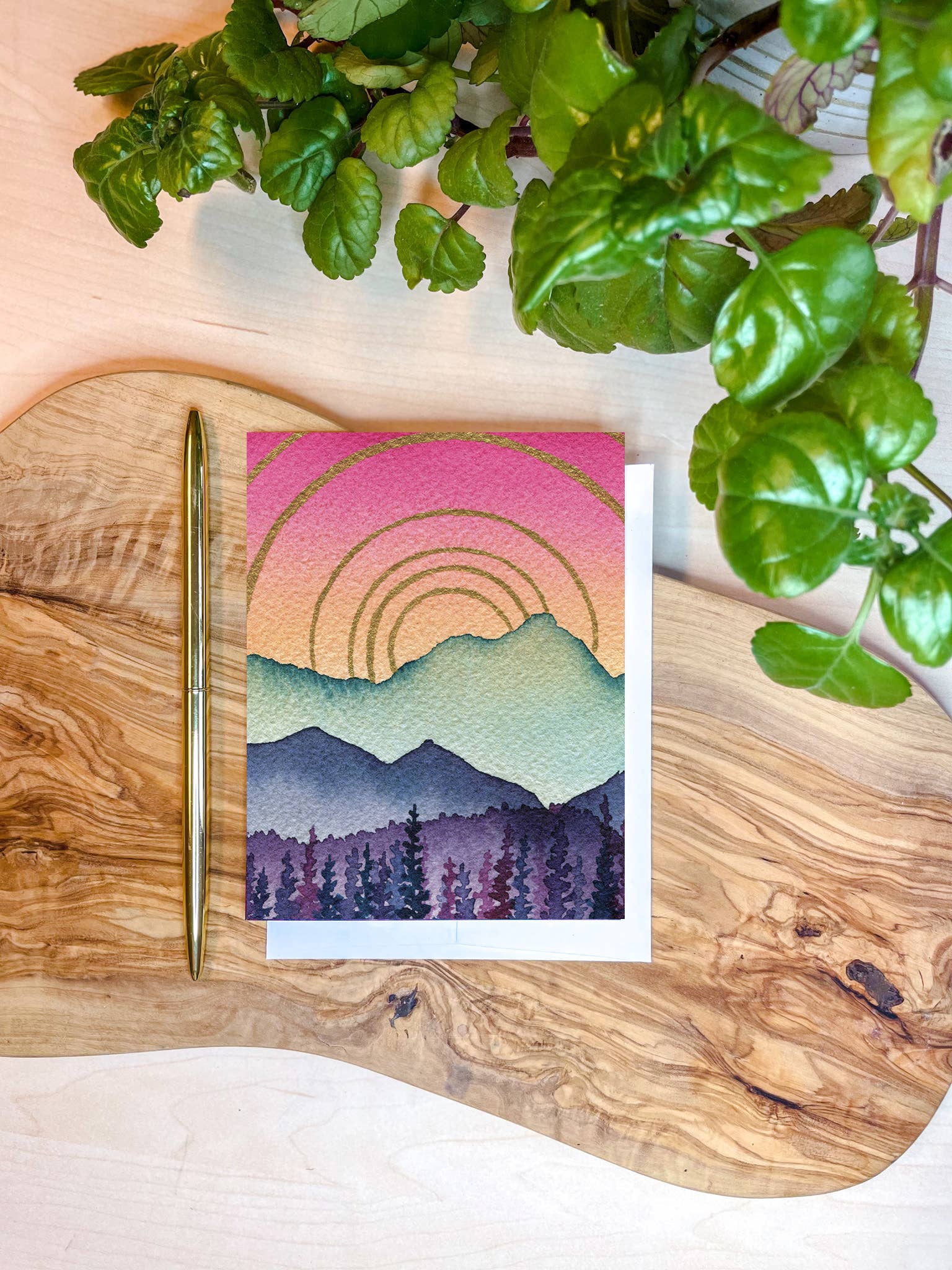 Shelby Thayne Art exists to celebrate wonder, adventure, and creativity through nature-inspired art and gifts. All of the artwork and product design is done by Idaho-based watercolor artist, Shelby Thayne. Shelby's artwork grows out of a deep longing to be in quiet, sacred places and a sincere reverence for beauty in nature. She feels this most in the mountains, and her signature style of ethereal, layered watercolor mountains reflects this. She is most inspired by the Colorado mountains of her childhood, the Pacific Northwest mountains that nurtured her early painting practice, and the Idaho mountains near her home. Shelby Thayne Art offers a growing collection of wholesale fine art prints and stationery, both customer favorites! All greeting cards are printed on thick felt paper that gives the look and feel of original watercolor paintings. We strive to use business practices and products that are sustainable and eco-friendly -- that care for people and the planet.