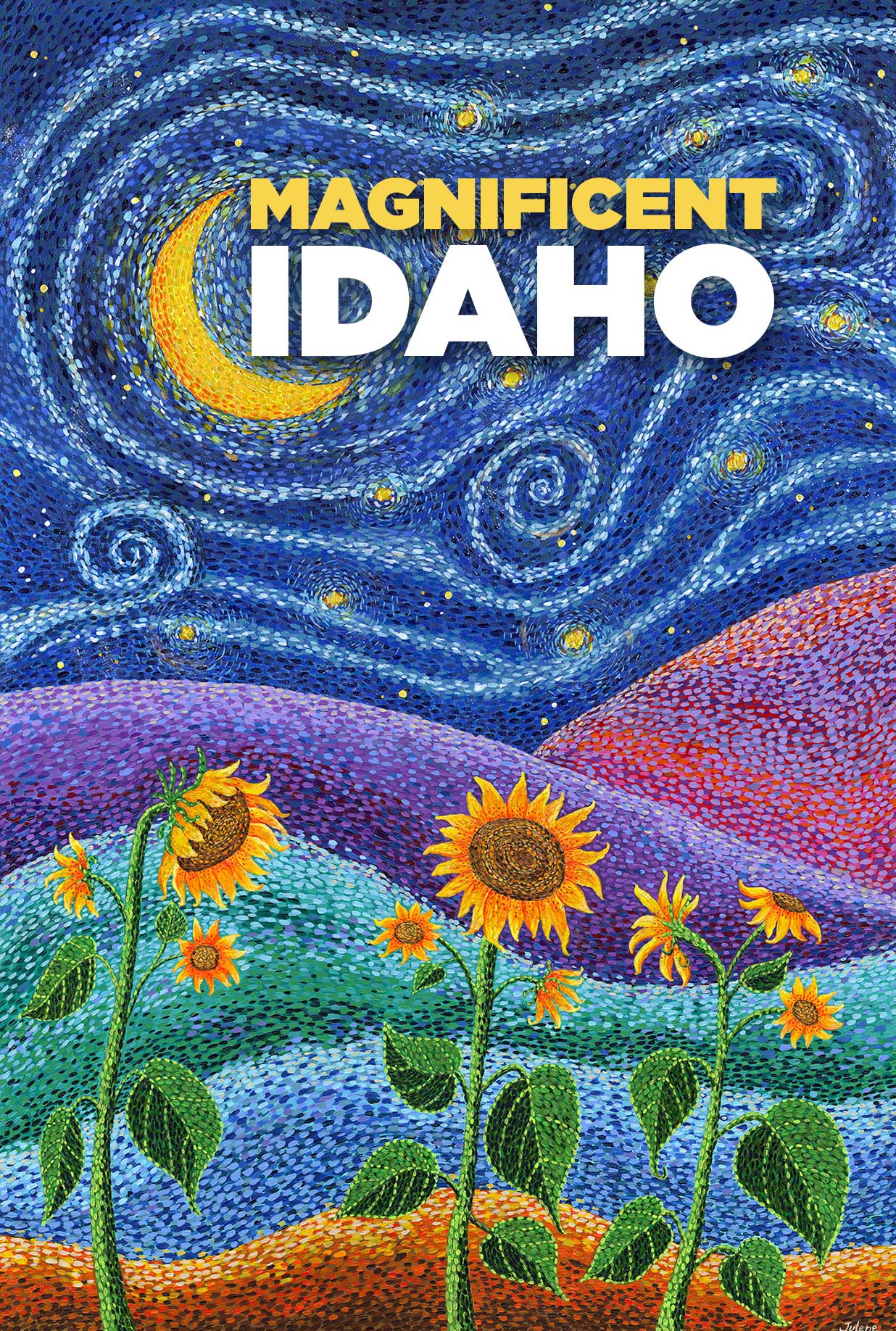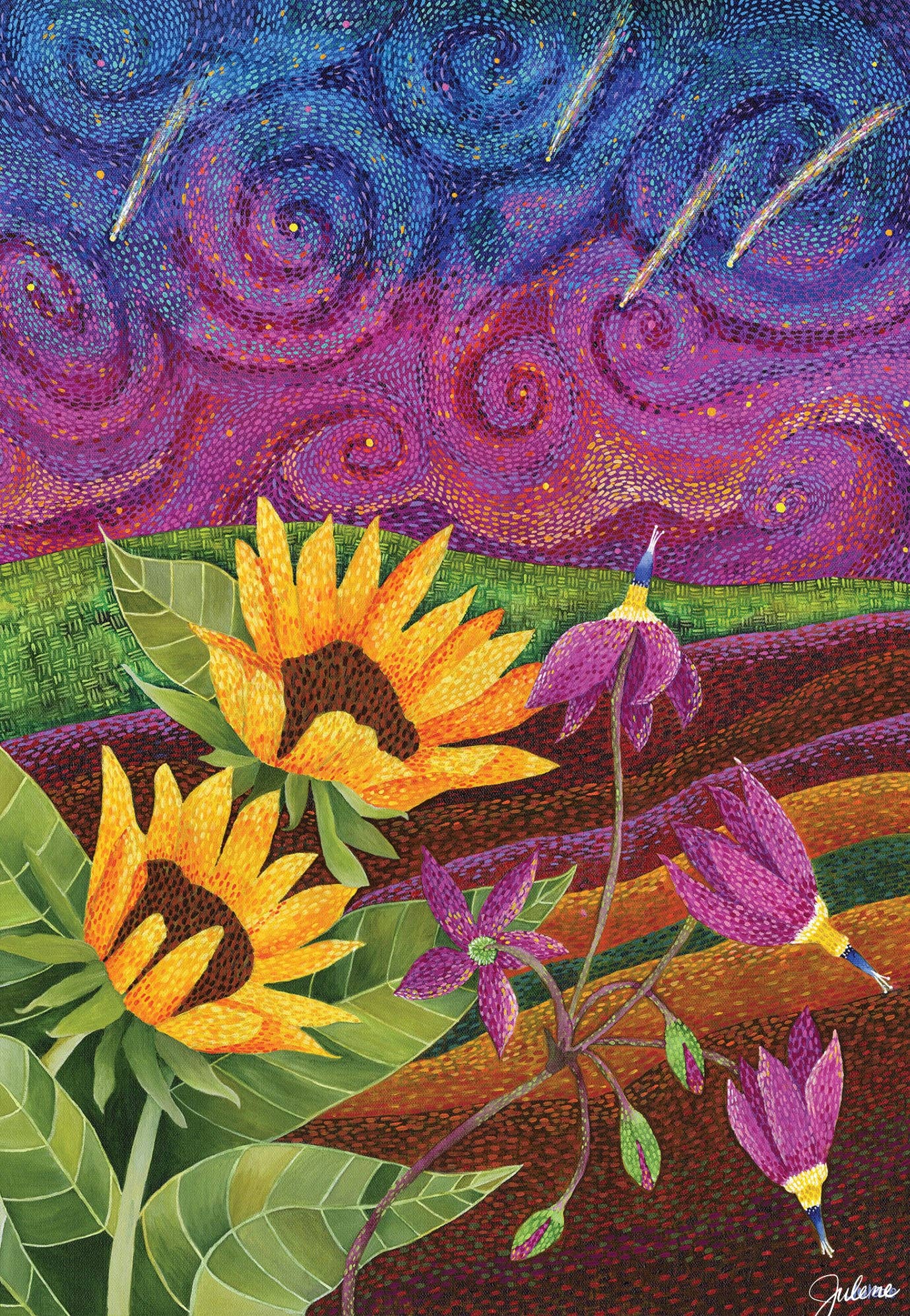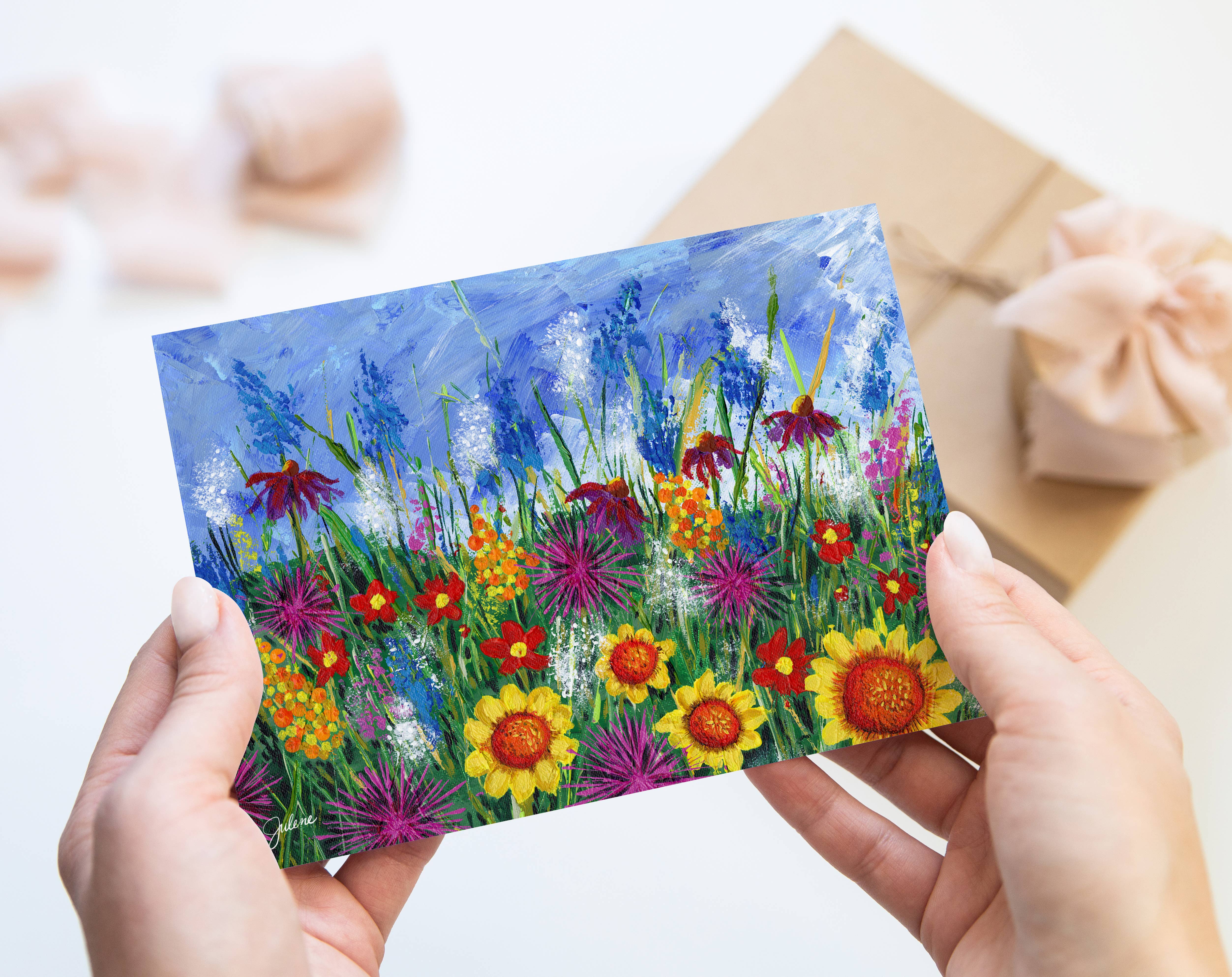 Happy. Joyful. Vibrant. Hi, I'm Julene. I'm so happy that you've taken the time to look at my art. I create vibrant art that is happy and full of positive energy. I believe that art can change the world, one colorful brush stroke at a time. Handcrafted and small runs, all beautifully printed. Art that is whimsical in spirit, and expresses an honest and playful view of the world. Just what your soul needs. My artwork can be found in galleries, gift stores and homes globally. I find my passion where I live in Moscow, Idaho, an undiscovered part of the beautiful Pacific Northwest. My husband and son give me inspiration and brutally honest critiques. In keeping with my values, a portion of profits goes to support women in their small business endeavors. I'm a breast cancer survivor and hope that my art can brighten this world. www.juleneewert.com