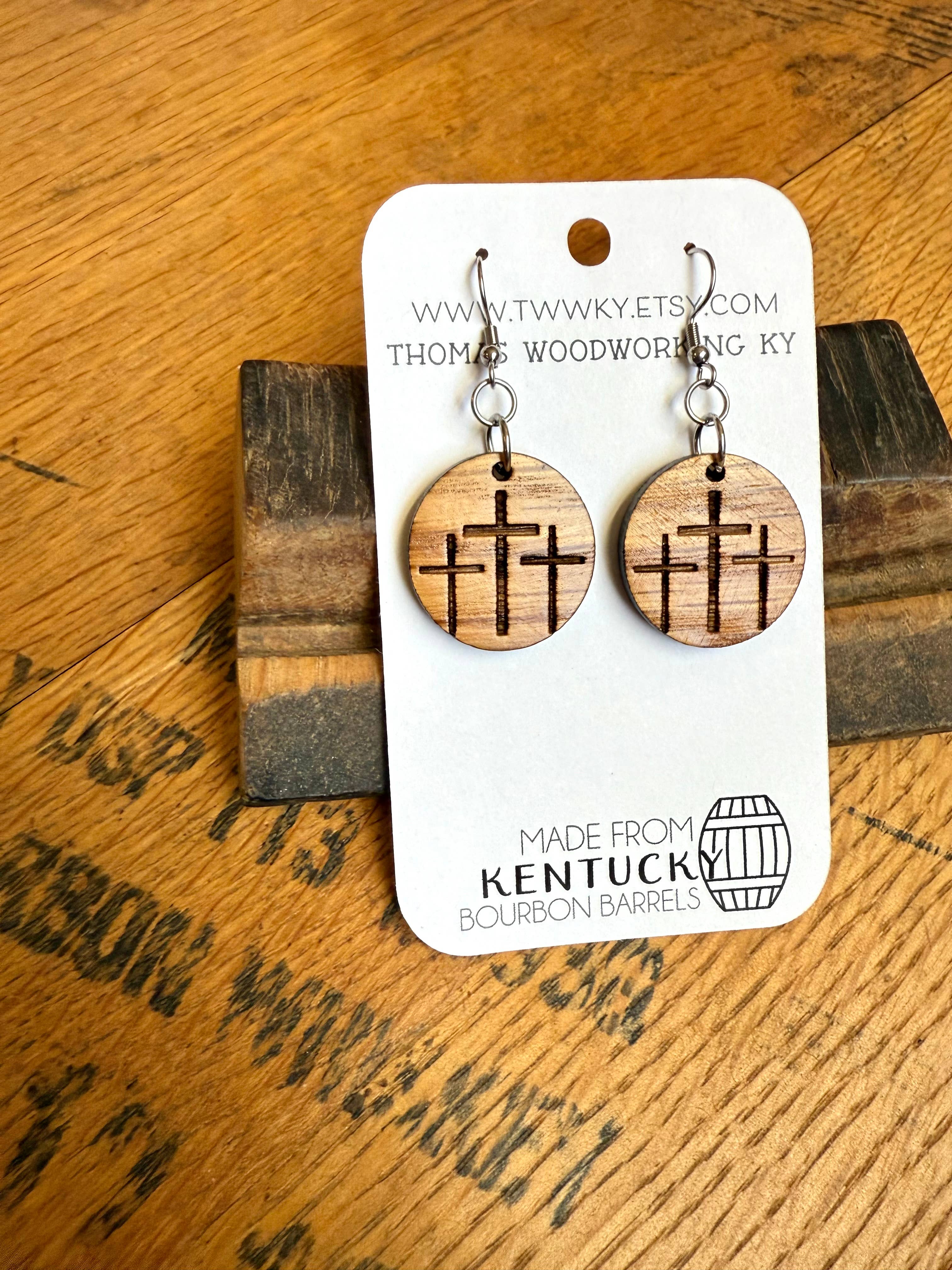 👋 Hey everyone! I’m Tara Jo and I work alongside my husband Josh Thomas. Together we are Thomas Woodworking KY! We are a family/veteran owned small business with my husband still in the Army full time. We work together to create all of our pieces right in our garage in Kentucky! 🥃 We make items from reclaimed Kentucky Bourbon Barrels: earrings (dangle and studs), tie clips, cuff links, bracelets, hair clips, lapel pins, keychains, guitar picks, home decor signs, bourbon barrel business card holders, coasters, etc. 🌳 We have also recently branched out to include accessories made from local reclaimed Kentucky walnut trees. 📱 You can find us on Facebook & Instagram: @thomaswoodworkingky We can’t wait to work with y’all! 🛍️