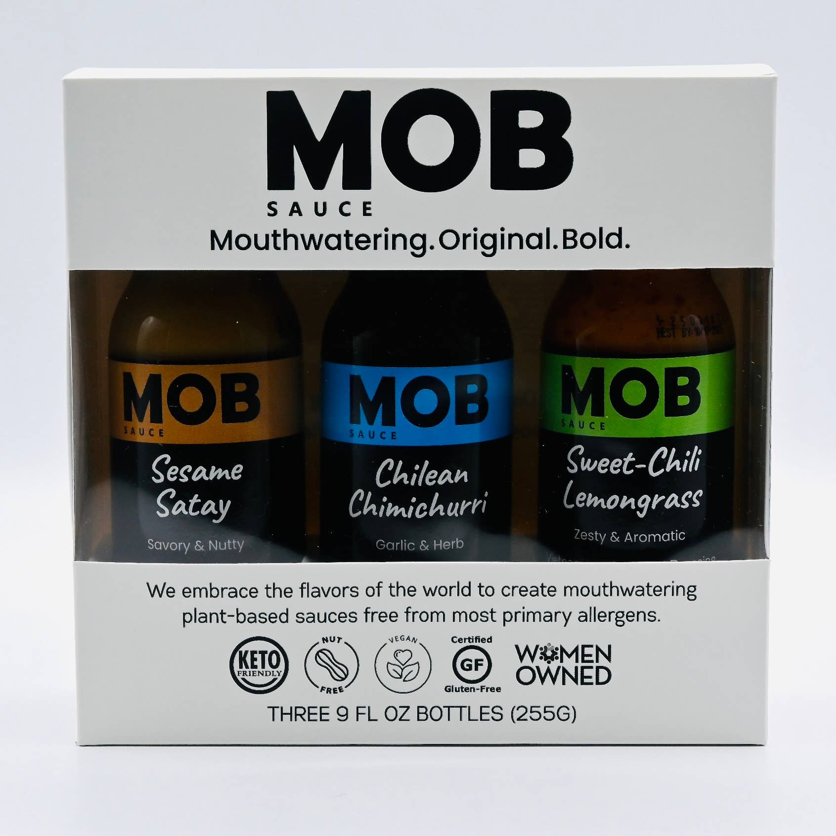 Meet the MOB. Mouthwatering. Original. Bold. Now's the time to join the MOB! We are an award winning cooking and finishing sauce company. We embrace flavors of the world creating mouthwatering plant-based sauces, free of primary allergens. Our sauces bring restaurant quality flavors with ease into your home and kitchen. Chef crafted, globally inspired and stupidly delicious.
