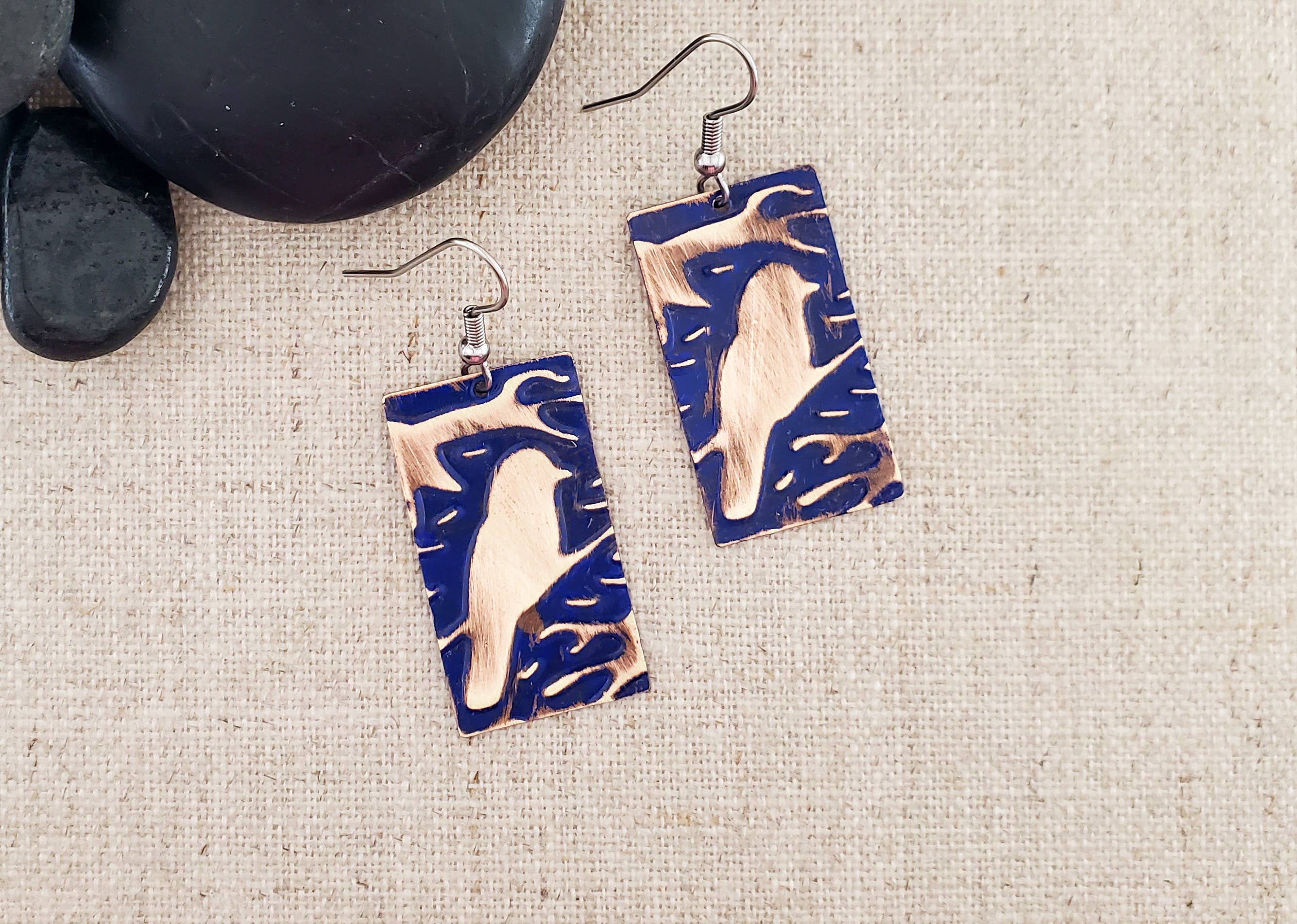 Here at Covaly Artisan Jewelry, we have been creating handcrafted jewelry in North Carolina since 2008. We focus on copper jewelry that we hand cut and finish in three different ways. We "flame paint" the copper with a torch, emboss the copper and combine it with a natural patina process to create a relief, and hand paint colorful designs using alcohol ink. We also create jewelry using antiqued brass and semi-precious stones. All copper pieces are sealed to preserve their finishes. We use stainless steel for all our findings, chains, and ear wires which are hypo-allergenic and maintenance-free. We enjoy employing texture, clean lines, and color when create our jewelry. Combining these various elements with natural materials gives our pieces their unique look. We strive to create fun, timeless, affordable and functional art pieces that are wearable.