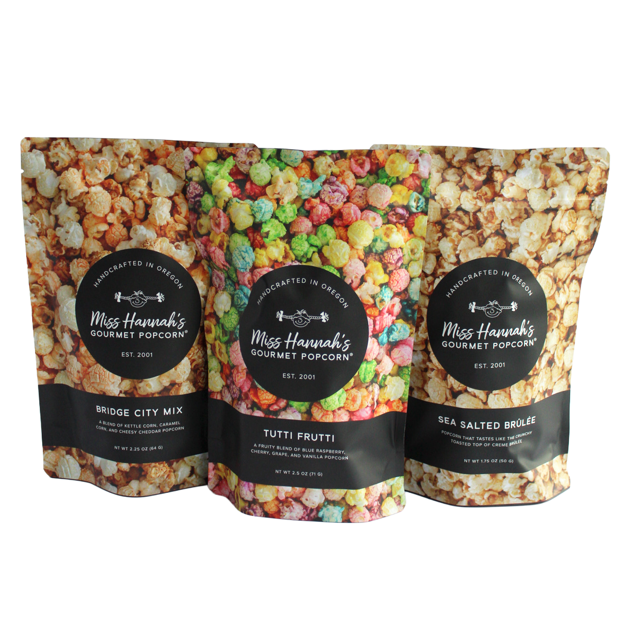 Family run since 2001. It's always been about the people. From our first booth at the Portland Farmer’s Market in 2001 to our storefronts at Bridgeport Village and in Newberg, we've always believed that cooking up the world's best popcorn is simply our way of making people feel valued, honored, seen, and loved. That's why we're committed to creating high-quality, small-batch snacks and an experience that makes your day. Whether you’re sweet, salty, spicy, or savory, there's something for everyone at Miss Hannah's — and we can't wait for you to find your favorite.