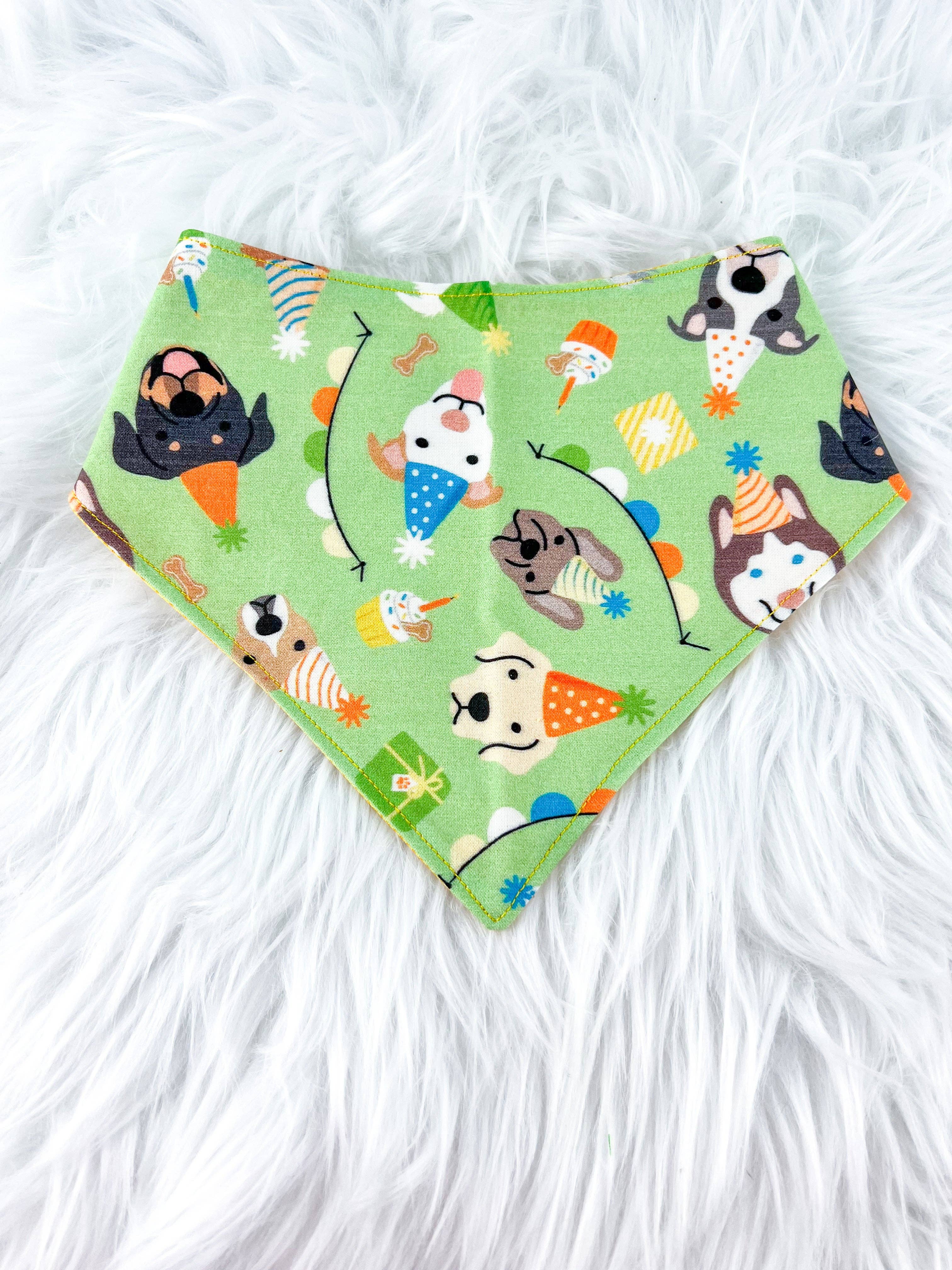 Welcome to Blonde Sausage Co.! We are so blessed to be able to create unique pieces for your pup! We are a blonde dynamic mom/dog duo residing in Nashville, TN. This company came to life in the midst of a season of change. I truly believe that if you wish for change, through steadfast faith and hard work, your dreams can become reality. Ruby Sue, Sergeant, Major, Whiskey, Casper and I thank your for choosing to shop with us and for continuing to invest in us and our success. Due to their handmade nature, there may be slight variations with each bandana. Our tie on bandanas feature a snap to act as a second securement so it stays on your pup through those long days at the dog park, a swim in the lake, or just a day out with the pawrents. Made of stretch material it is comfortable for all day wear as great to soak in water to keep your pup cool during the dog days of summer! These range in size from teeny, x-small, small, medium, and large. Our elastic bandanas feature reversible fabrics for every day wear as well as elastic at the neckline for easy on/off and all day wear. They come in sizes teeny, x-small, small, medium, large and x-large. Our bandanas make a perfect gift for any pup!