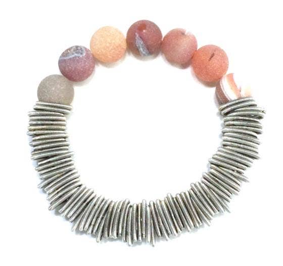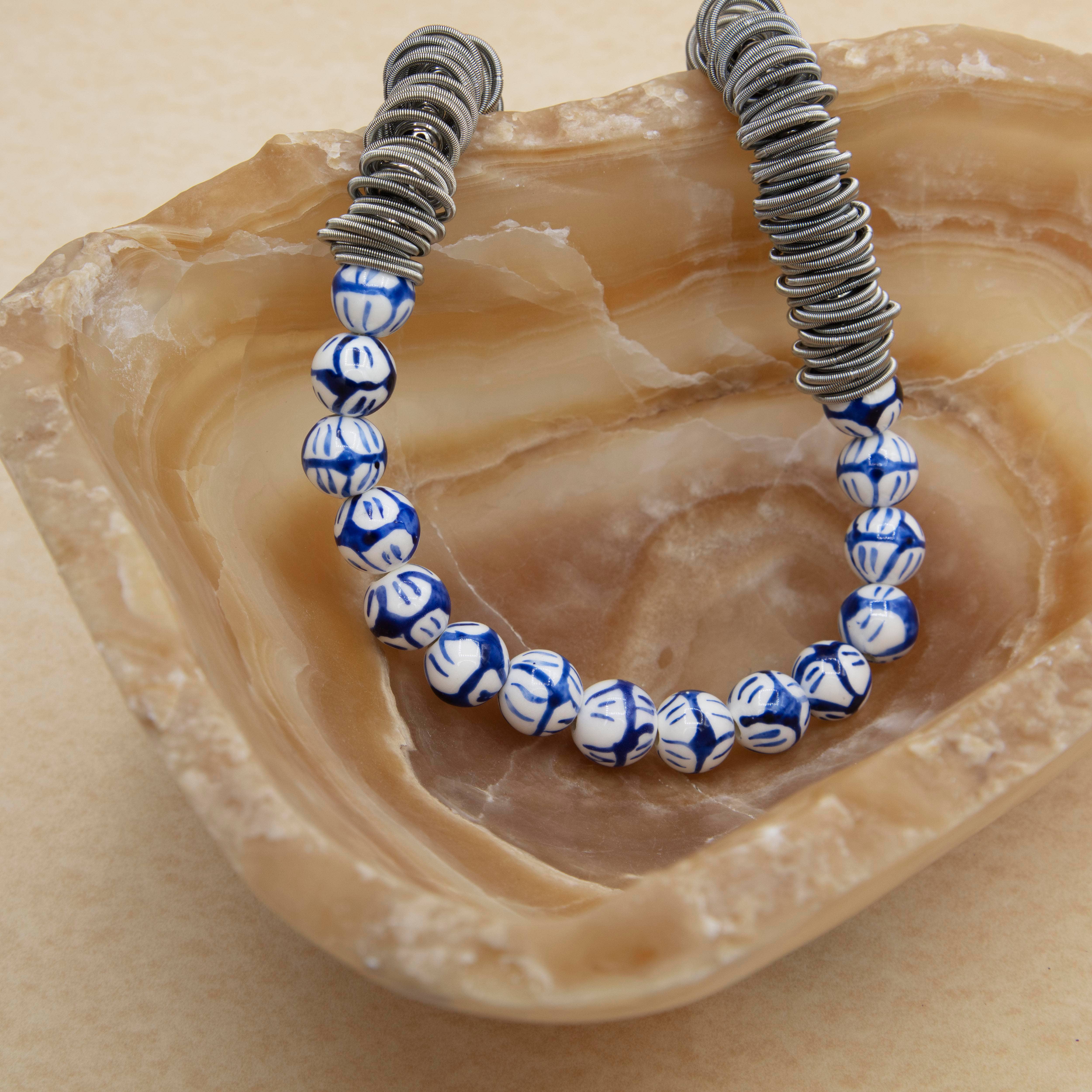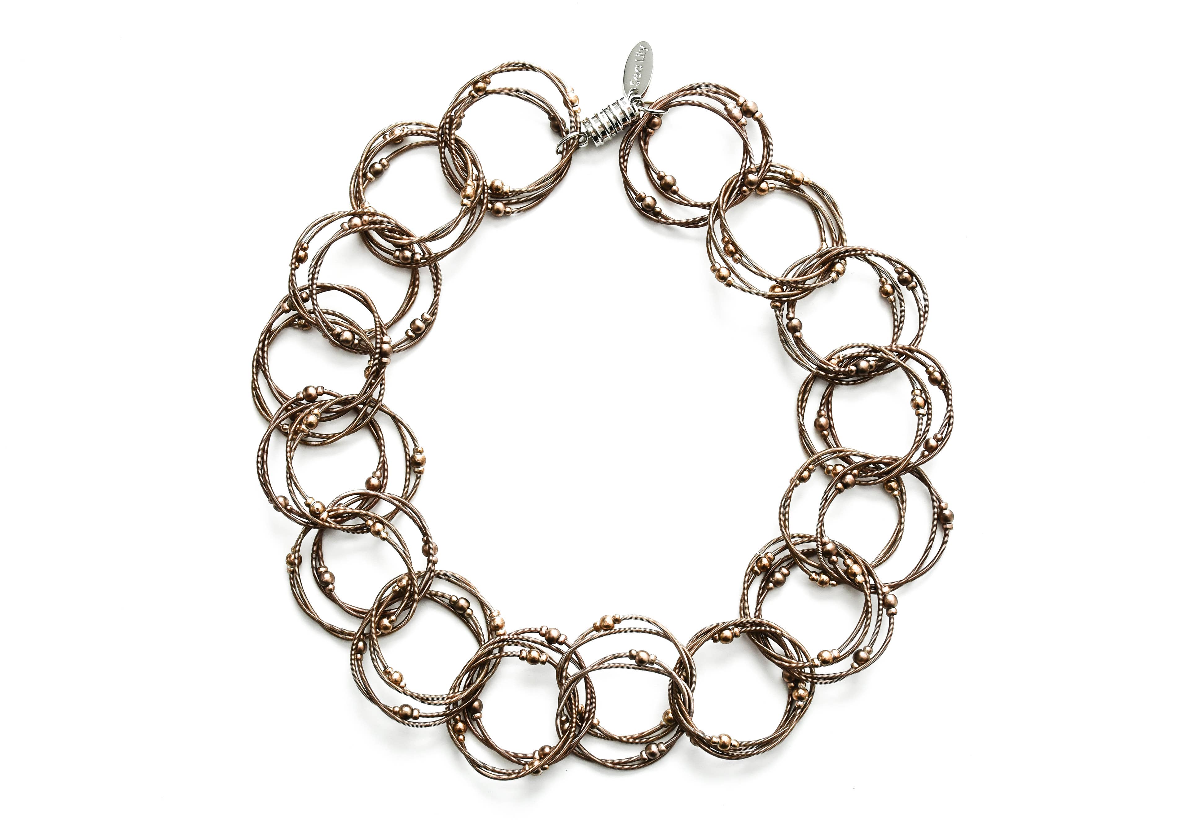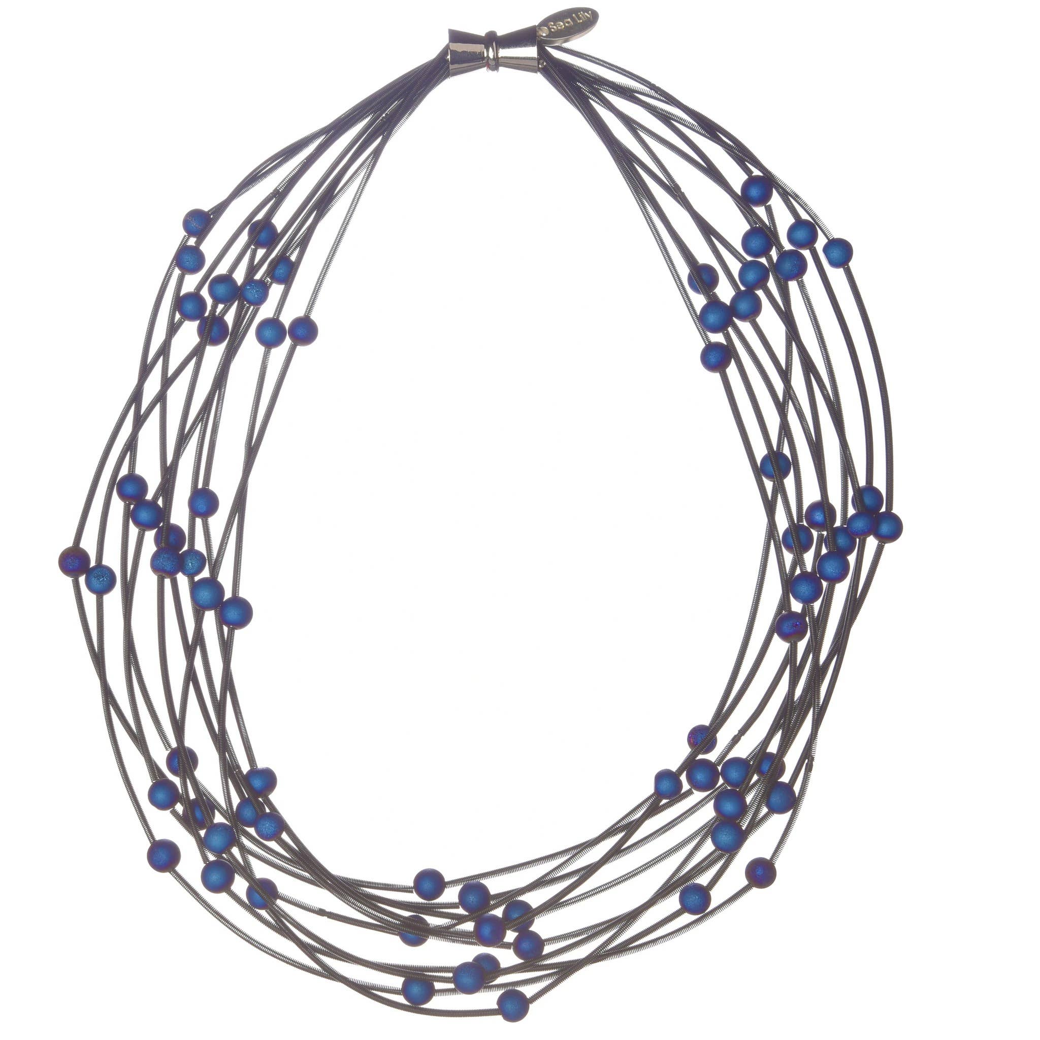 Sea Lily Is proud to sell to boutiques, catalogs, stores , Museums and Symphonies all over the country. All of our jewelry is made by hand. Our mother of pearl is dyed with natural food coloring. Our resin handbags have been wonderful for us too! Our piano wire jewelry for some pieces is infused with silk to make it soft. We also use industrial steel wire for some pieces, along with real geode semi precious stone, porcelain beads, freshwater pearls, lava rock, and other mediums.