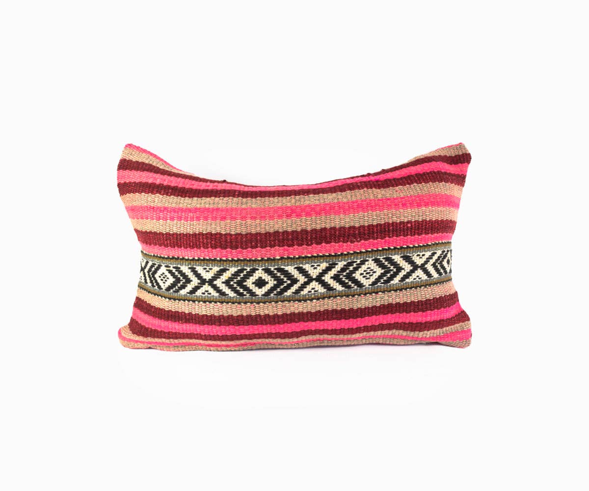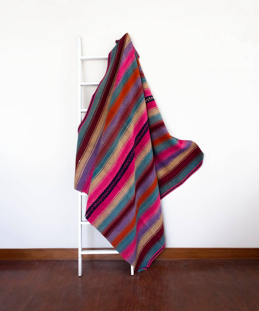 Passed down through generations by the indigenous Quecha families living in the Peruvian Andes, Vinloom's vintage accessories are not only one-of-a-kind art pieces, but a celebration of artisanal work and the traditional methods of textile production, beautifully preserving a culture for future generations. Made from 100% wool, home accessories show the intricate hand-woven design with a wide variety of colorways made from organic dye, instantly adding a bright and energetic touch to your space.