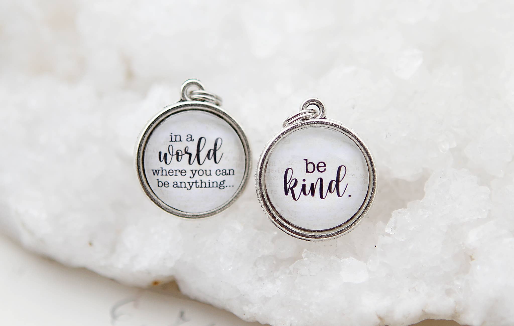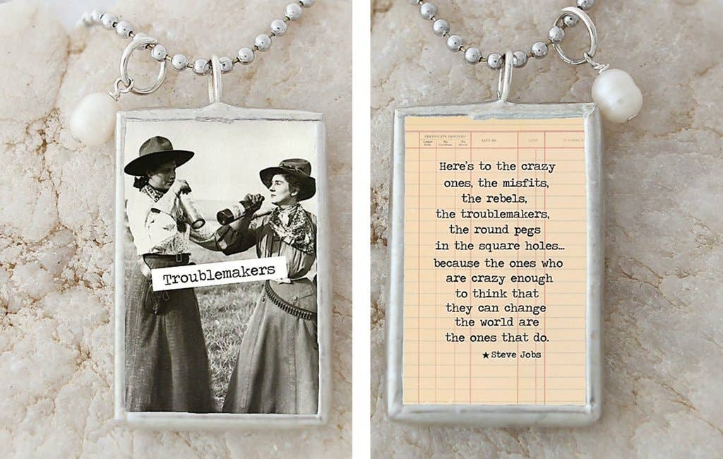 Welcome! I design and handcraft jewelry charms that have positive, uplifting messages. They are sold individually, and meant to be mixed and matched in different combinations. There are several different styles, and since Faire doesn't have specific categories for jewelry charms you'll find them organized a little differently. All our charms are meant to be worn as necklaces, but you'll find them categorized by style under headings that don't quite fit, like Earrings and Bracelets. If you have any questions, please don't hesitate to message me! Each piece of jewelry is designed and handmade in my Minnesota studio, using recycled and upcycled glass and vintage papers. I make a lot of it myself, but I also have a small team of stay at home mom’s in my small community who help me out. They are awesome and I couldn’t do this without them. Our charms are all about creativity, connection and celebrating what's unique about you. Each charm tells a story, and when you combine them on a necklace you create a one-of-a-kind representation of what matters most. Words matter, and we all have a story to tell. What I love most about my business is that we help women tell a little bit about who they are and what matters to them. From the beginning my desire has been to uplift, inspire, or make people laugh out loud when they wear my designs.