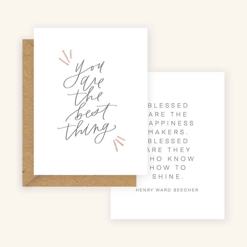 Hey there, I'm Sadie. I'm the artist and creator behind Golden Beam Co - a creative studio based in Granville, Ohio. As a former kindergarten teacher turned stay-at-home mama, Golden Beam Co. started as a love for thoughtful handwritten notes, doodling, and lettering. It's also my creative outlet outside the titles of wife and mama to four boys. Golden Beam Co. cards are multi-use, eco-friendly, plastic-free, joy-spreading, and pay it forward. They are printed locally in small batches on 100% recycled paper. The design of the card is an unexpected surprise with its own tear-off, pre-stamped postcard - ready to pass on and brighten someone's day! Our cards are packaged with the most sustainable materials possible and will always be plastic-free! We often reuse and repurpose any shipping materials we receive. Are you ready to spread some joy?!