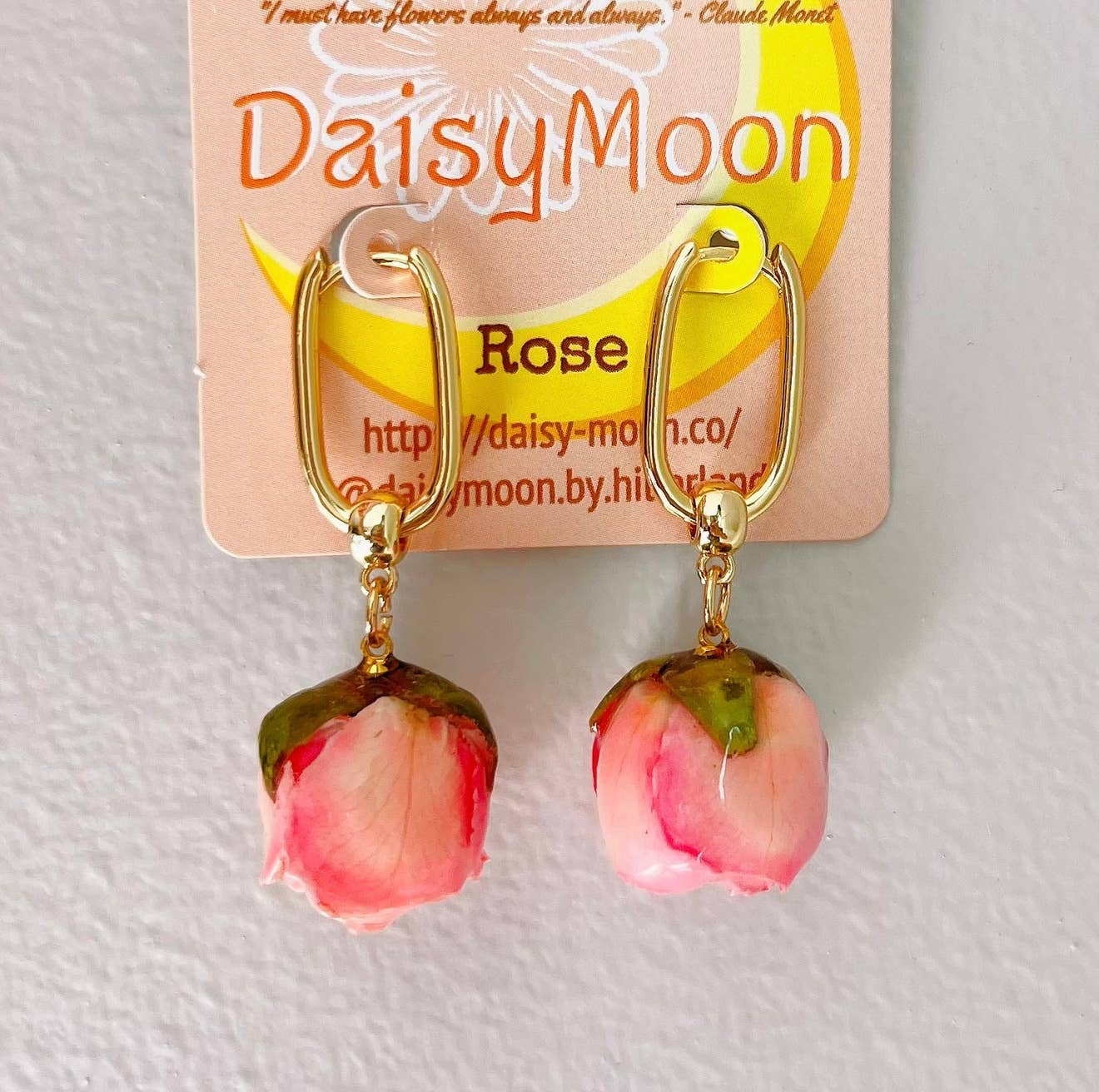 Beneath the light of Daisy Moon, real flowers and fruits are given a second life. Each piece is lovingly preserved and handcrafted in crystal clear resin and transformed into timeless keepsakes. We handcrafted everything with care in small batches, in Champaign, IL. Inspired by the quiet poetry of the natural world, Daisy Moon jewelry brings a touch of wonder and romance to botanical boutiques, garden centers, and museum gift shops alike.