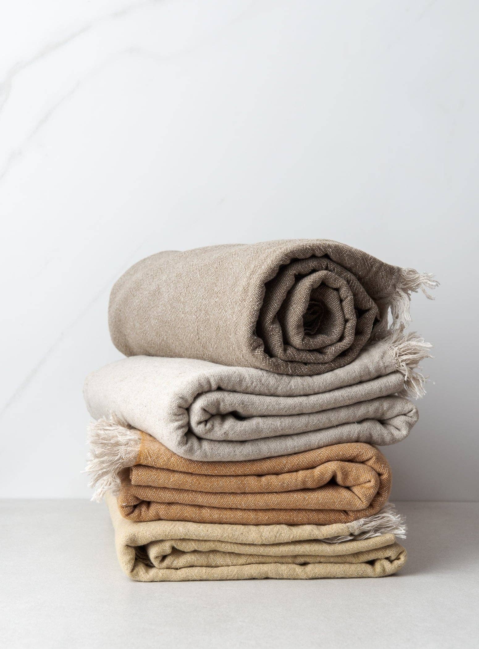 Özge was born and raised in Istanbul, Turkey. She met her husband, Colin, in 2007 as he was travelling through Europe. It’s after moving to Quebec in 2009 that she started improving her sewing skills. She did so by creating small projects, which eventually led her to sew her own wedding dress! Özge has worked in production and promotion of visual arts for several years. She has always had a weakness for handmade objects and crafts. She remembers, as a child, travelling with her family to different regions of Turkey and seeing her parents buying handmade items from the local craftspeople of that region; dolls, stone trinkets, marble sculptures, wooden accessories, porcelains, kilims, rugs and so much more! As she and her husband travelled back and forth to Turkey for vacation and to see her family, they visited less travelled places where they met local people and fell in love with authentic foods and crafts. Özge rediscovered the crafts traditions of her own country through Colin’s eyes as he admired these objects that he couldn’t find in Canada. They first bought these objects for their own enjoyment. But, with time and use, they realized the quality behind these objects, and this led them to be even more critical in their selection. This is why our kitchen accessories are in linen, a natural fibre, strong and heat resistant, getting just softer and better with time! The production of flax contributes to sustainable agriculture as it requires little fertilizer and pesticid